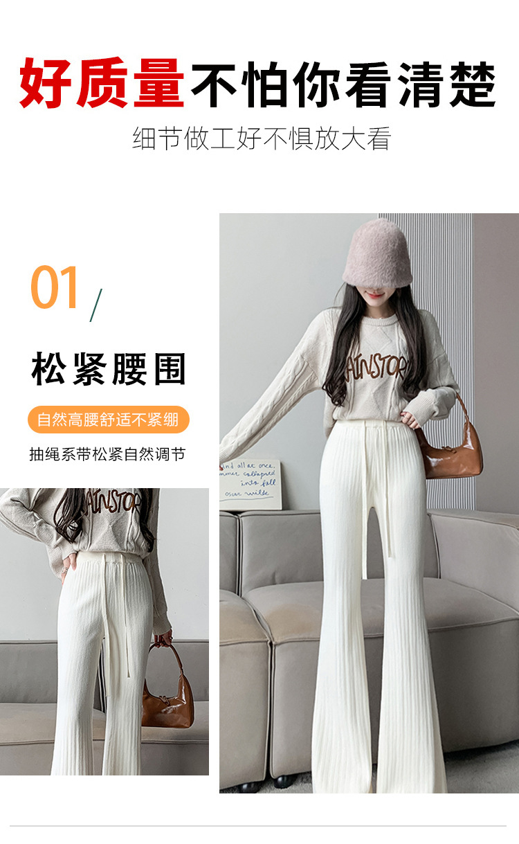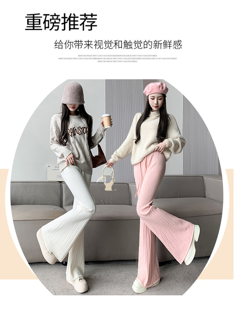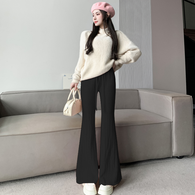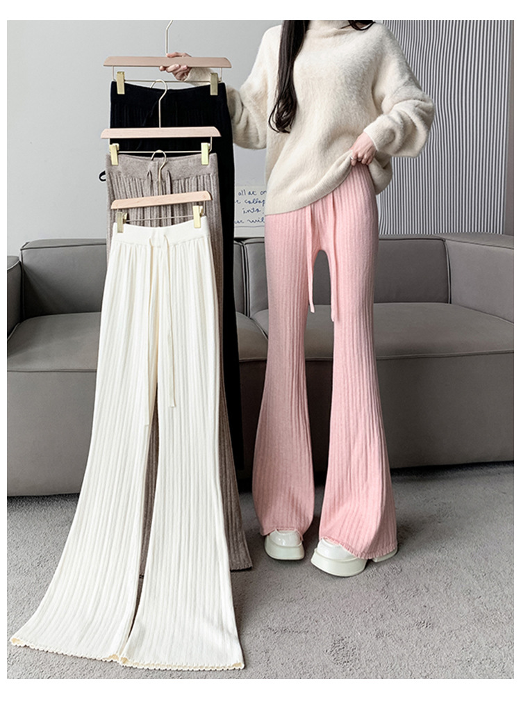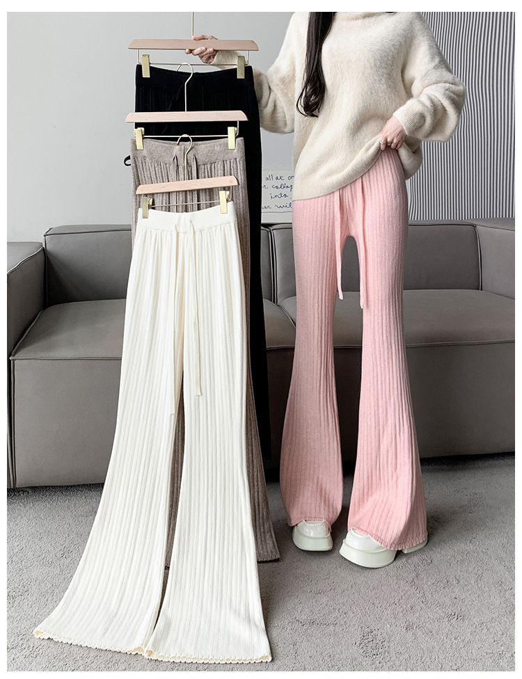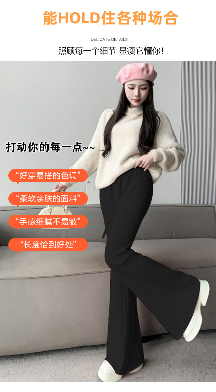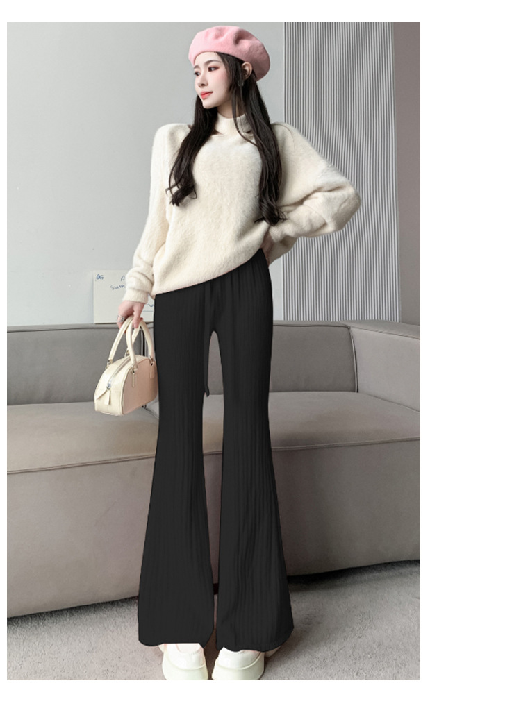 수직 구덩이 니트 마이크로 플레어 바닥 바지 여자 캐주얼 올 매치 와이드 레그 바지 가을과 겨울 두꺼운 캐시미어 말굽 바지스토어 가기