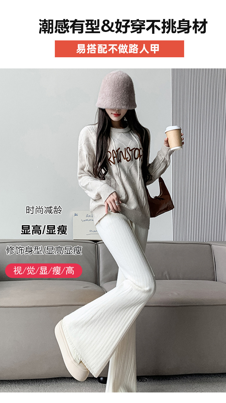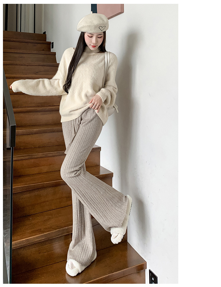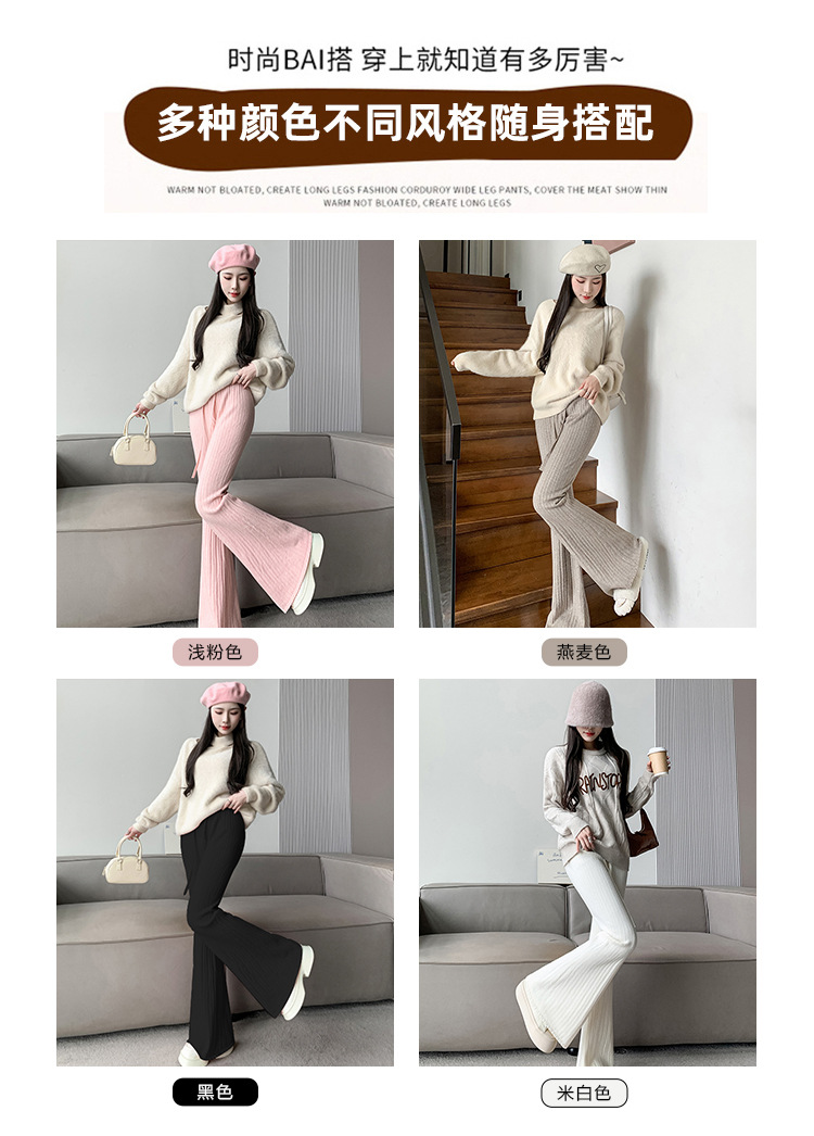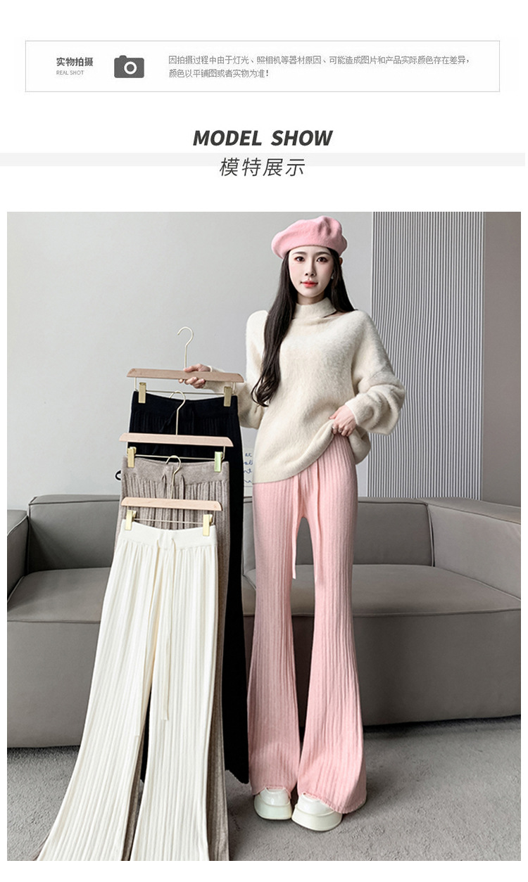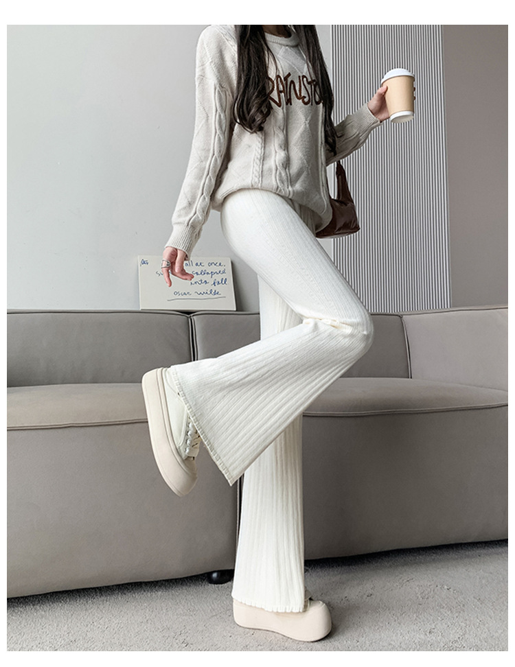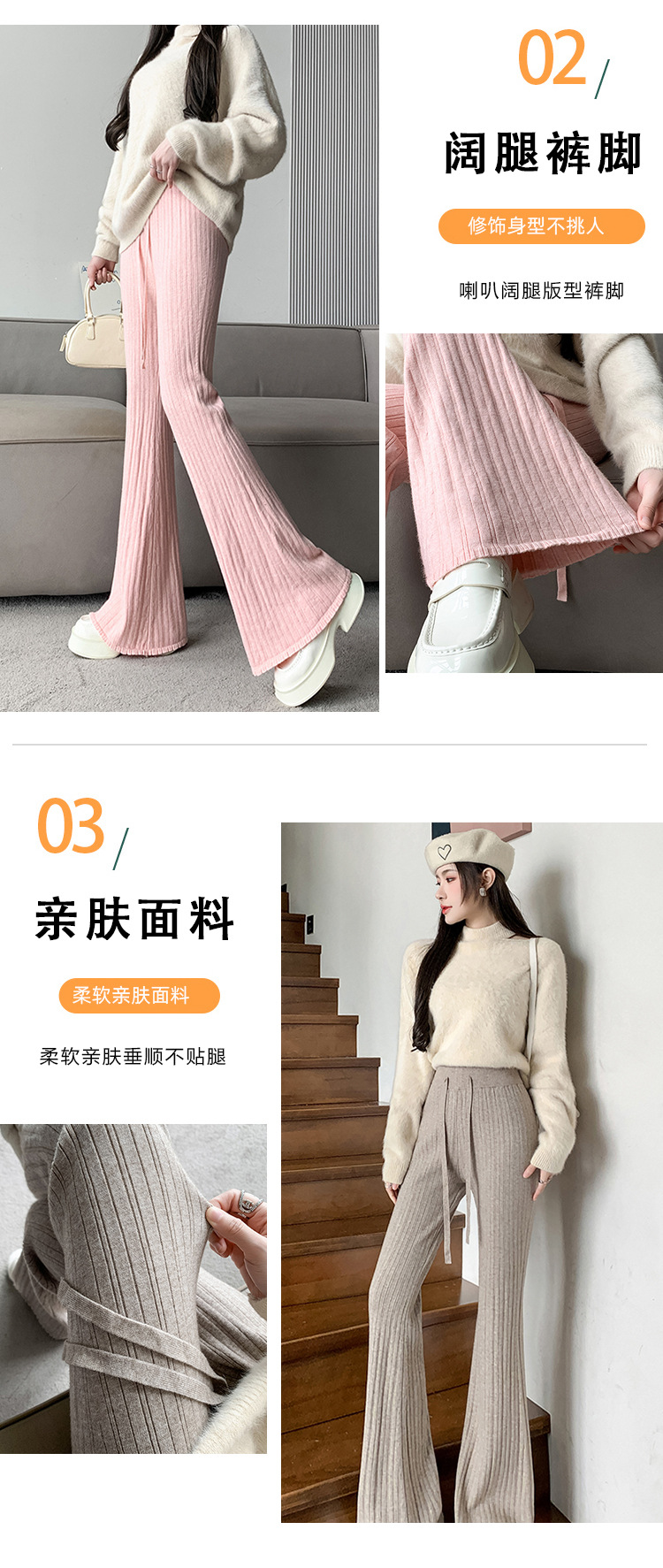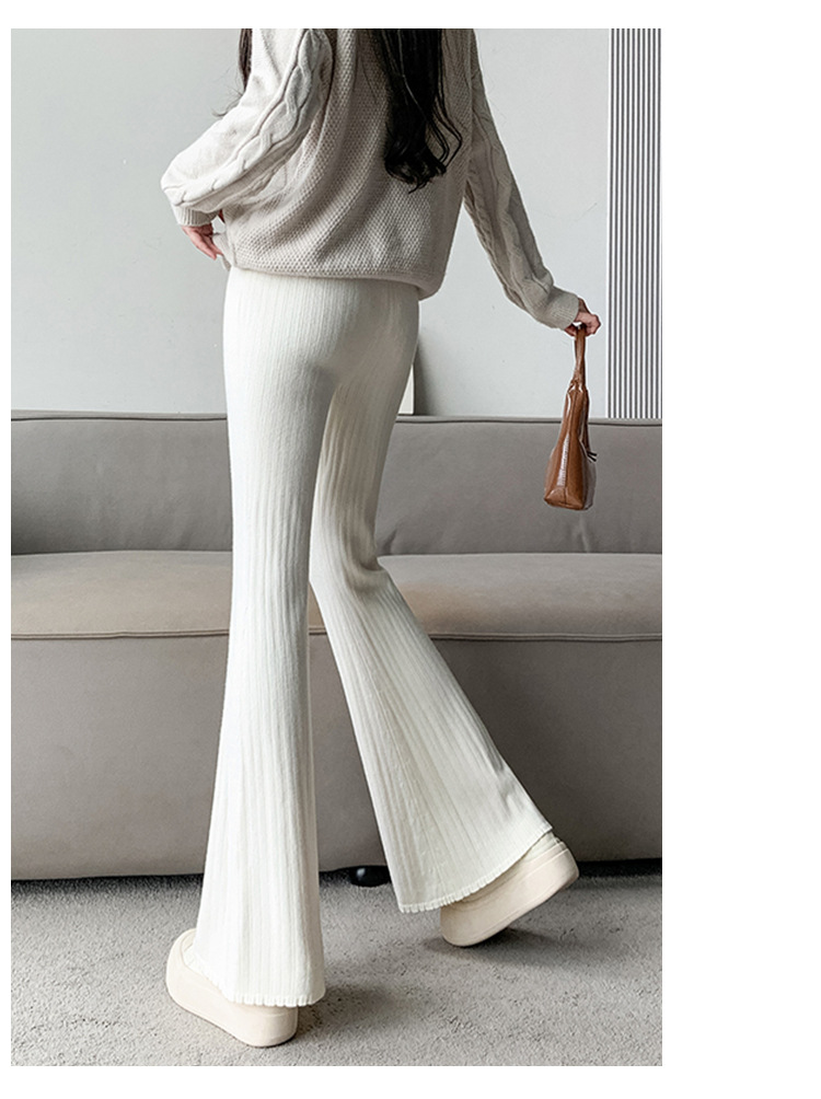 수직 구덩이 니트 마이크로 플레어 바닥 바지 여자 캐주얼 올 매치 와이드 레그 바지 가을과 겨울 두꺼운 캐시미어 말굽 바지스토어 가기