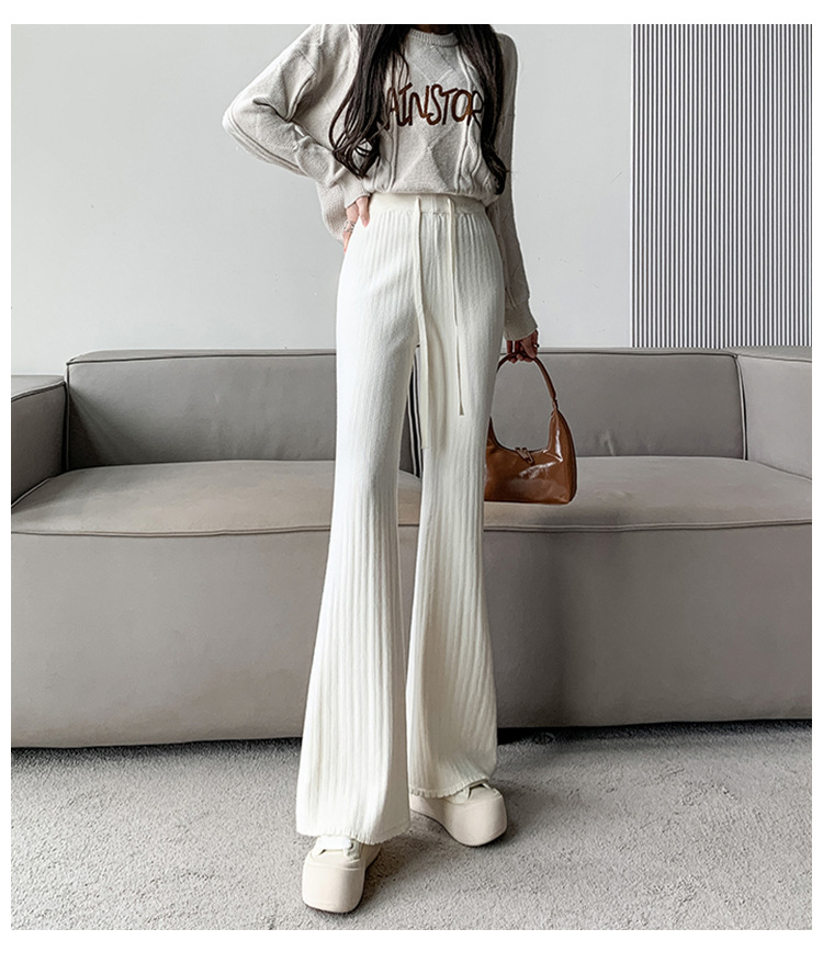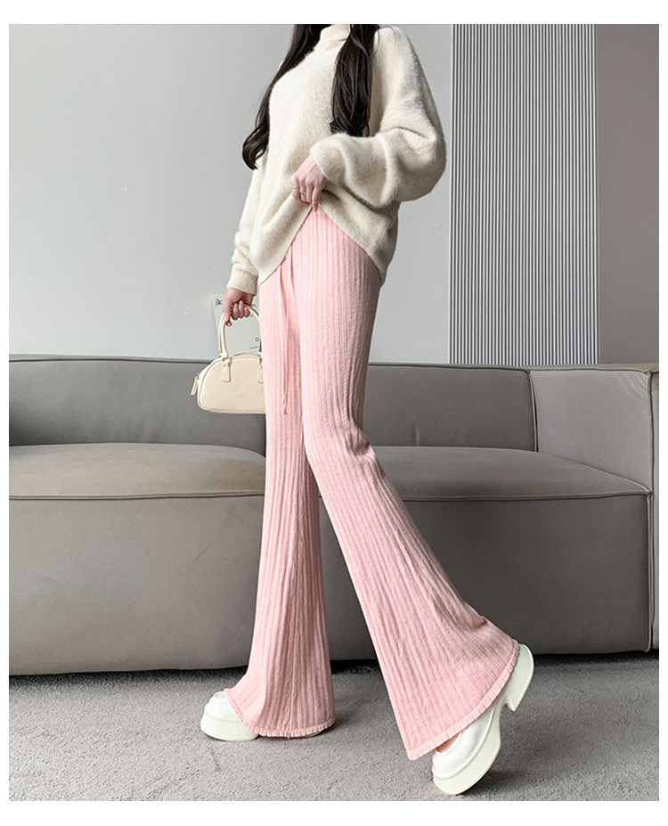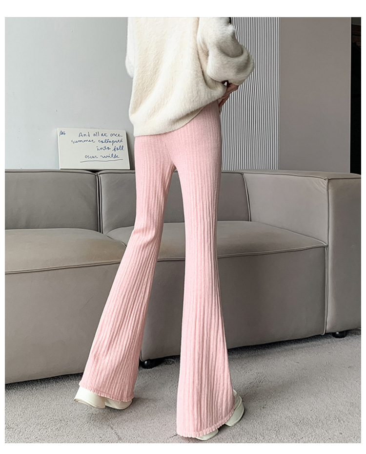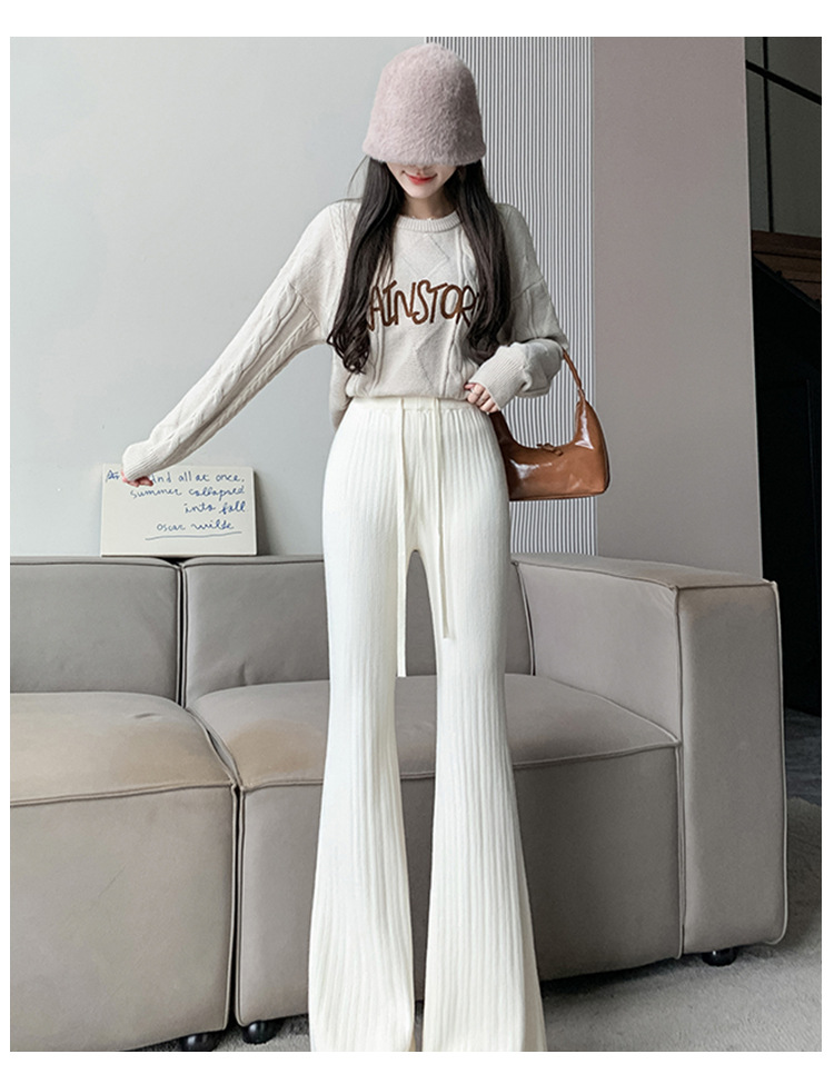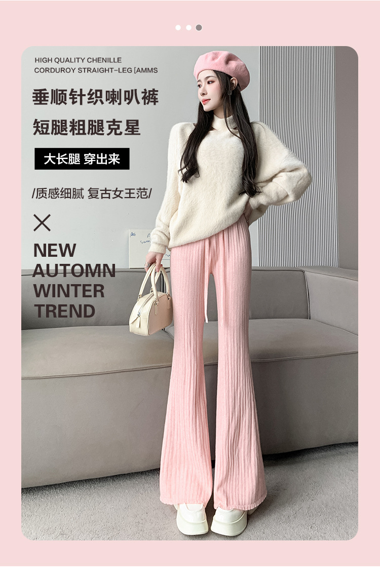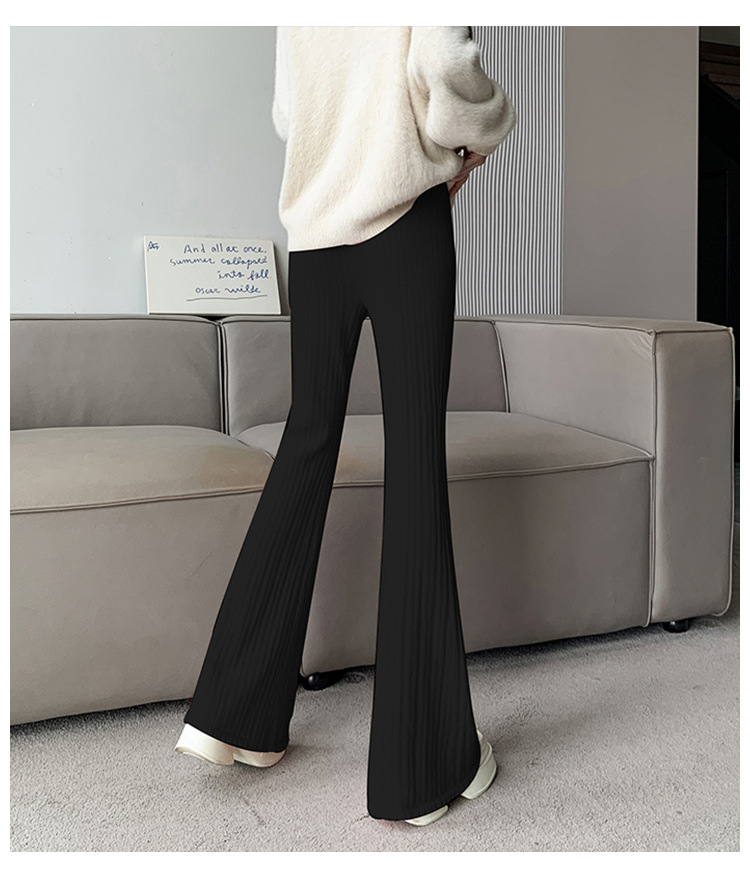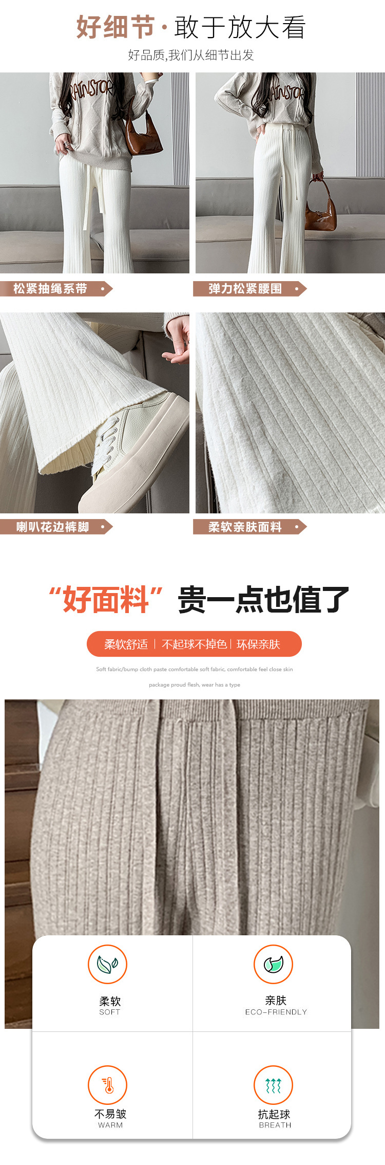 수직 구덩이 니트 마이크로 플레어 바닥 바지 여자 캐주얼 올 매치 와이드 레그 바지 가을과 겨울 두꺼운 캐시미어 말굽 바지스토어 가기