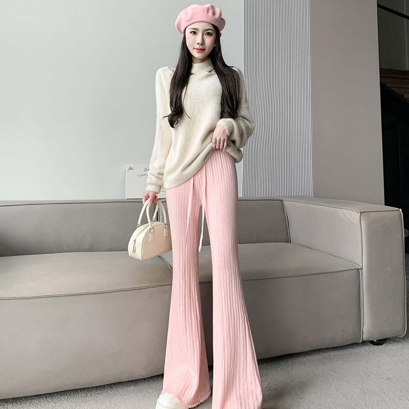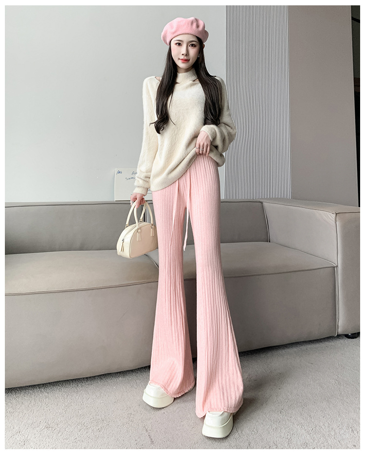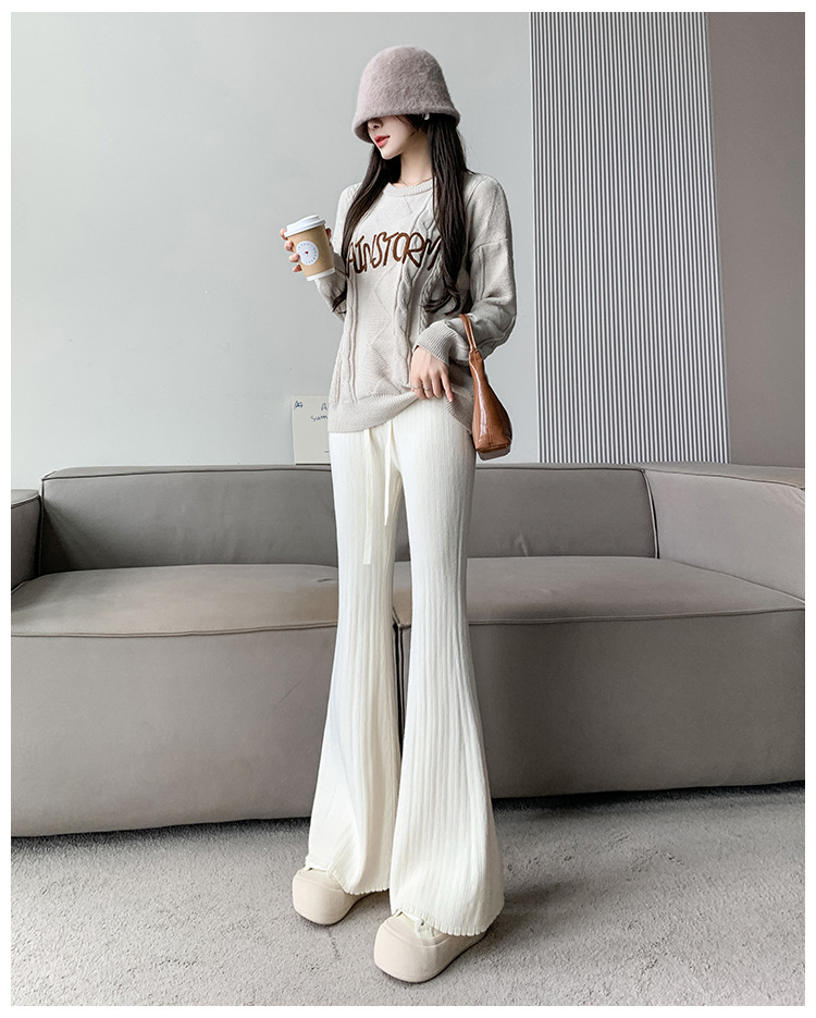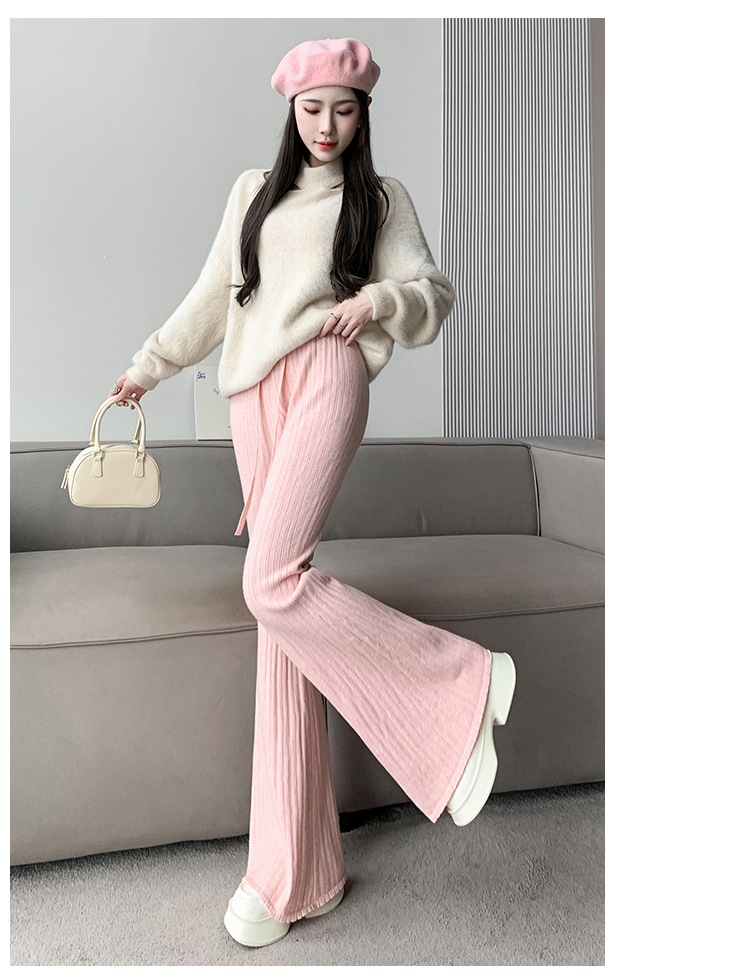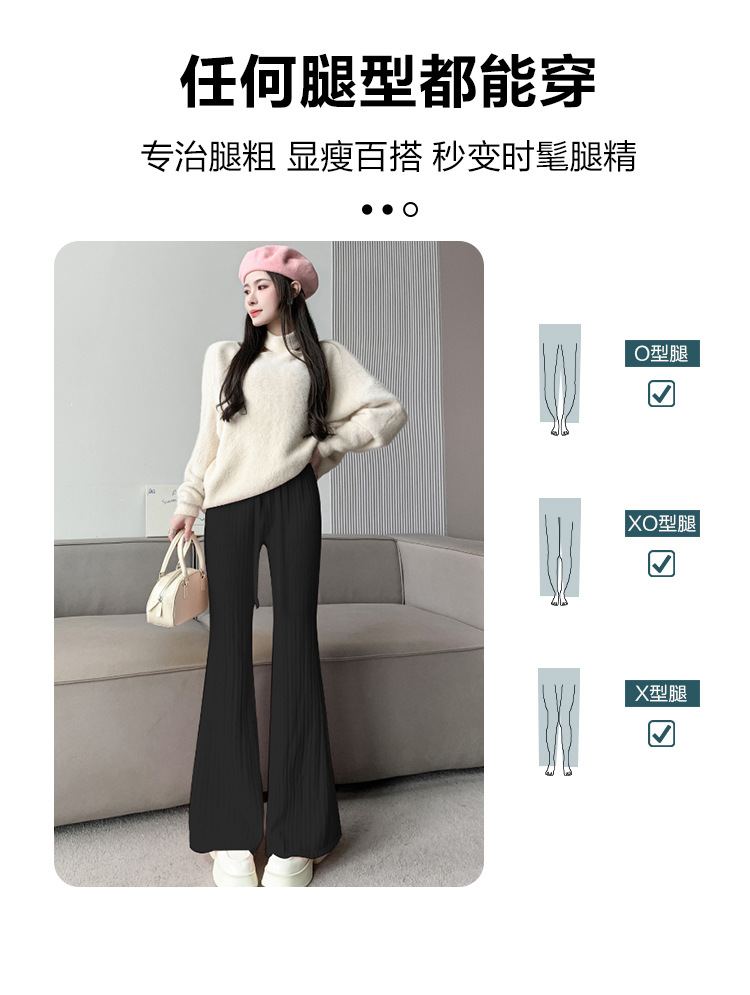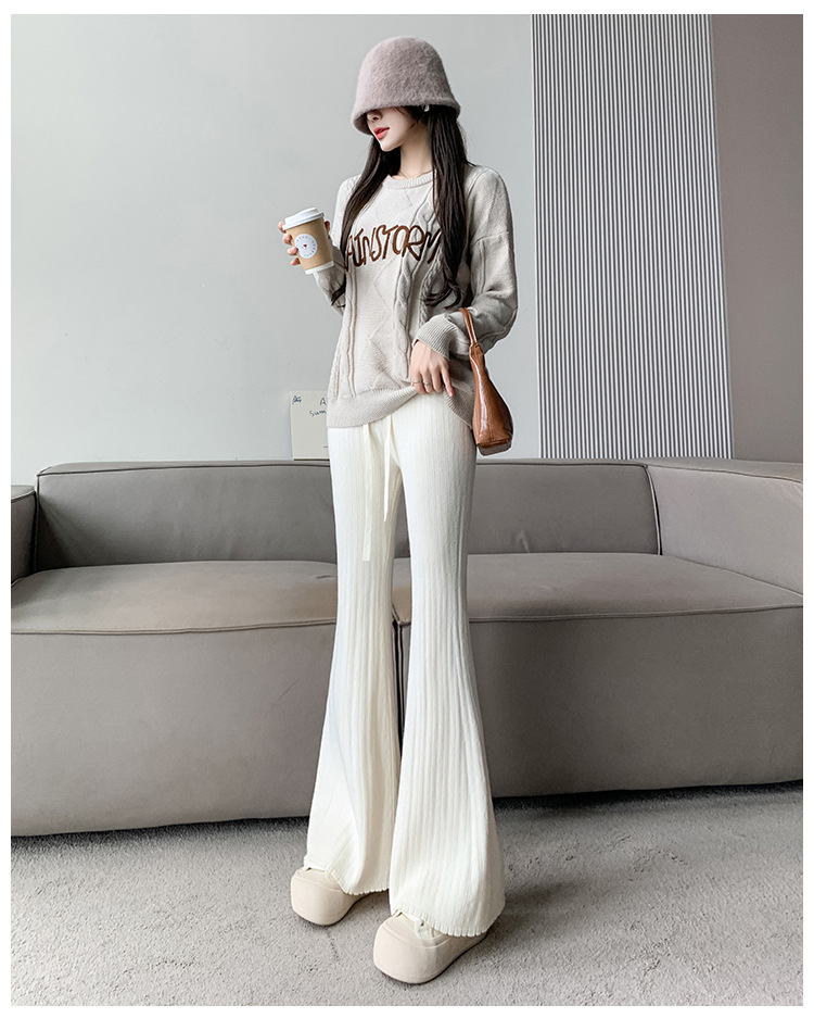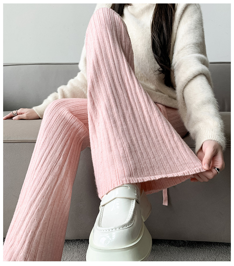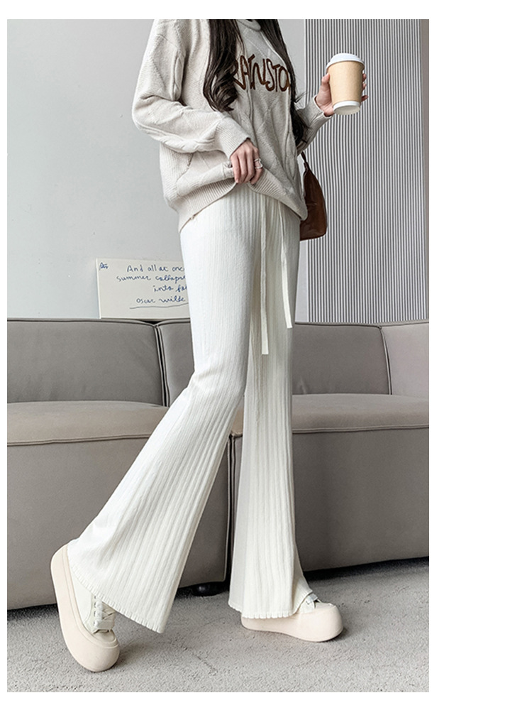 수직 구덩이 니트 마이크로 플레어 바닥 바지 여자 캐주얼 올 매치 와이드 레그 바지 가을과 겨울 두꺼운 캐시미어 말굽 바지스토어 가기
