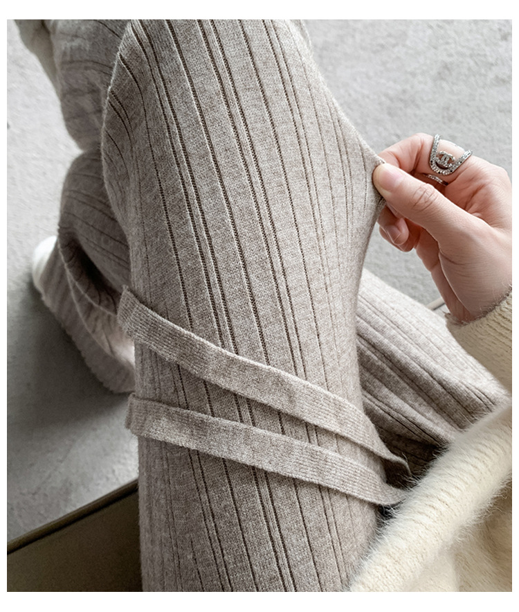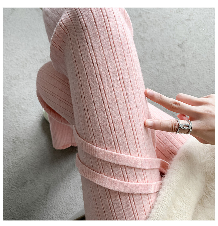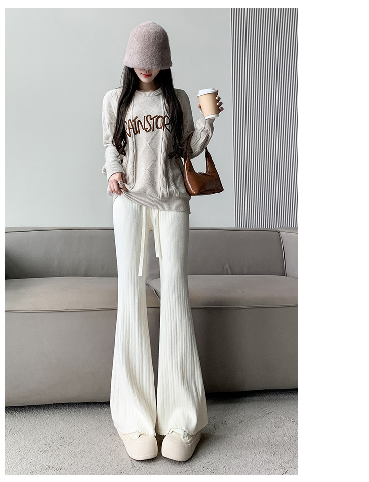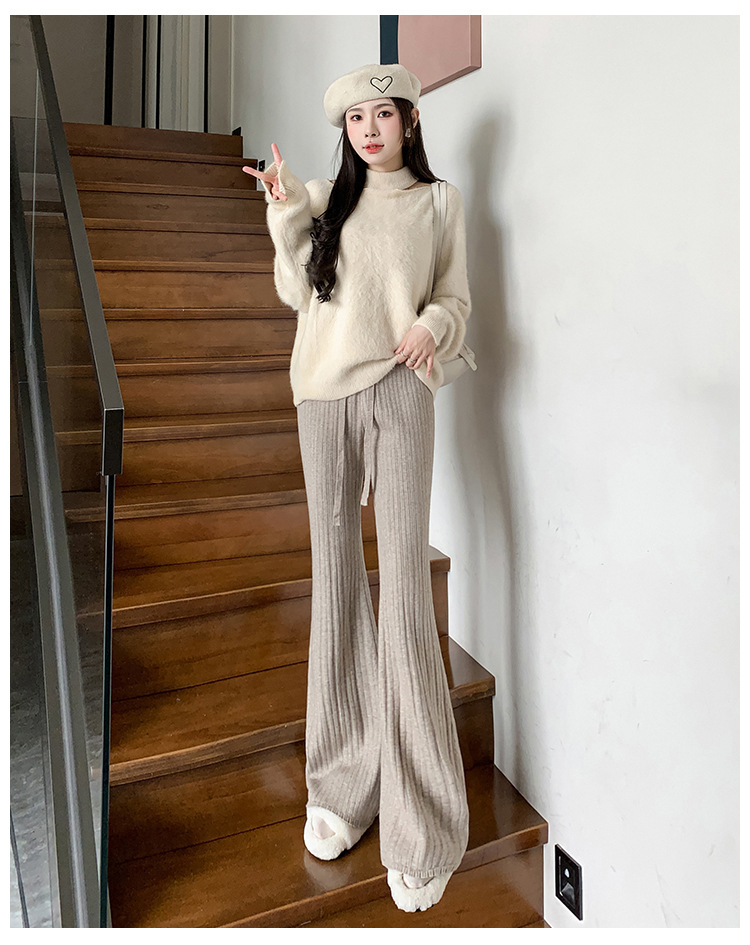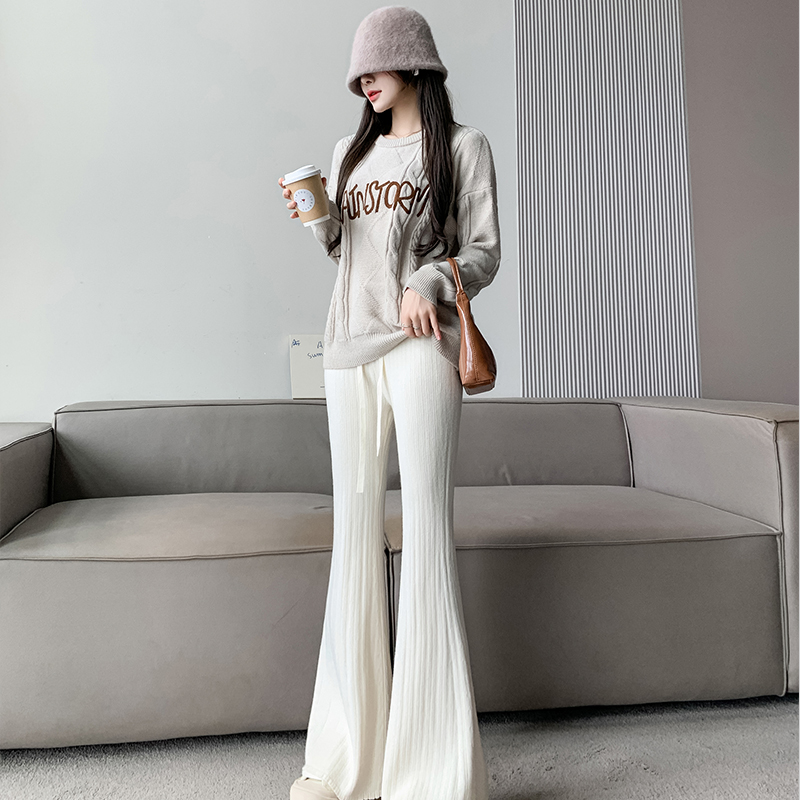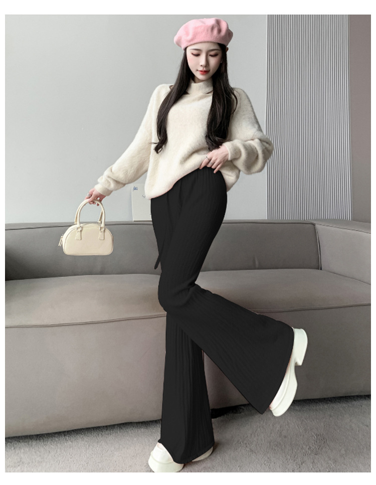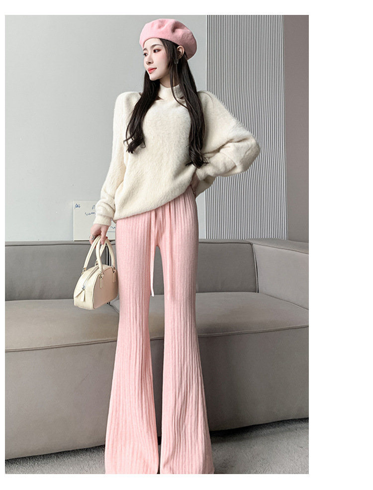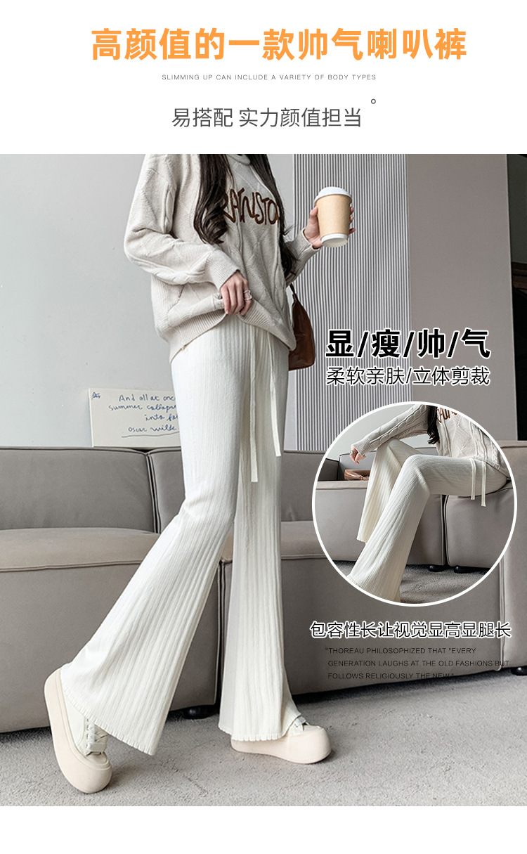 수직 구덩이 니트 마이크로 플레어 바닥 바지 여자 캐주얼 올 매치 와이드 레그 바지 가을과 겨울 두꺼운 캐시미어 말굽 바지스토어 가기
