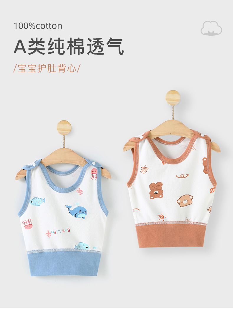 아기 배 보호 조끼 사계절용 A급 순면 신생아 배 보호 민소매 상의 남녀 아기용 봄 가을용스토어 가기