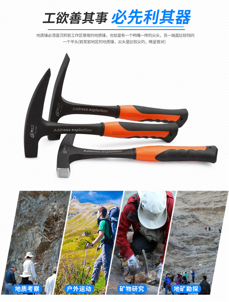전문 탐사 해머 뾰족한 플랫 헤드 해머 탈출 해머 전문 지질 및 광물 탐사 도구 지질 해머스토어 가기