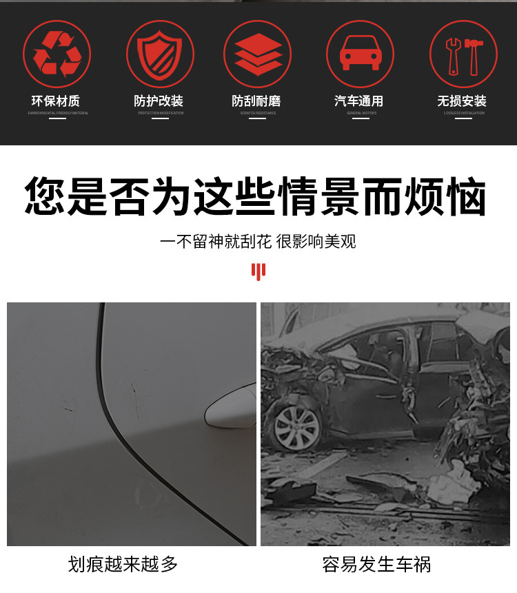 자동차 휠 눈썹 충돌 방지 스트립 반사 경고 테이프 범퍼 도어 스크래치 방지 스트립 발광 백미러 충돌 방지 스트립 스티커