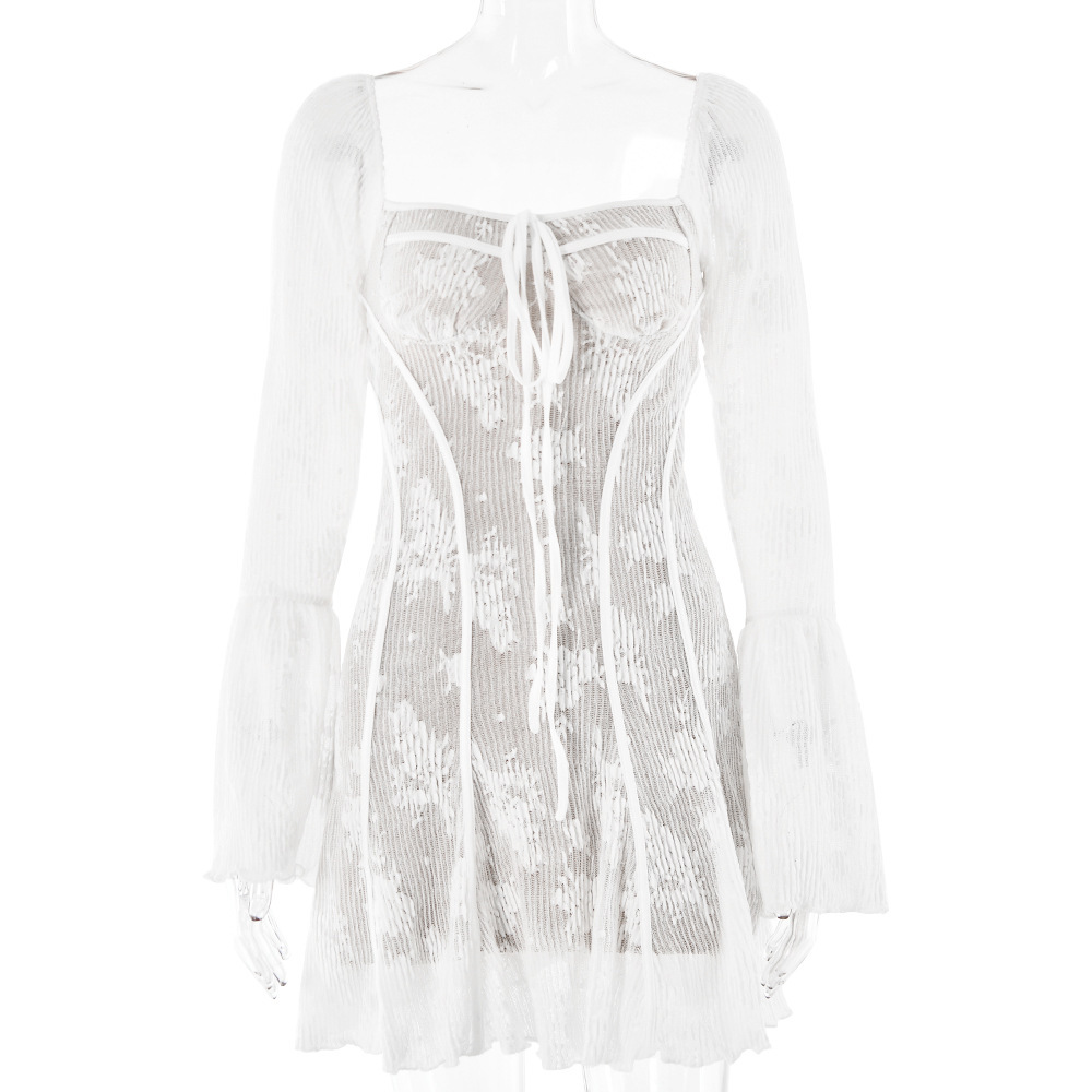 유럽 및 미국 스타일 Ins 레이스 새로운 트럼펫 슬리브 튜브 탑 원피스 Xingang 스파이스 걸 프랑스 캐주얼 백리스 쉬스 스커트스토어 가기