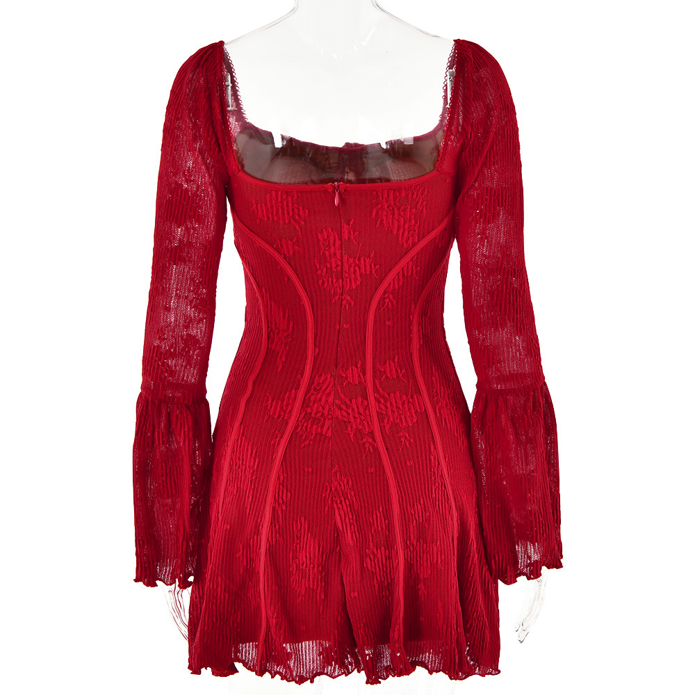 유럽 및 미국 스타일 Ins 레이스 새로운 트럼펫 슬리브 튜브 탑 원피스 Xingang 스파이스 걸 프랑스 캐주얼 백리스 쉬스 스커트