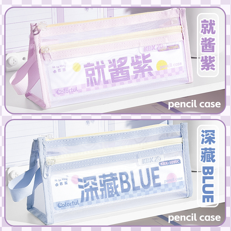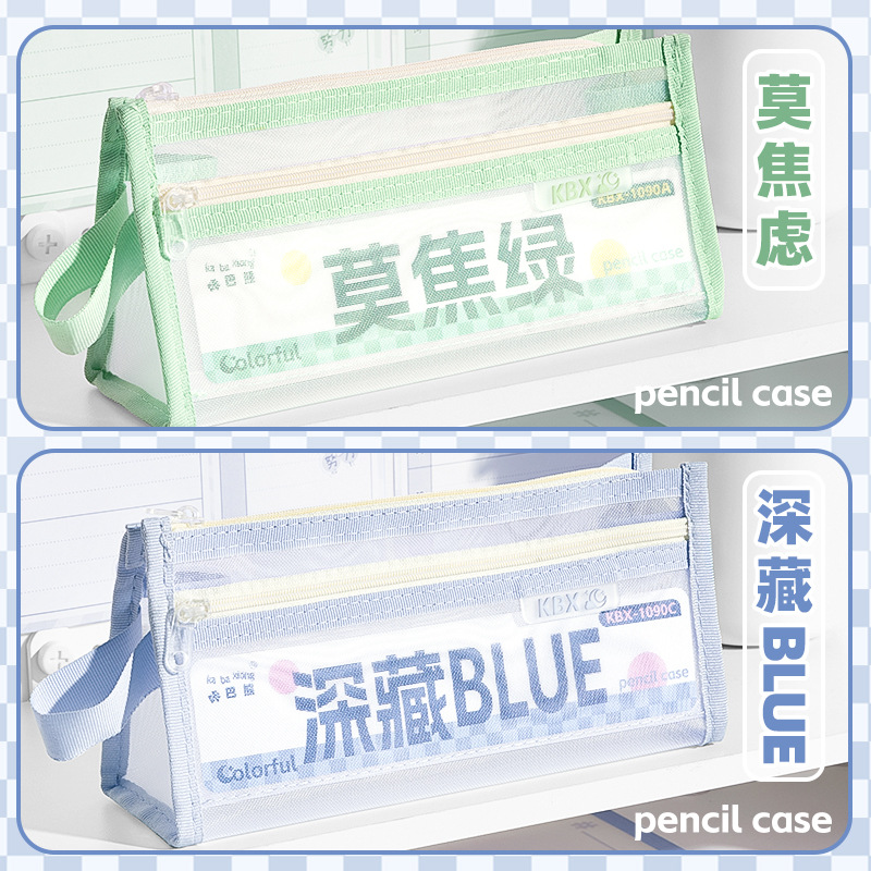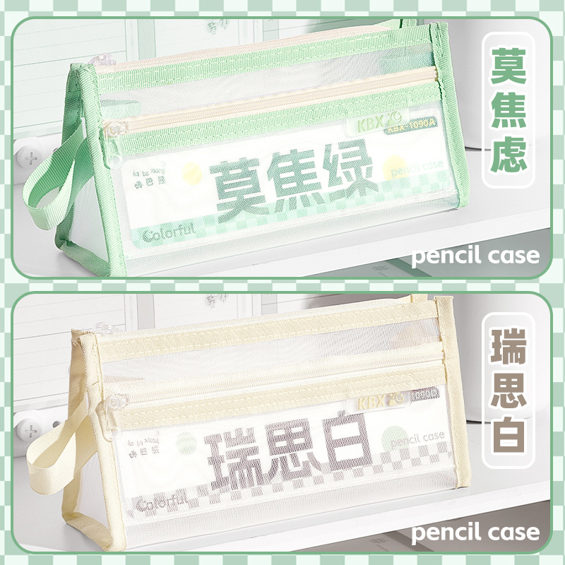 투명한 삼각형 대용량 메쉬 연필 가방 학생 문구 가방 휴대용 중학교 학생 시험 비주얼 연필 가방스토어 가기