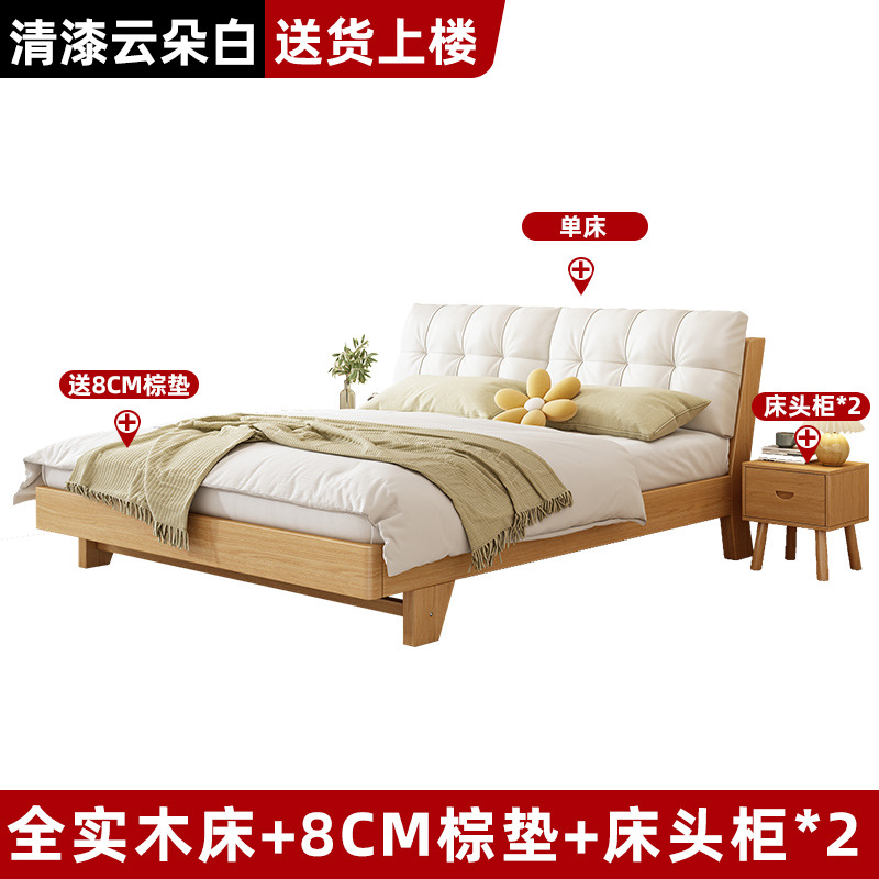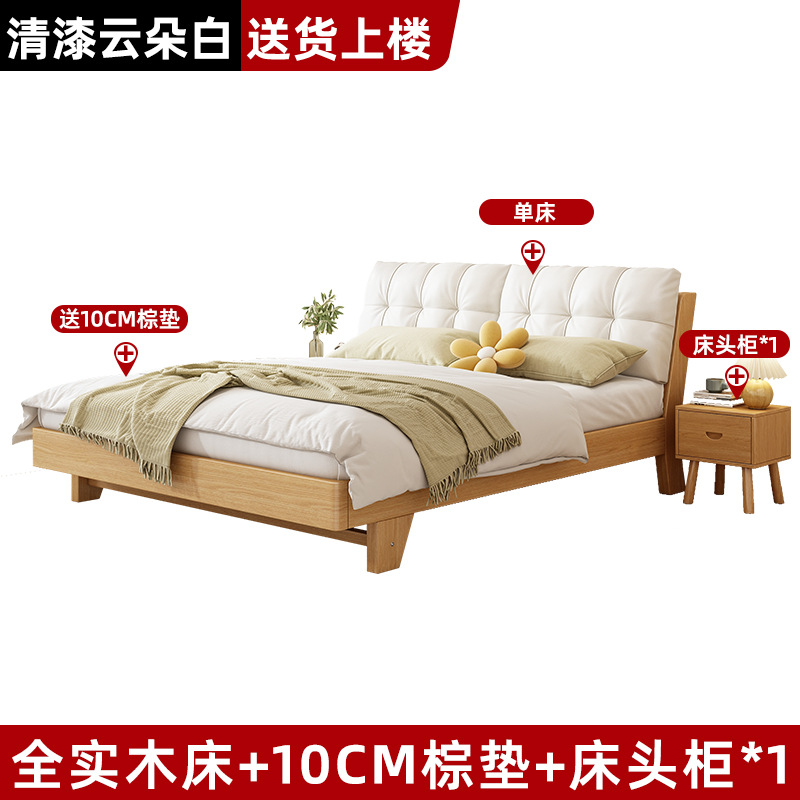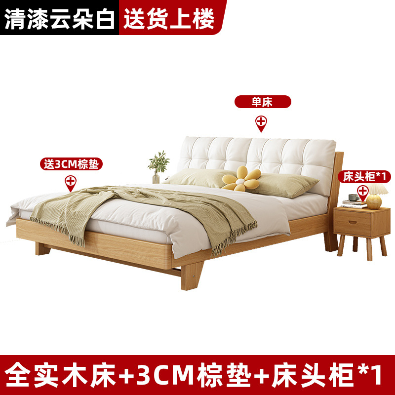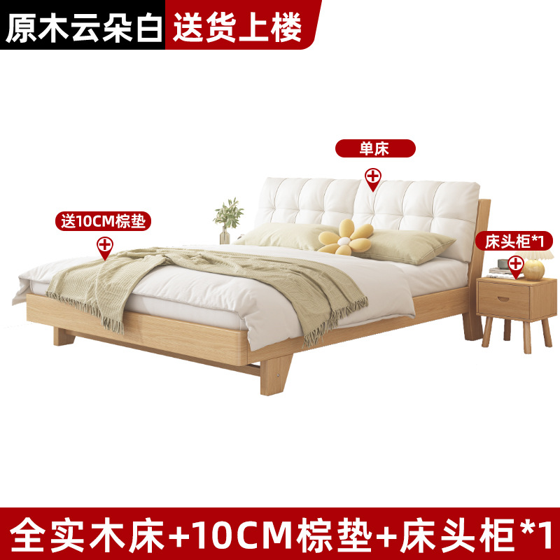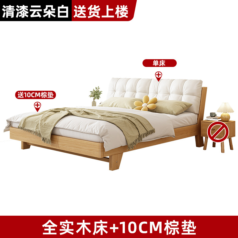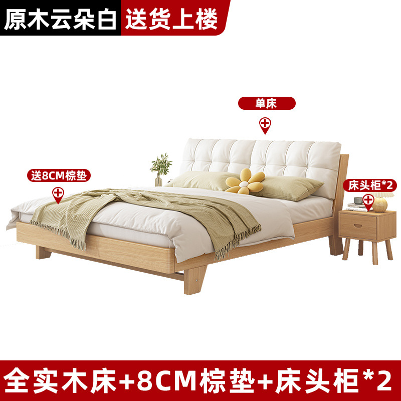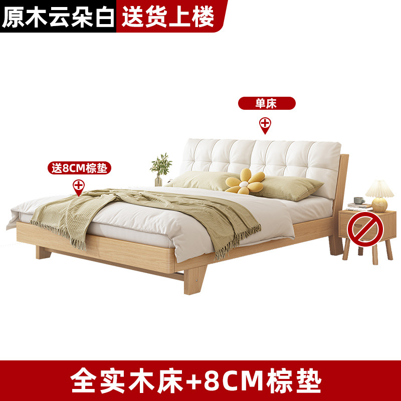 • [철 용골] 통나무 침대 + 푹신한 등받이 + 8CM 매트리스 + 침대 옆 탁자 * 1