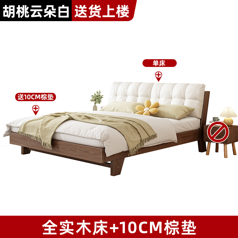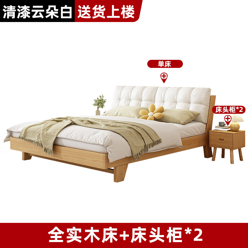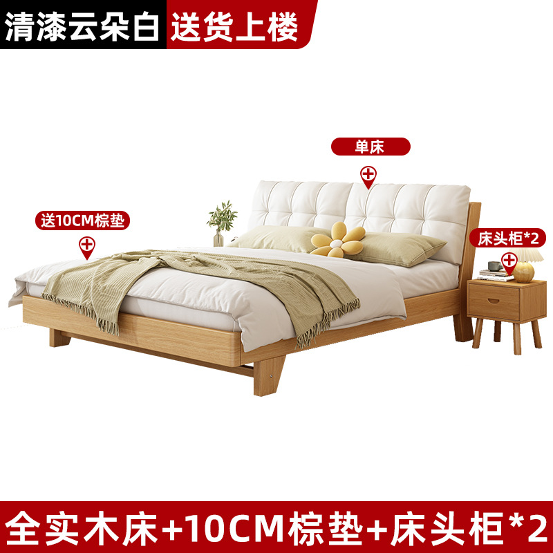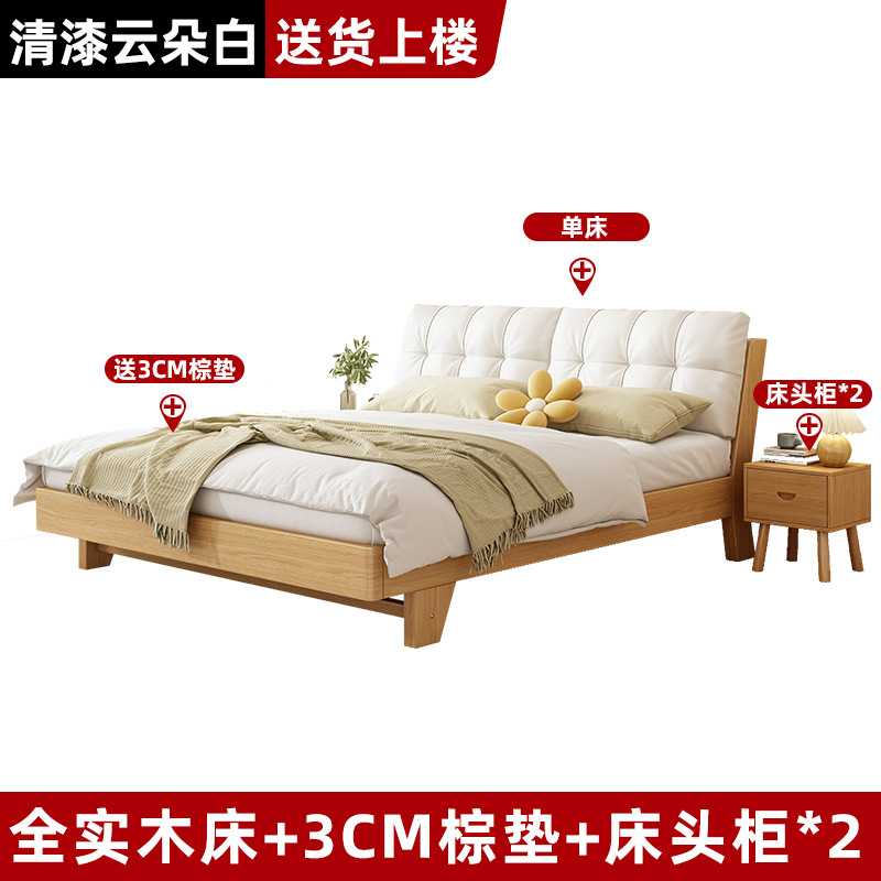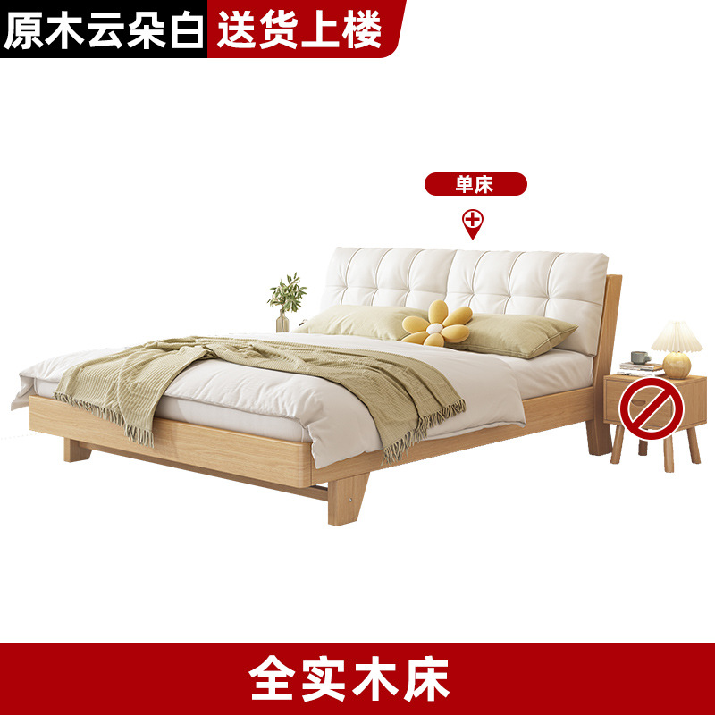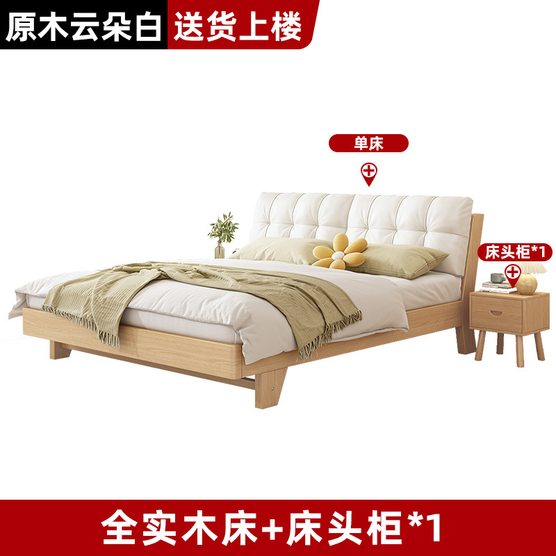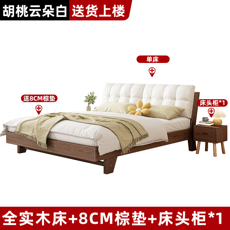 • [철 용골] 통나무 침대 + 푹신한 등받이 + 8CM 매트리스 + 침대 옆 탁자 * 1