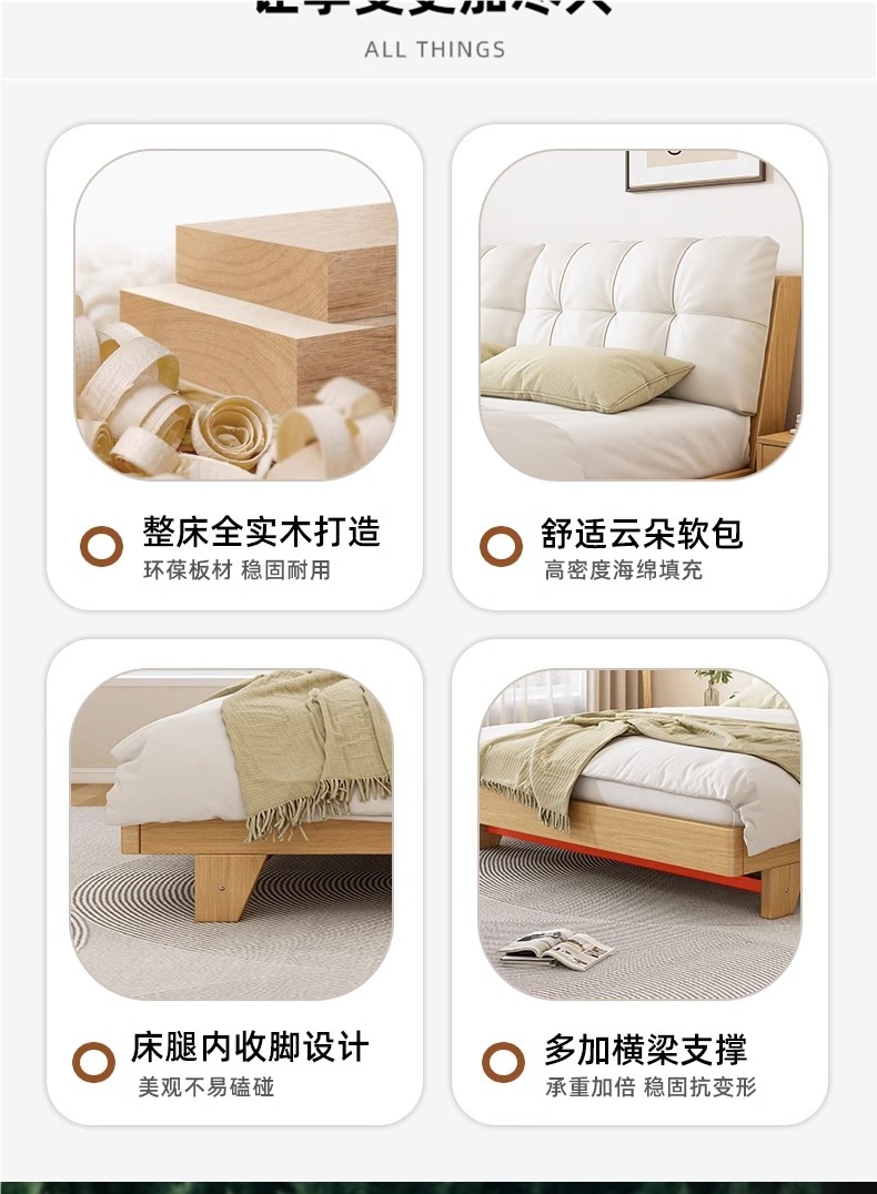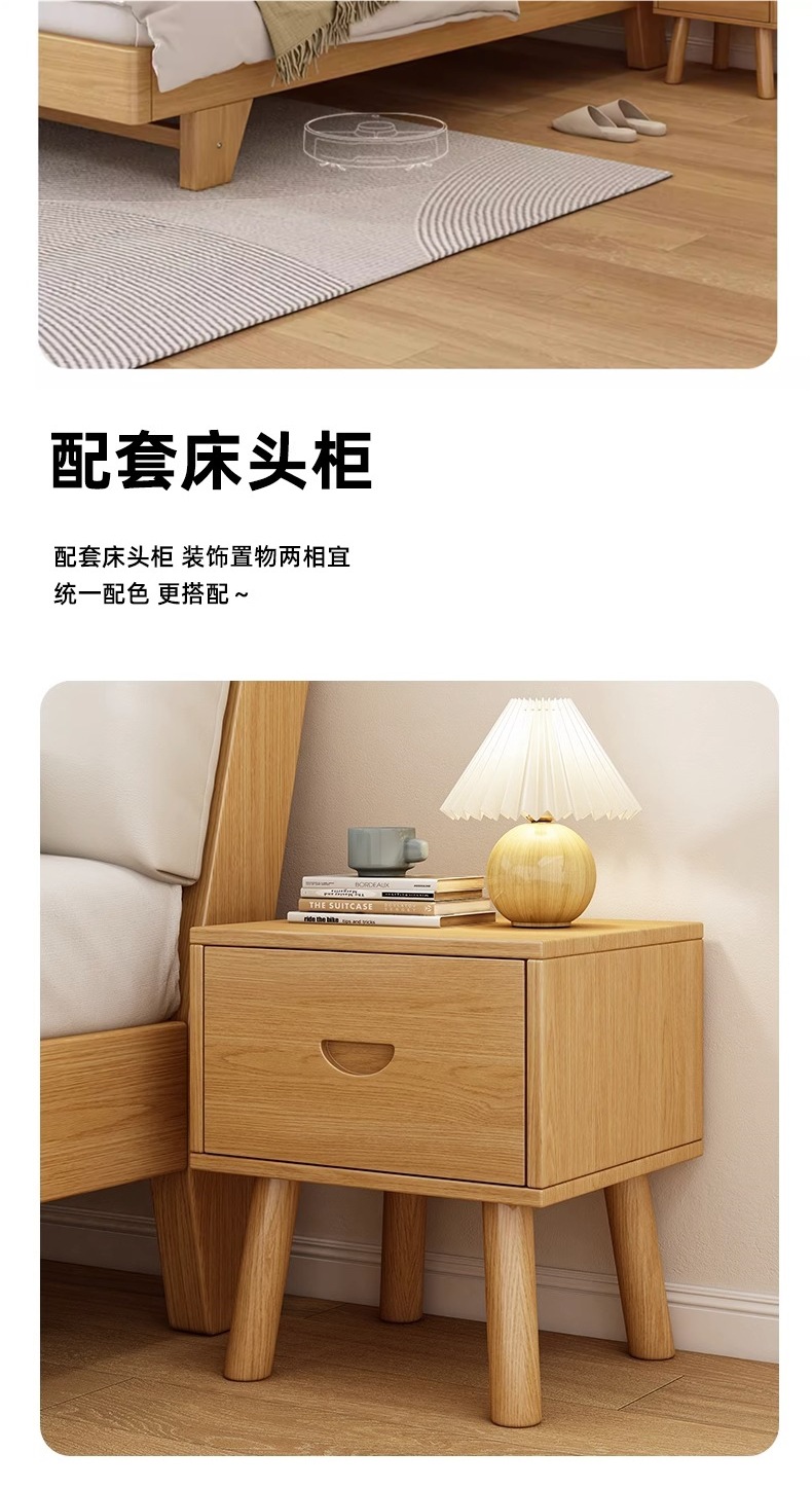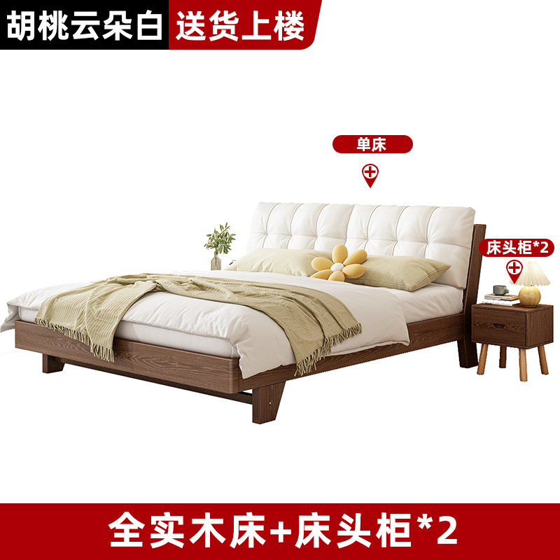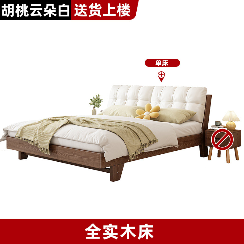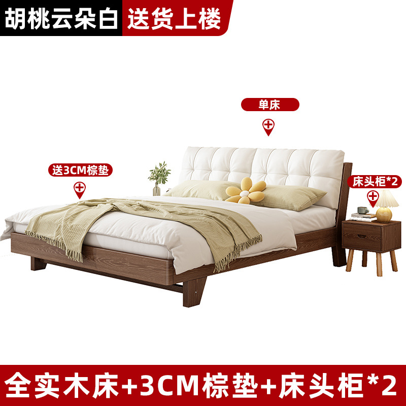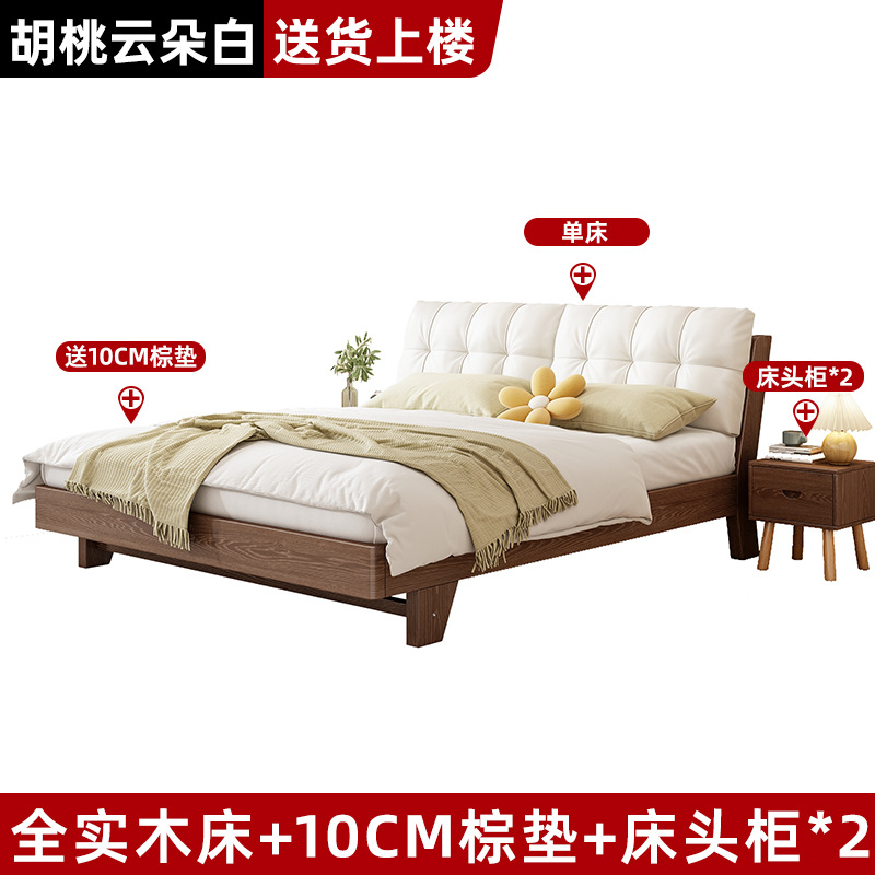 • [철 용골] 통나무 침대 + 푹신한 등받이 + 8CM 매트리스 + 침대 옆 탁자 * 1