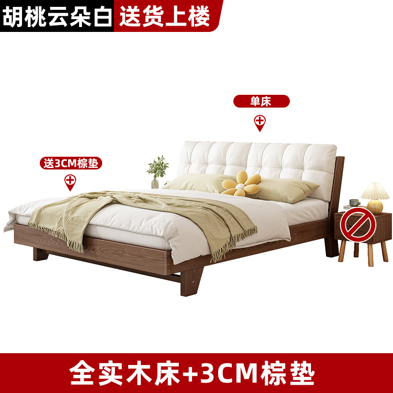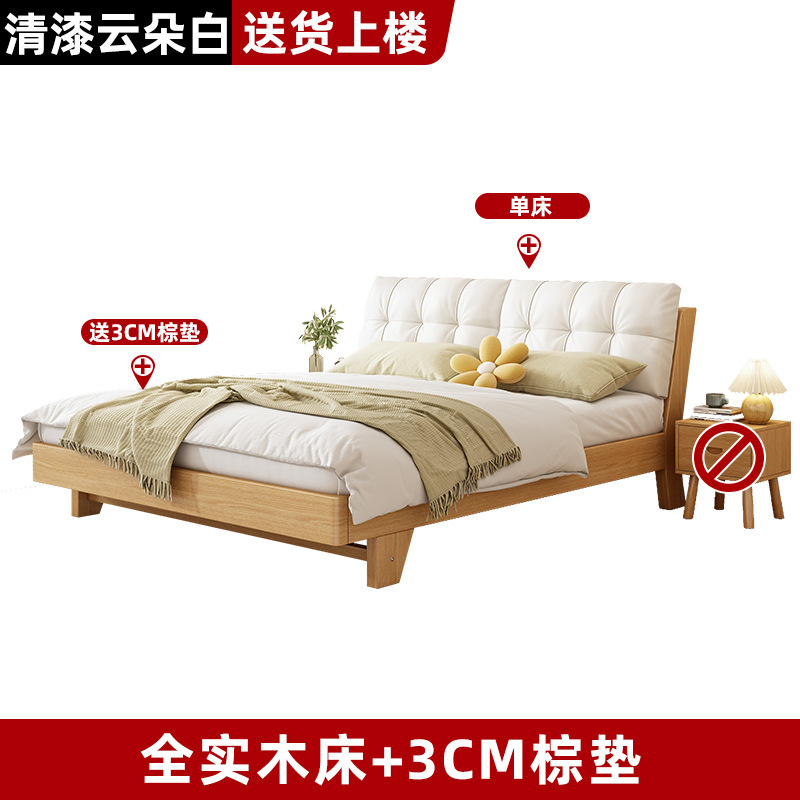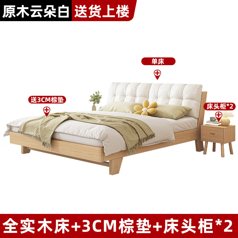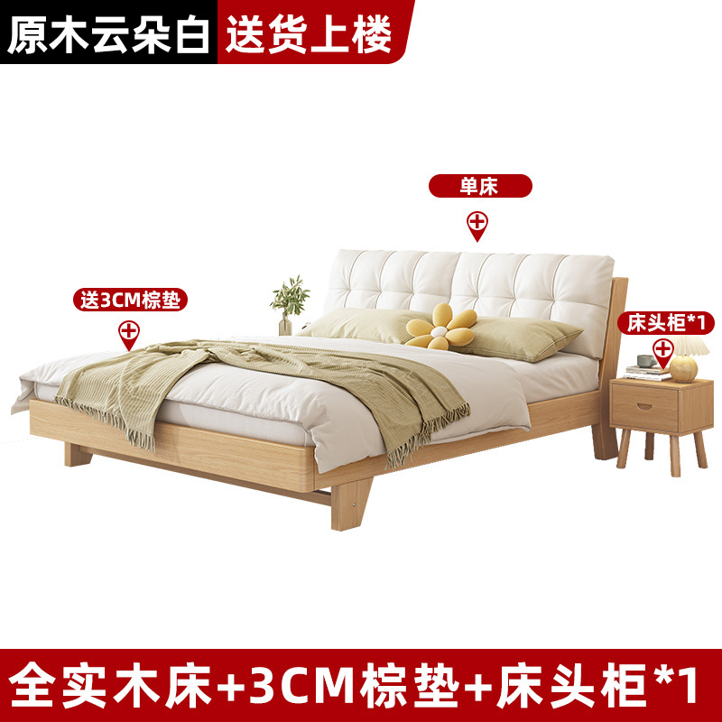 • [철 용골] 통나무 침대 + 푹신한 등받이 + 3CM 매트리스 + 침대 옆 탁자 * 1