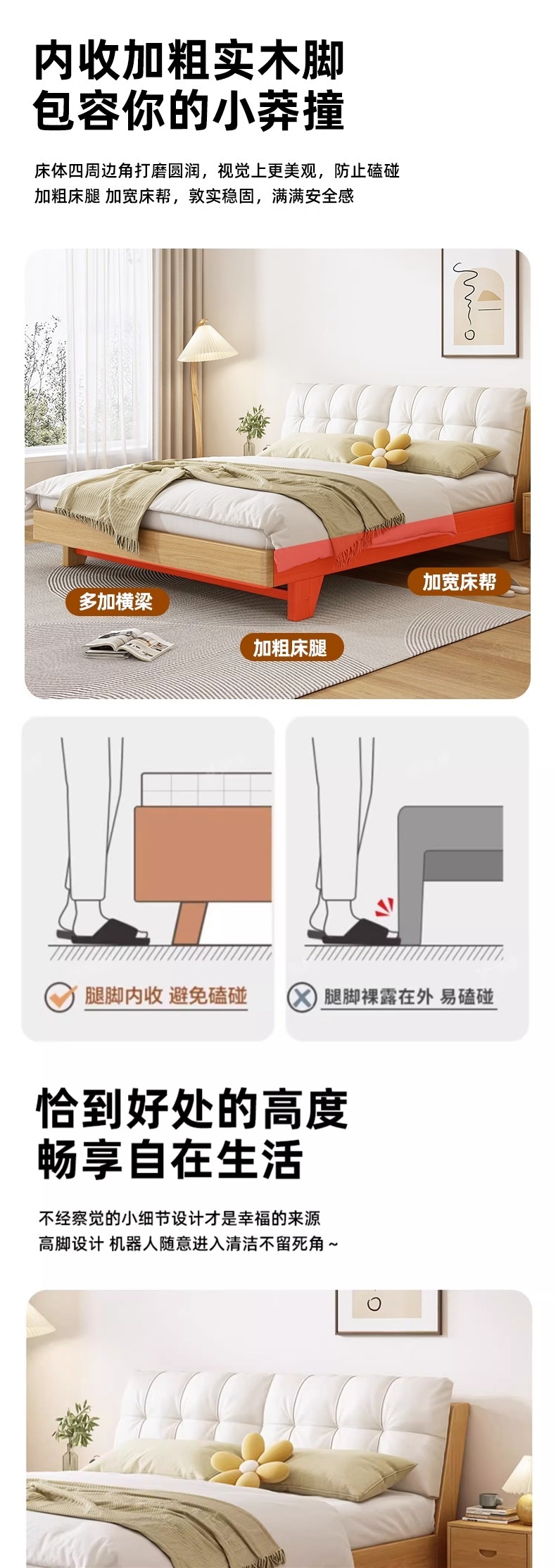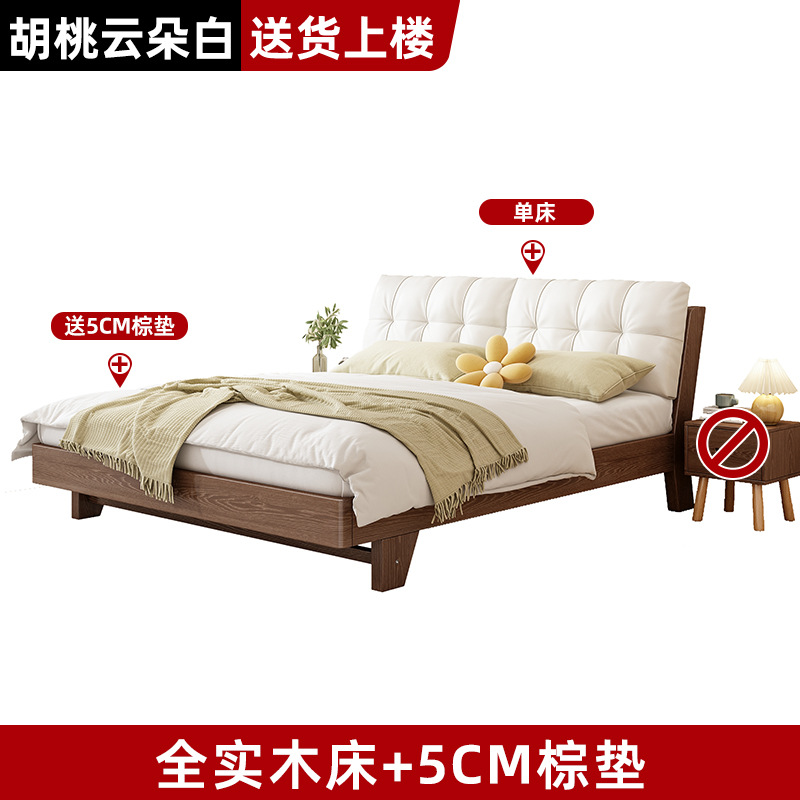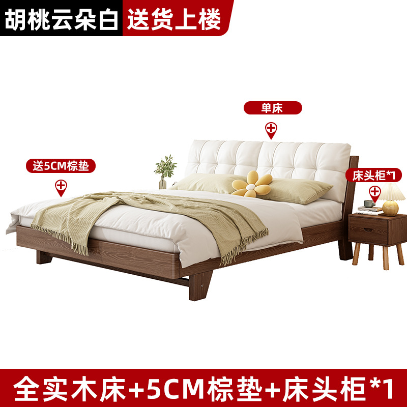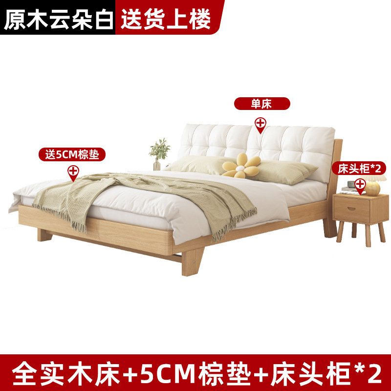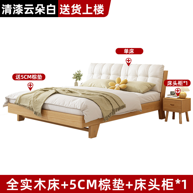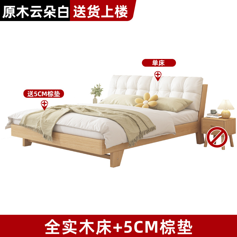 • [철 용골] 통나무 침대 + 푹신한 등받이 + 5CM 매트리스 + 침대 옆 탁자 * 1
