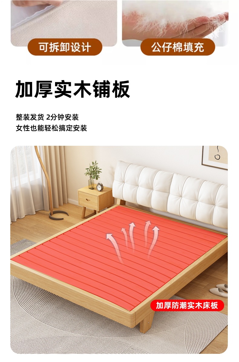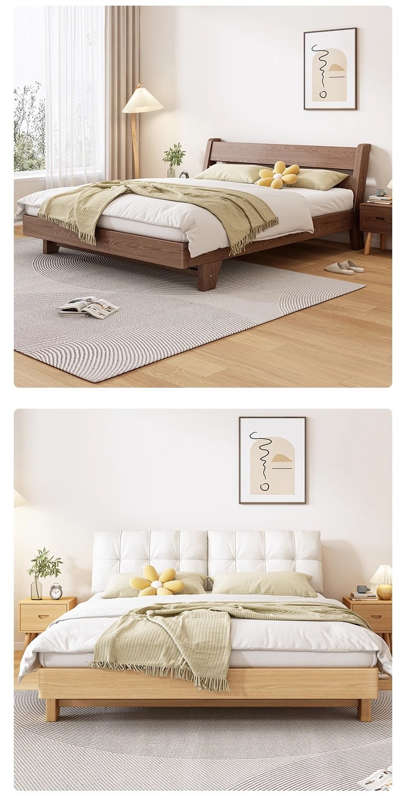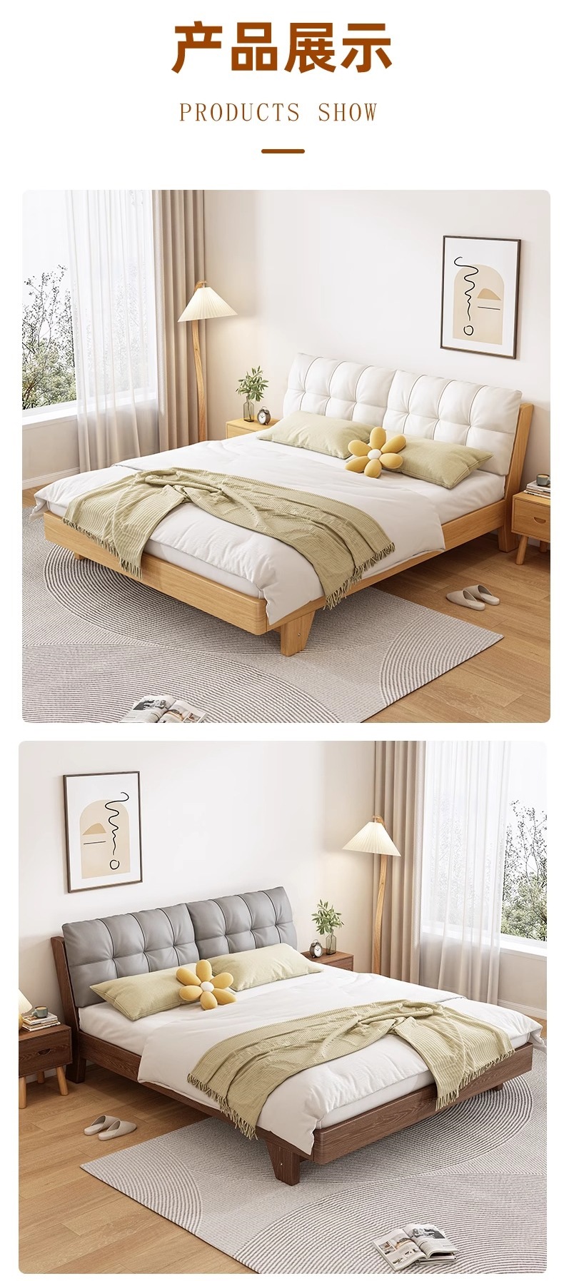 • [철 용골] 통나무 침대 + 푹신한 등받이 + 5CM 매트리스 + 침대 옆 탁자 * 2