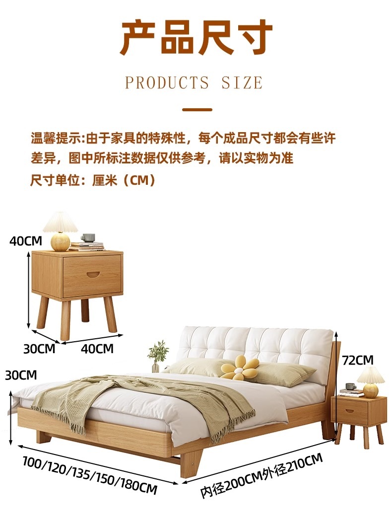 • [철 용골] 바니시 침대 + 푹신한 등받이 + 8CM 매트리스 + 침대 옆 탁자 * 1