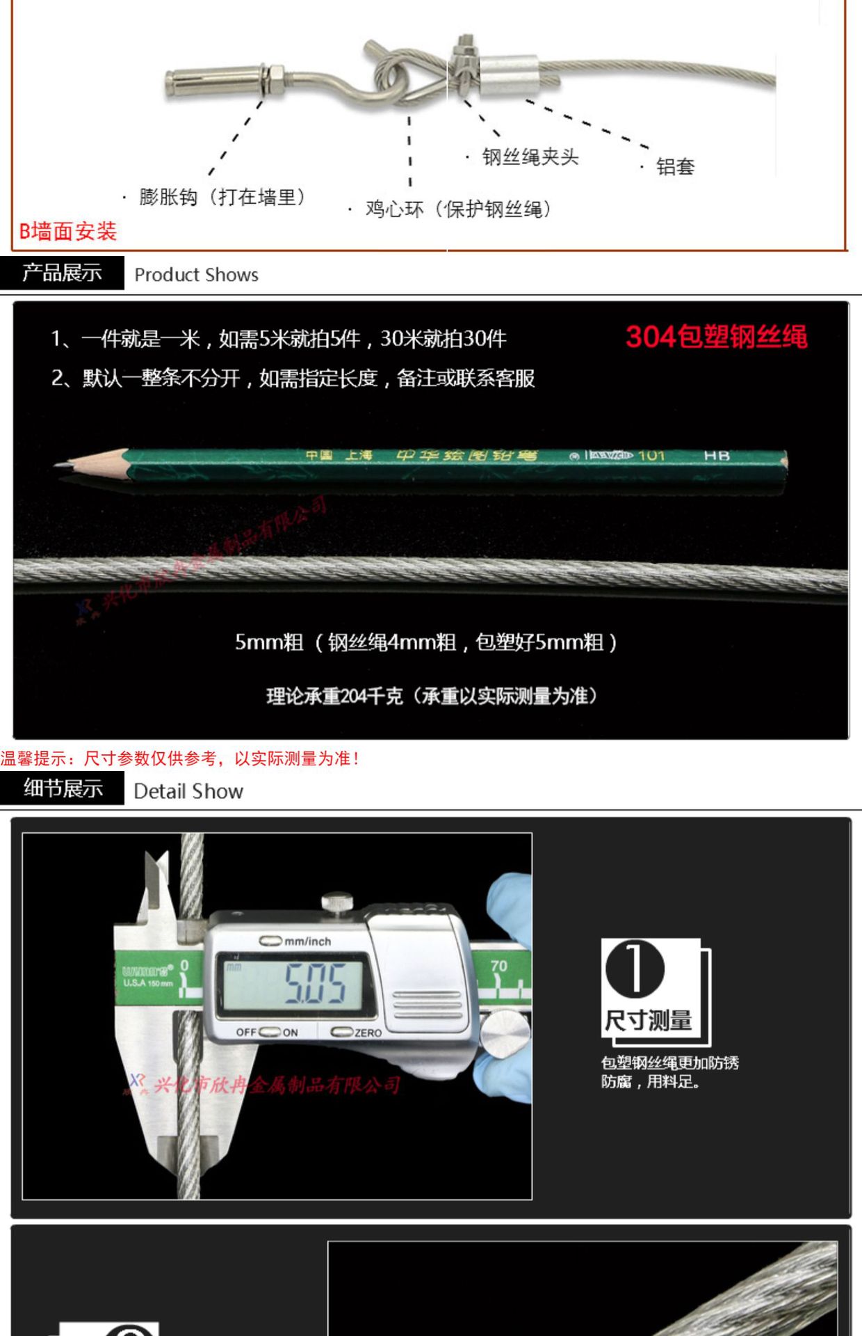 304 스테인레스 스틸 투명 플라스틱 코팅 강철 와이어 로프 플라스틱 코팅 강철 와이어 로프 건조 퀼트 라인 5mm스토어 가기