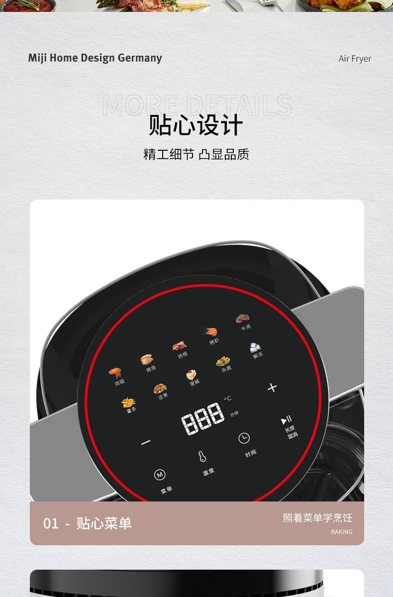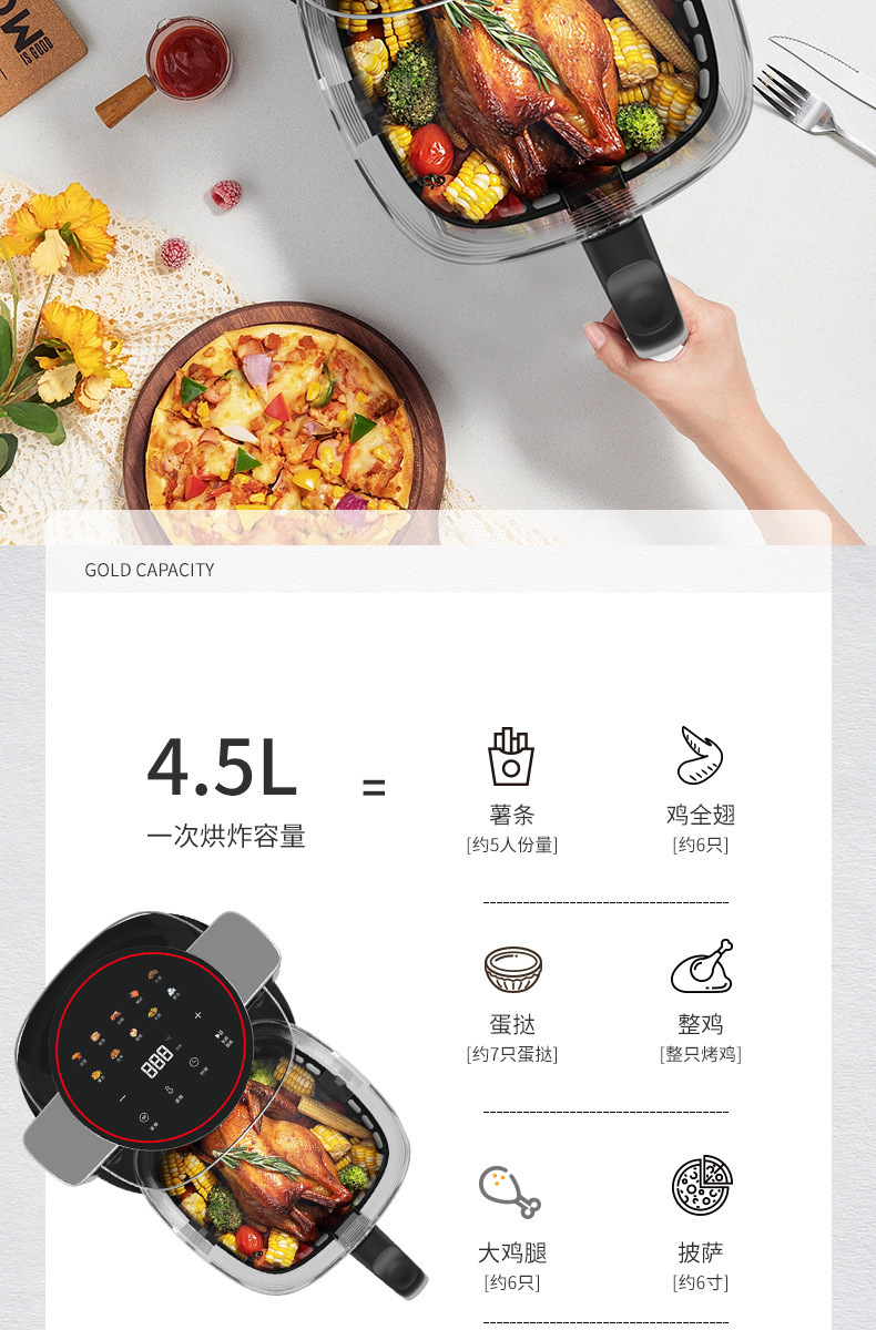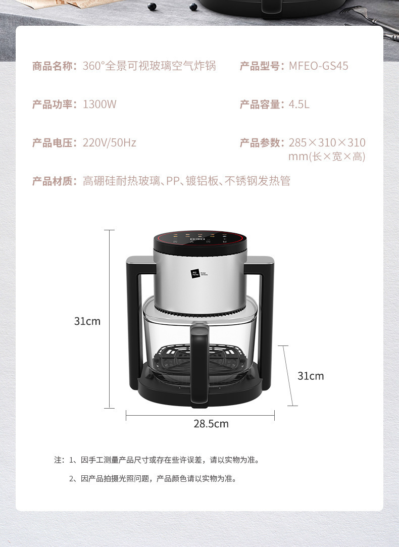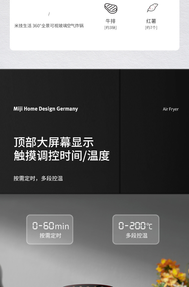 Miji MFEO-GS45 에어 프라이어 가정용 프라이어 대용량 스마트 유리 에어 프라이어
