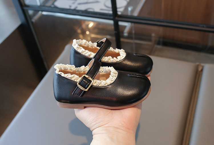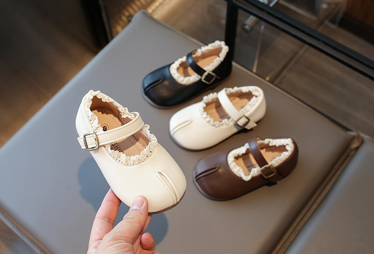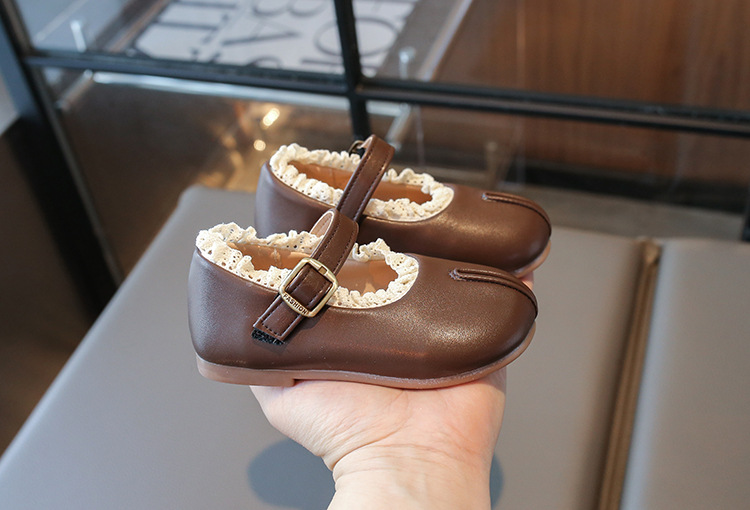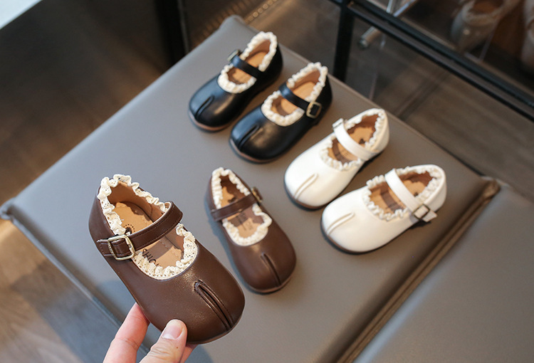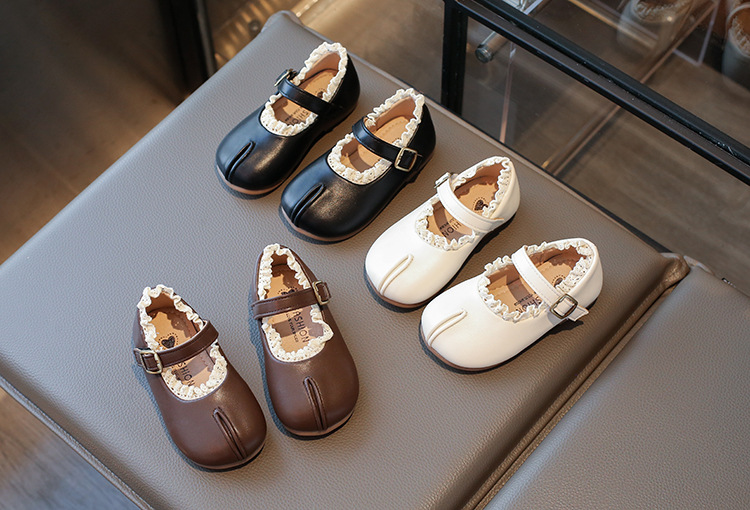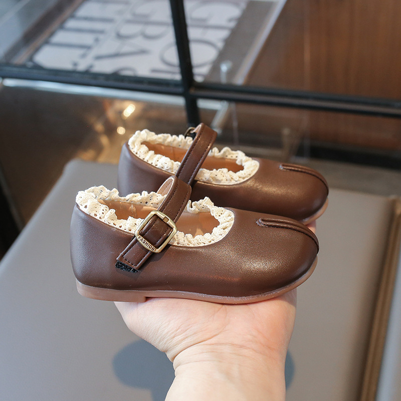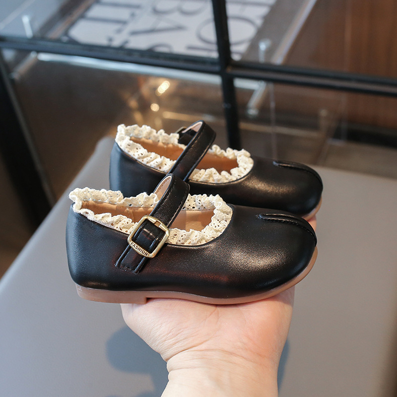 여자 작은 가죽 신발 2025 봄 새로운 어린이 서양 스타일 올 매치 프린세스 신발 여성의 부드러운 바닥 얕은 입 미끄럼 싱글 레이어 신발스토어 가기