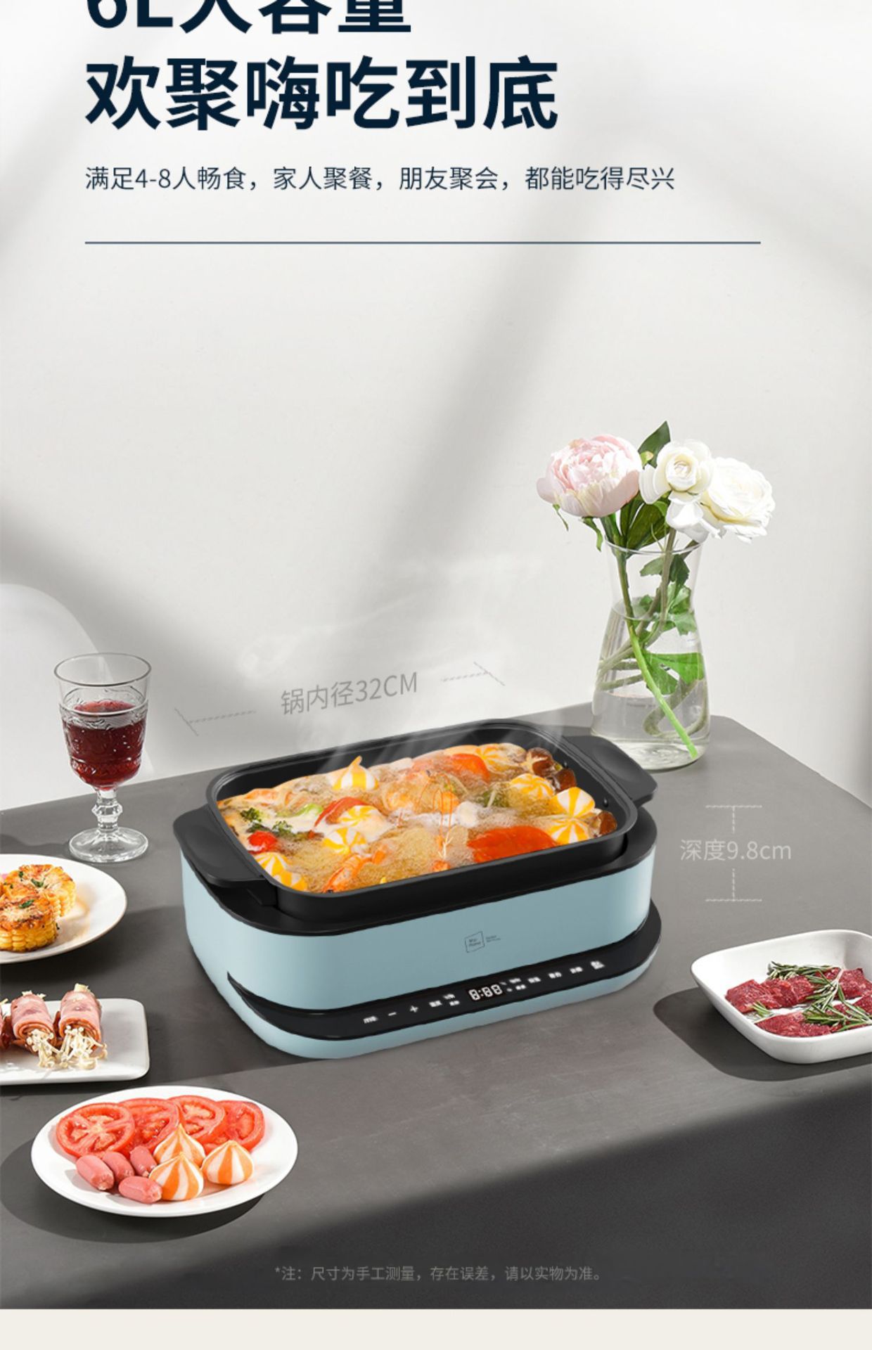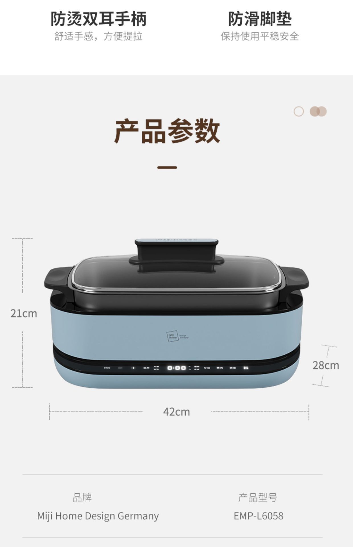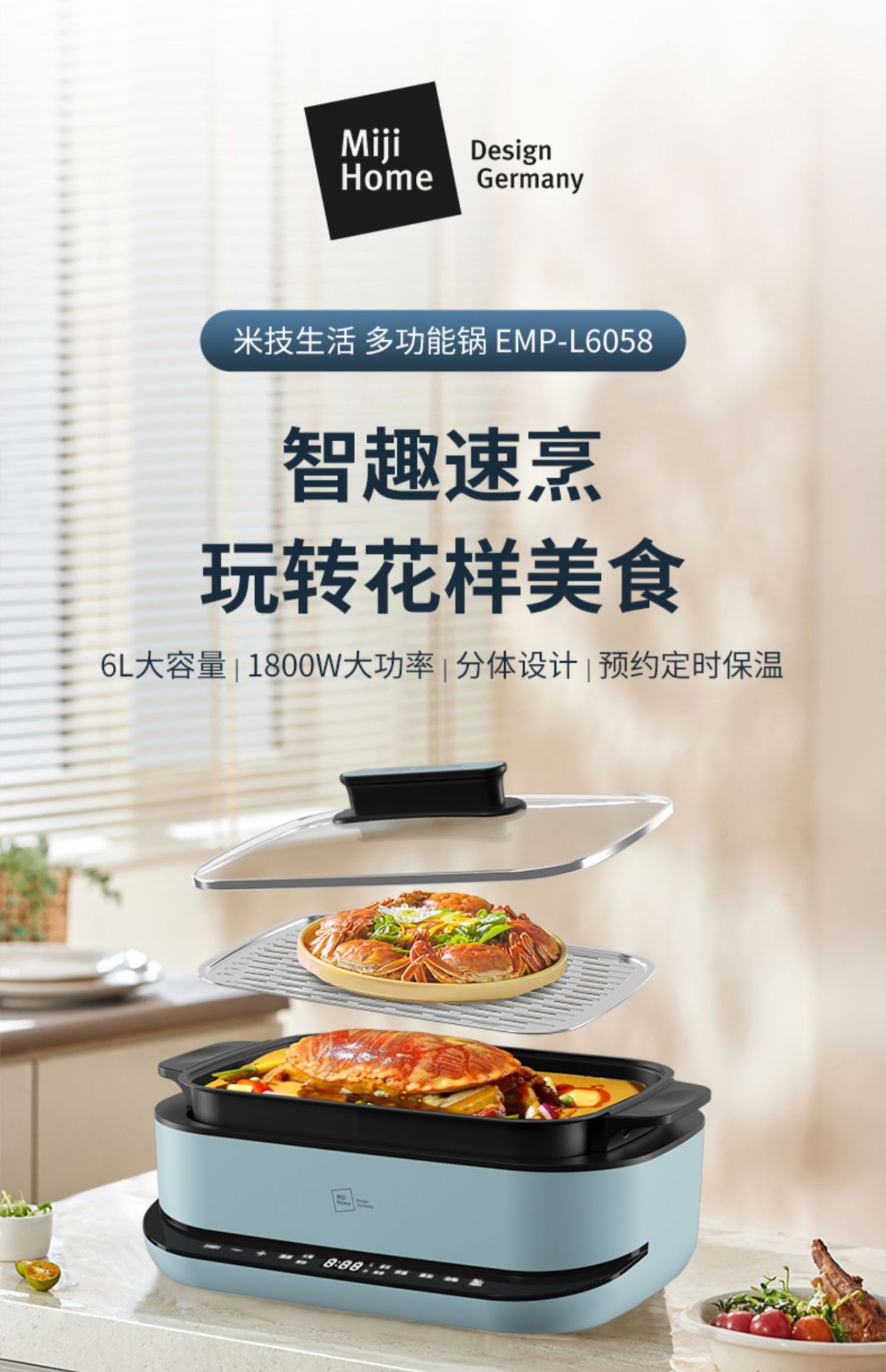 독일 쌀 기술 MIJI 다기능 냄비 EMP-L6058 요리 냄비 6L 분할 전기 냄비 예약 단열재