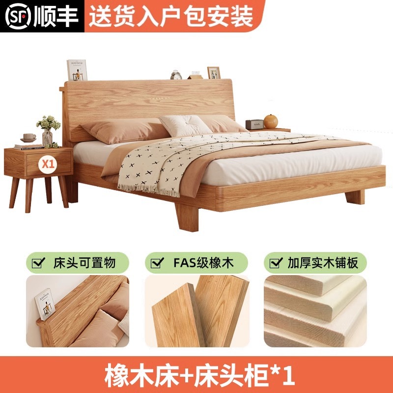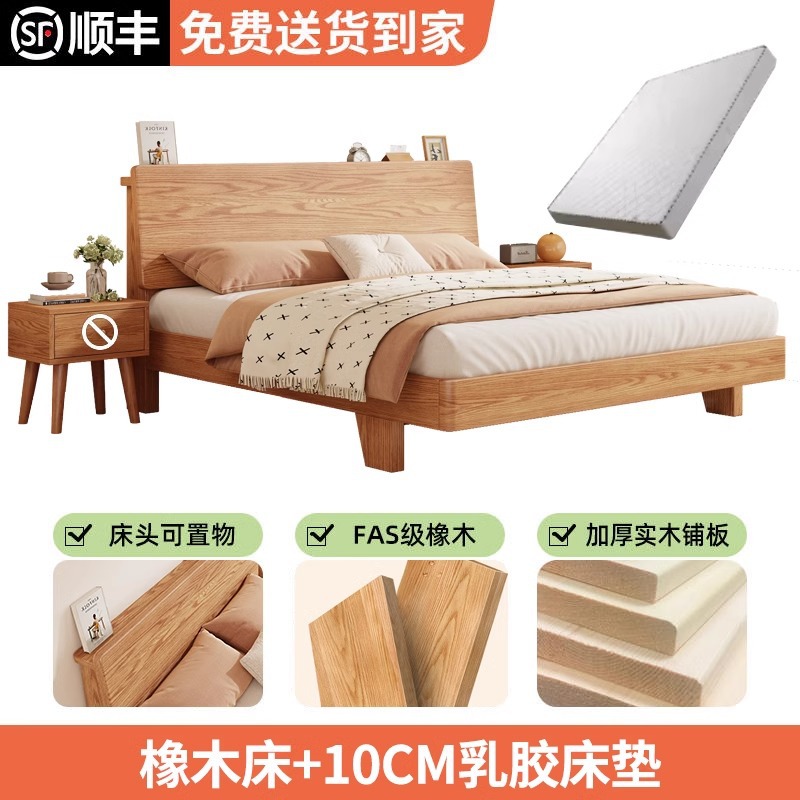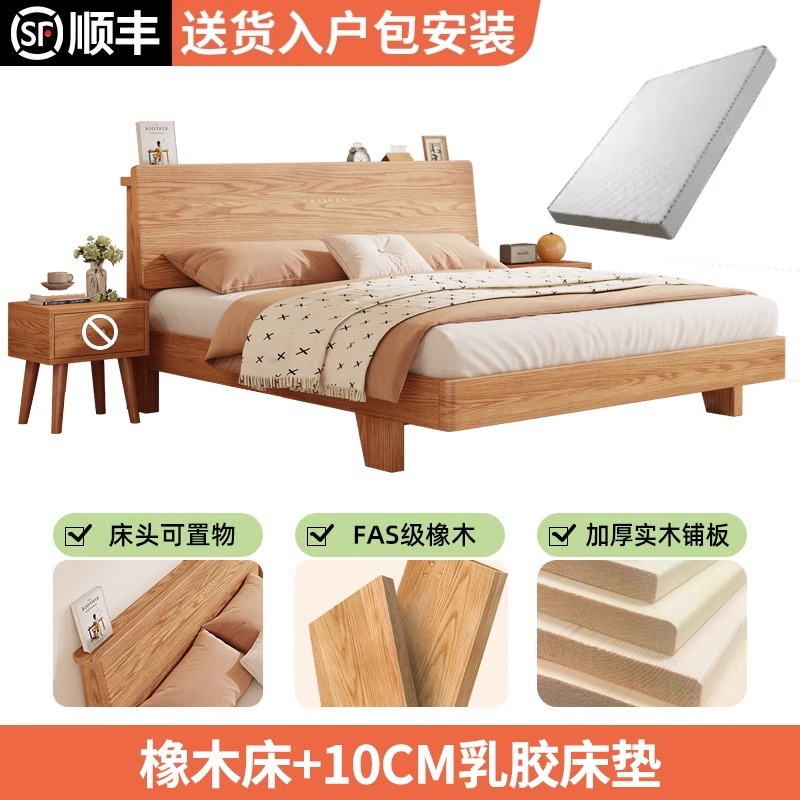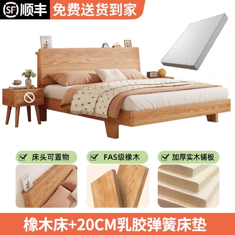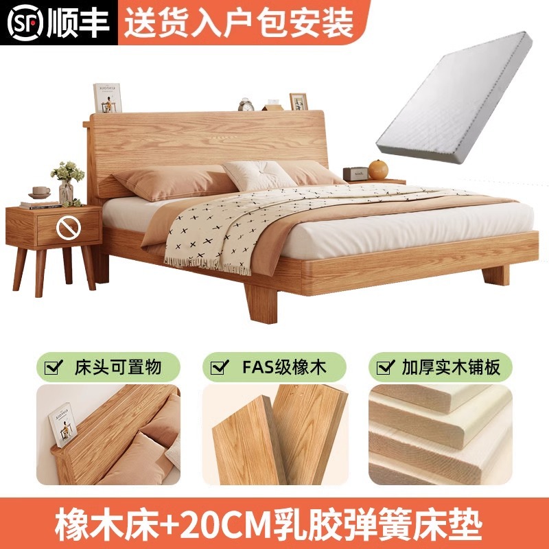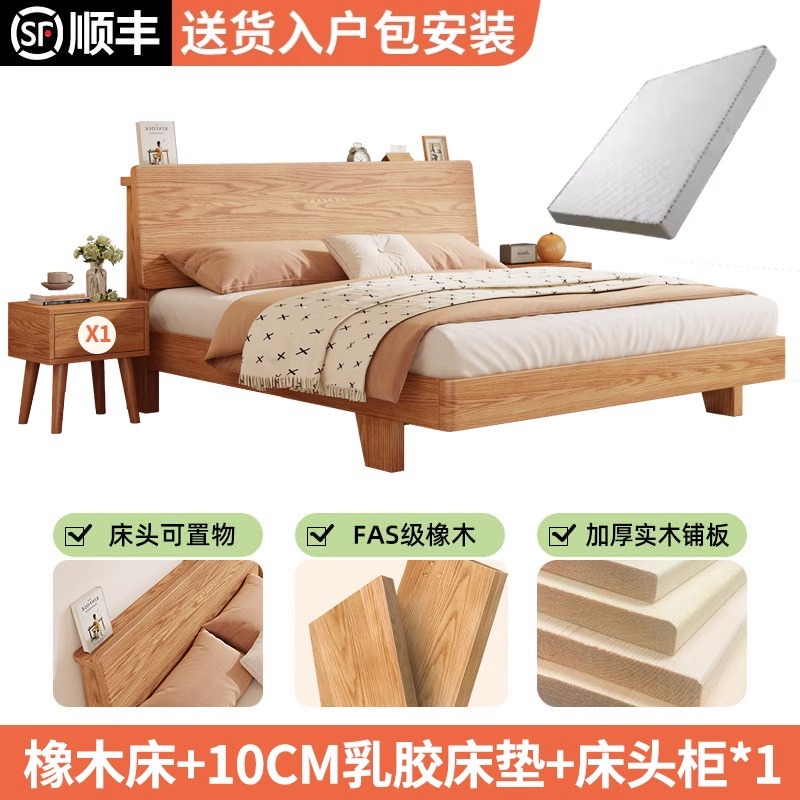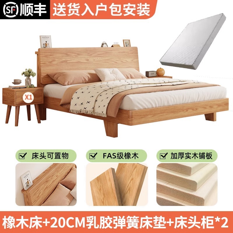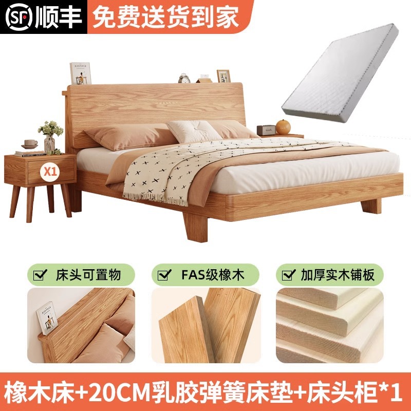 • 오크 침대 + 20cm 라텍스 매트리스 + 침대 옆 탁자 * 1 [위층 패키지 + 설치]