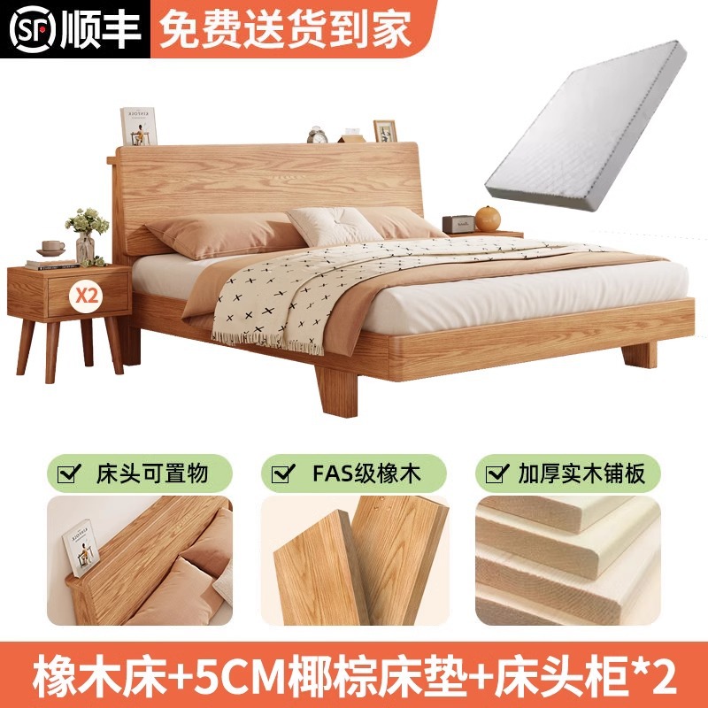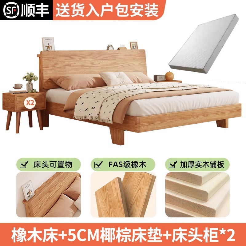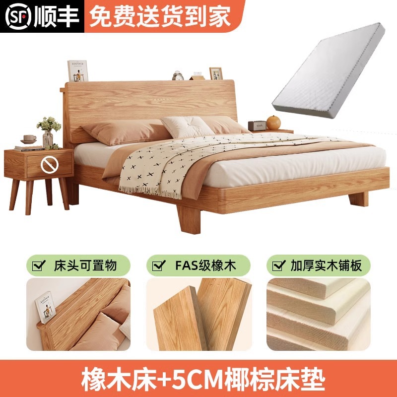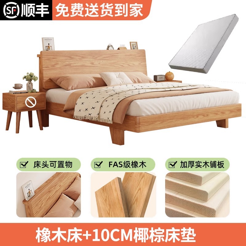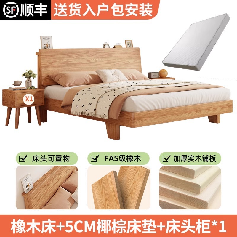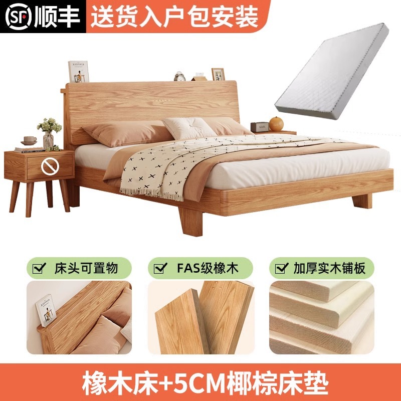 • 오크 침대 + 5cm 코코넛 야자 매트리스 + 침대 옆 탁자 * 1 [위층 패키지]