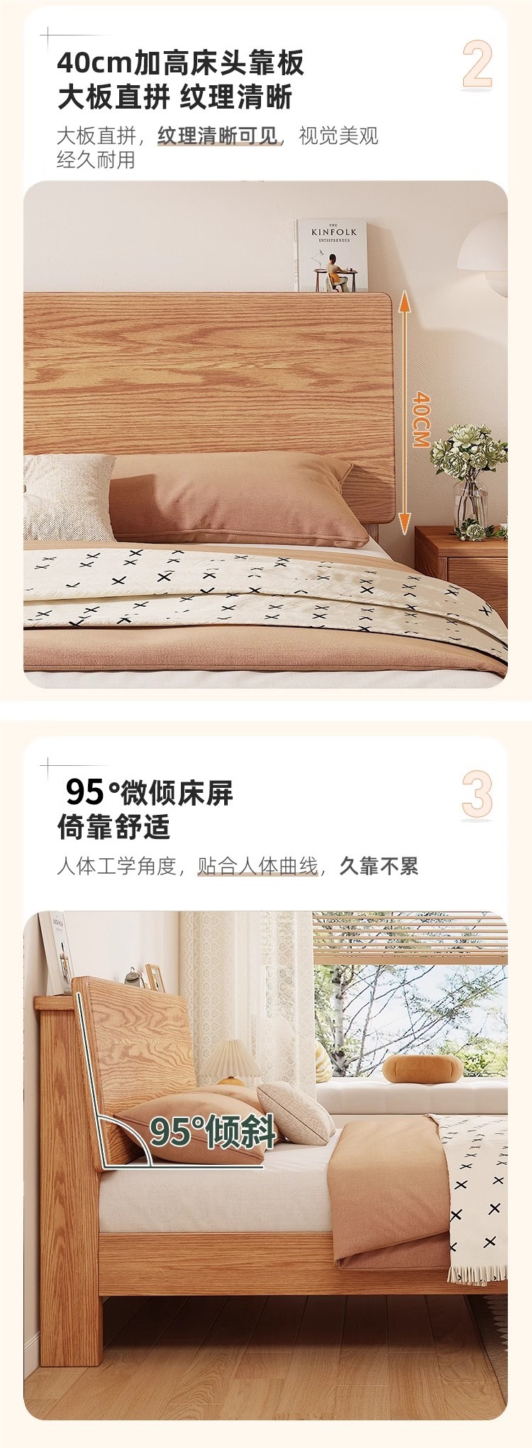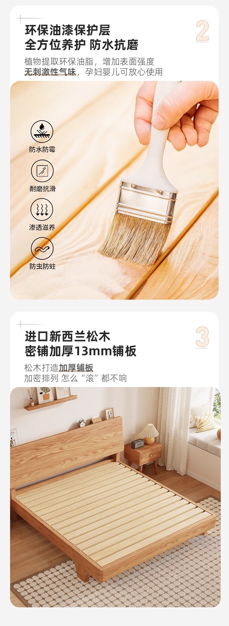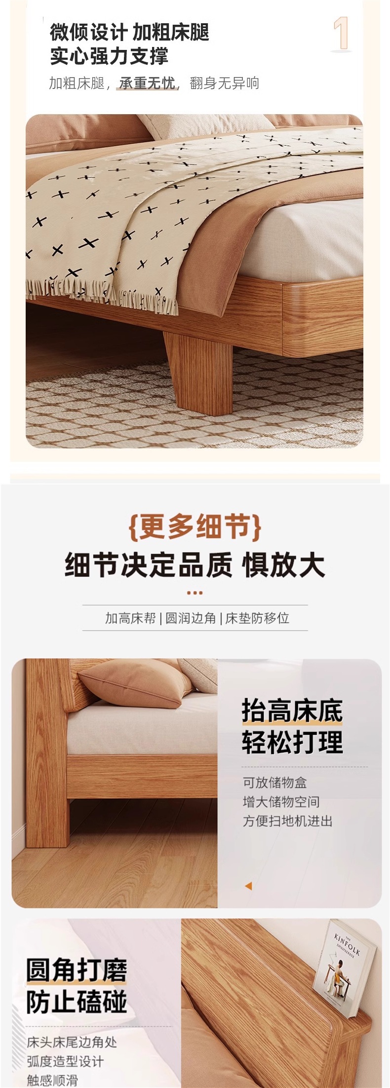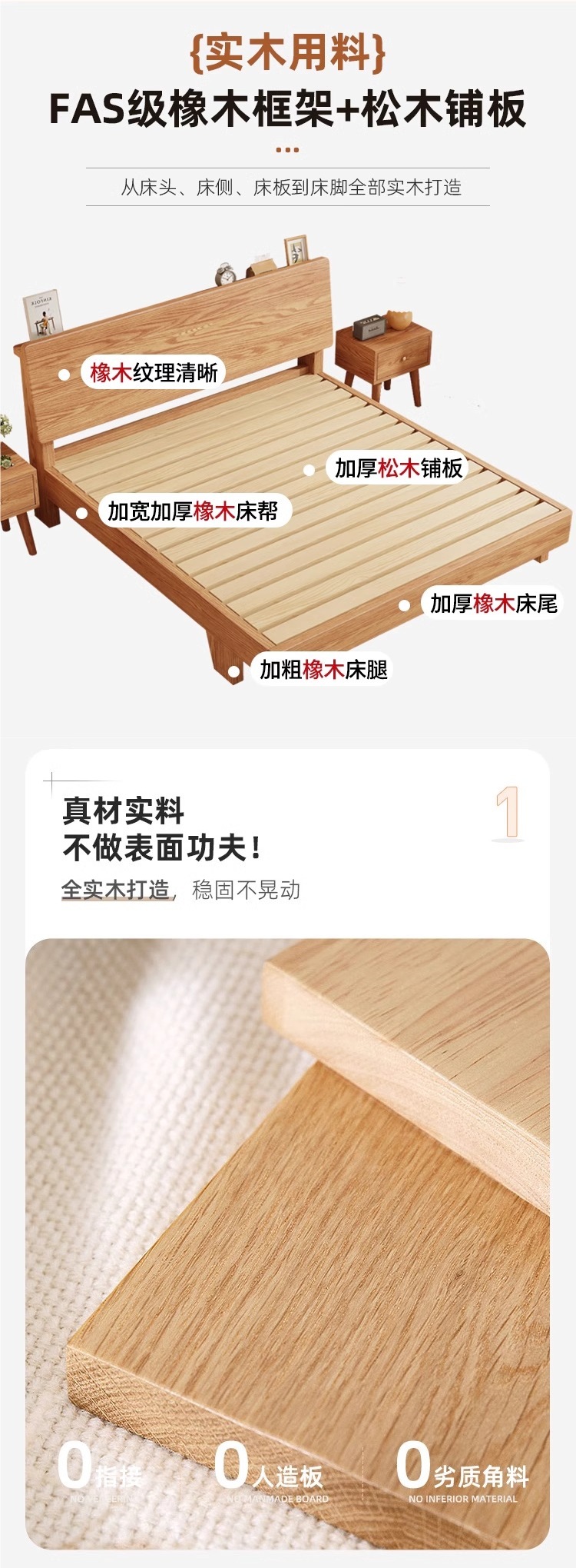 • 오크 침대 + 5cm 코코넛 야자 매트리스 + 침대 옆 탁자 * 1 [위층 패키지]