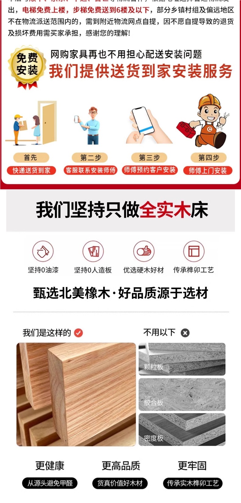 • 오크 침대 + 5cm 코코넛 야자 매트리스 + 침대 옆 탁자 * 1 [위층 패키지 + 설치]