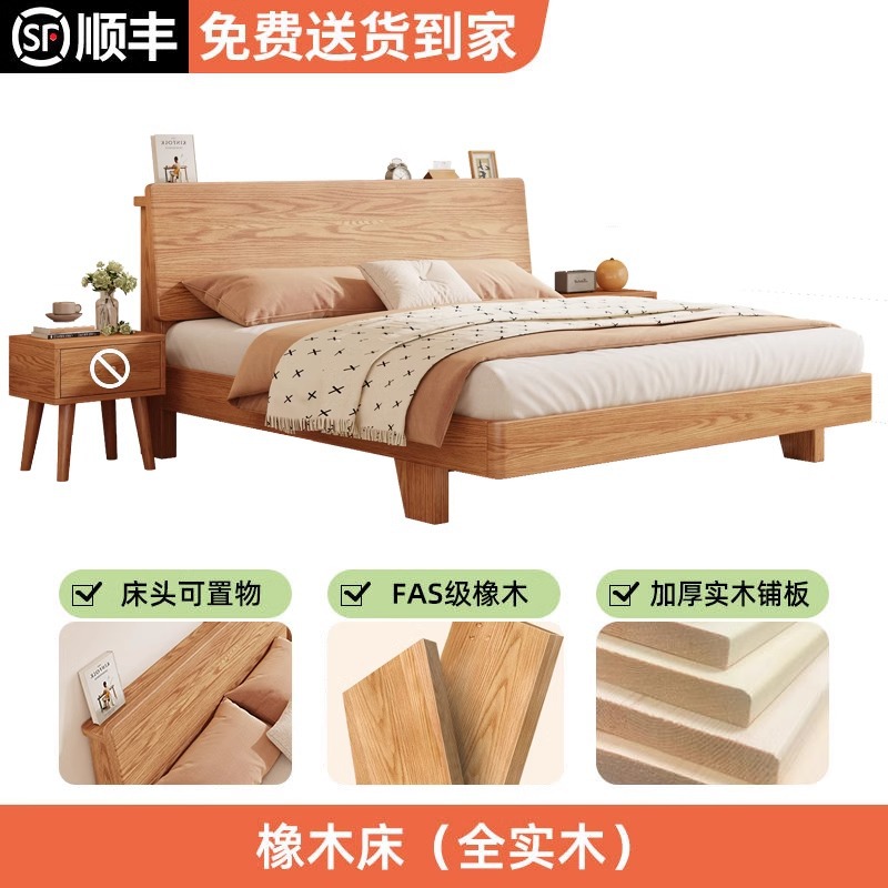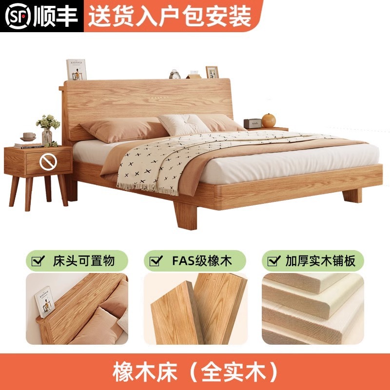 침대 단단한 나무 침대 현대 간단한 더블 침대 마스터 침실 1.5m 원래 나무 침대 1.8m 가구 싱글 침대 다다미 침대 프레임스토어 가기
