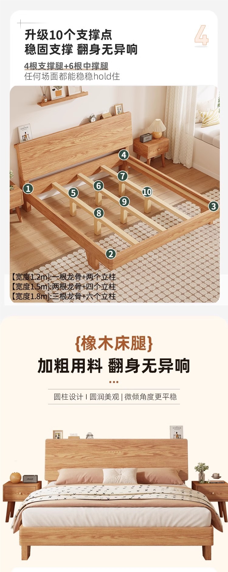 • 오크 침대 + 10cm 라텍스 매트리스 + 침대 옆 탁자*2 [위층 패키지 + 설치]