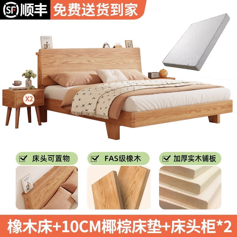 • 오크 침대 + 10cm 코코넛 야자 매트리스 + 침대 옆 탁자*2 [위층 패키지 + 설치]