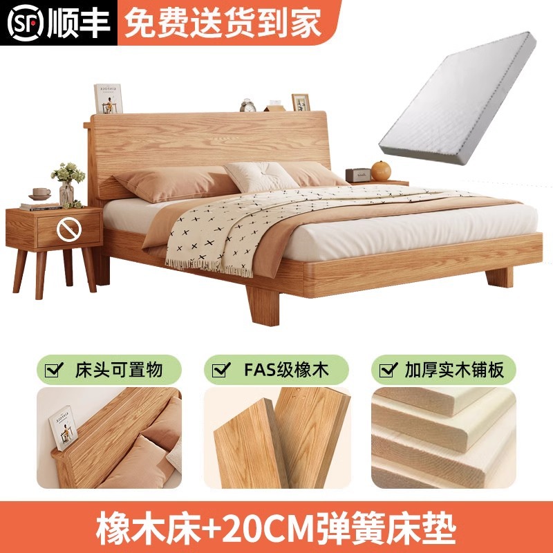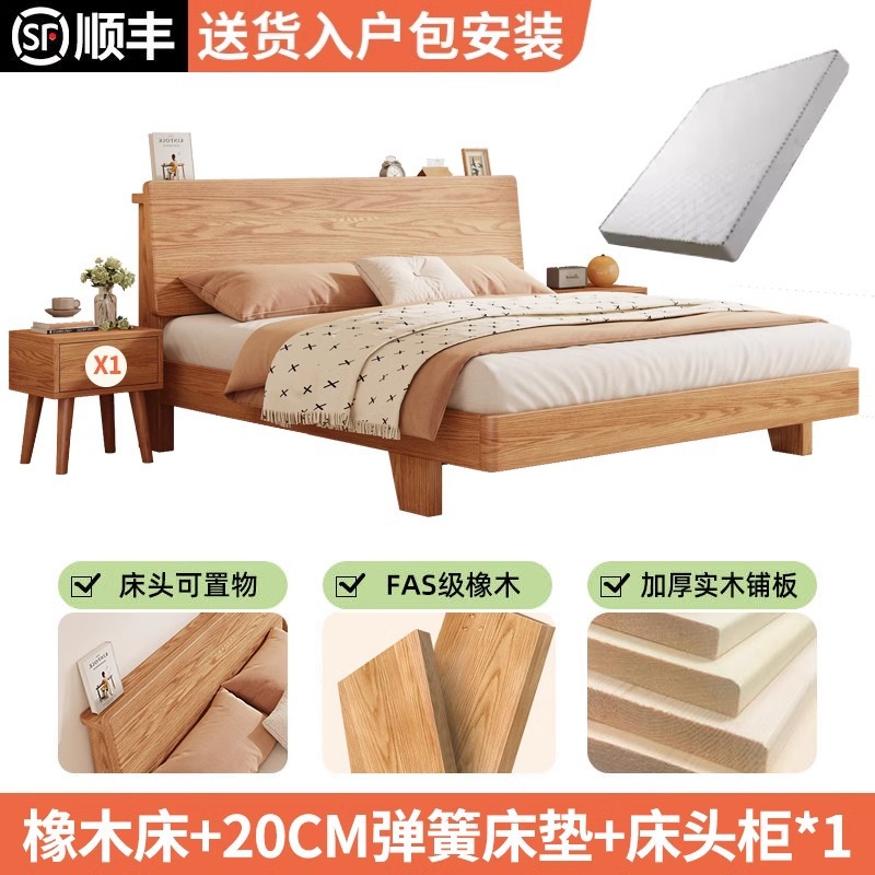 • 오크 침대 + 20cm 스프링 매트리스 + 침대협탁 * 1 [위층 패키지]