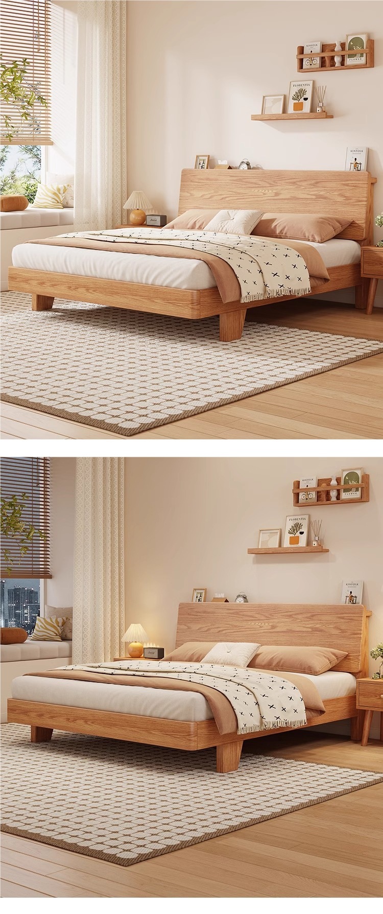 침대 단단한 나무 침대 현대 간단한 더블 침대 마스터 침실 1.5m 원래 나무 침대 1.8m 가구 싱글 침대 다다미 침대 프레임