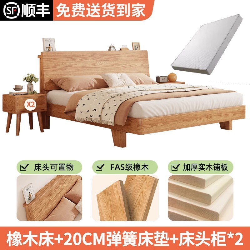 • 오크 침대 + 20cm 스프링 매트리스 + 침대협탁*2 [위층 패키지 + 설치]