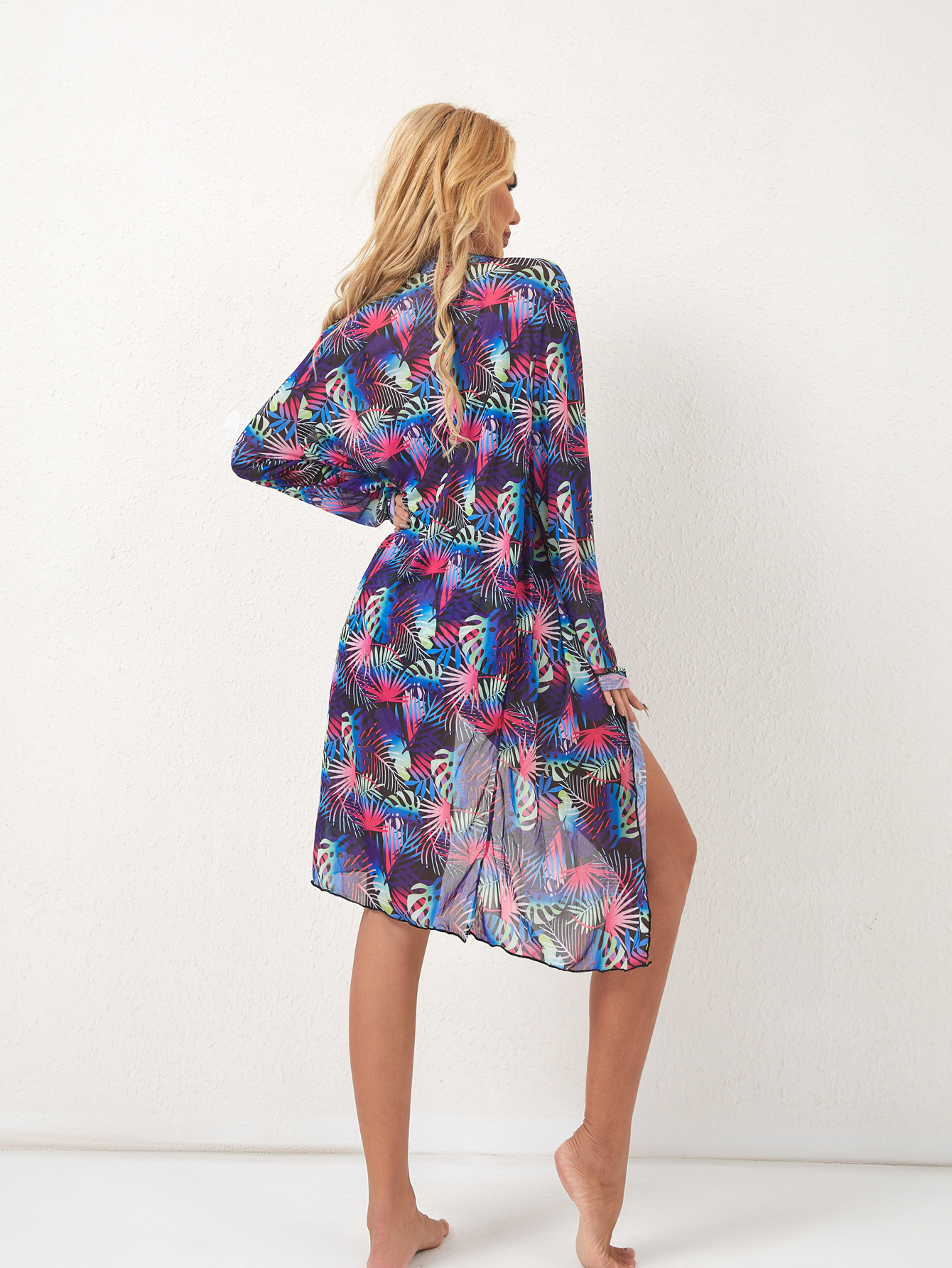2025 수영복 해변 선 스크린 열대 식물 인쇄 블라우스 수영복 여성 유럽 및 미국 국경 3 종 목 Biji