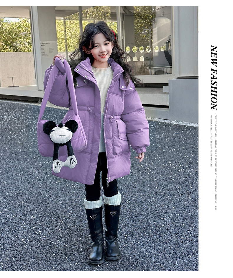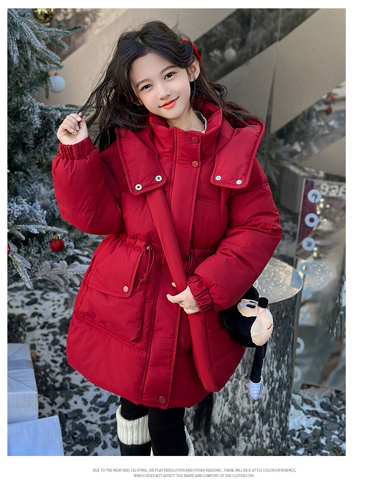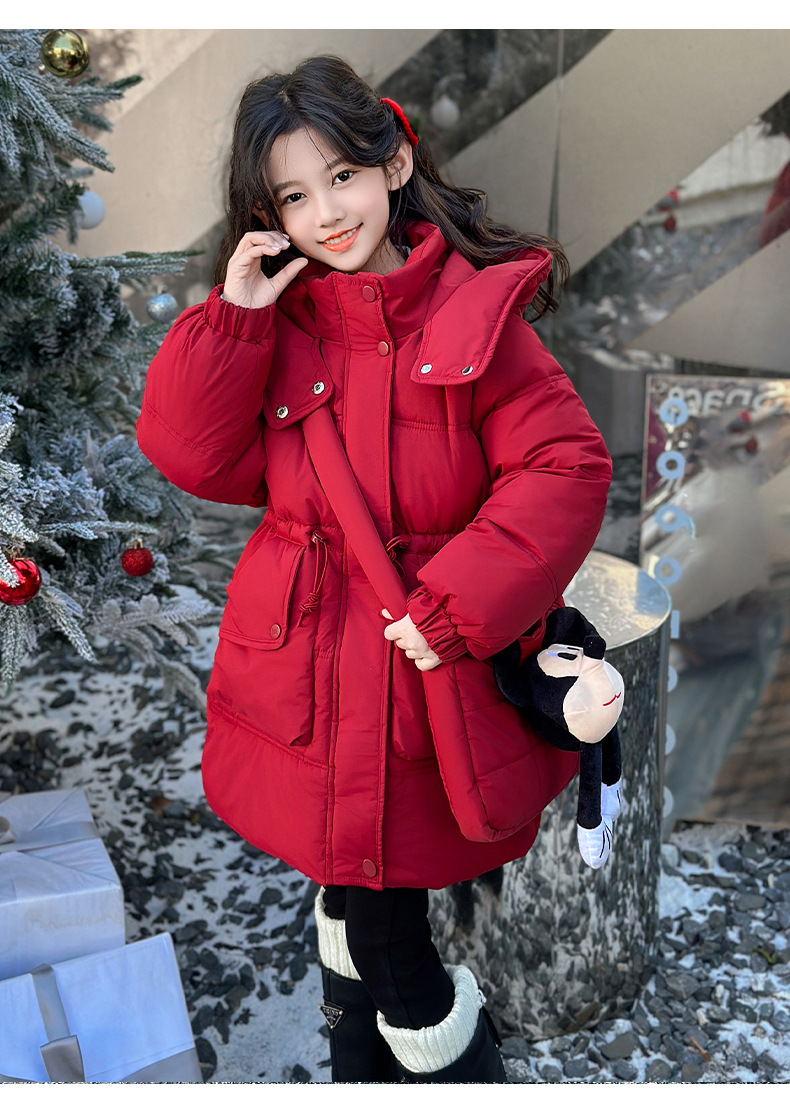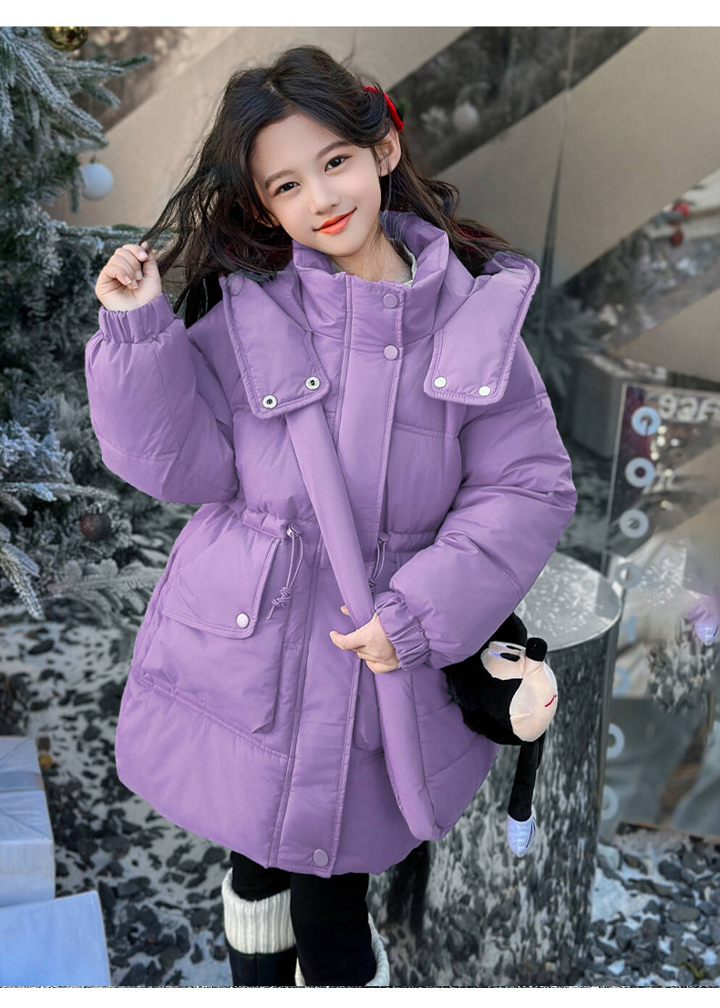 소녀의 면화 패딩 재킷 겨울 2024 새로운 중년 및 어린 소녀 서양식 겨울 코트는면 패딩 재킷 중간 길이 두껍게