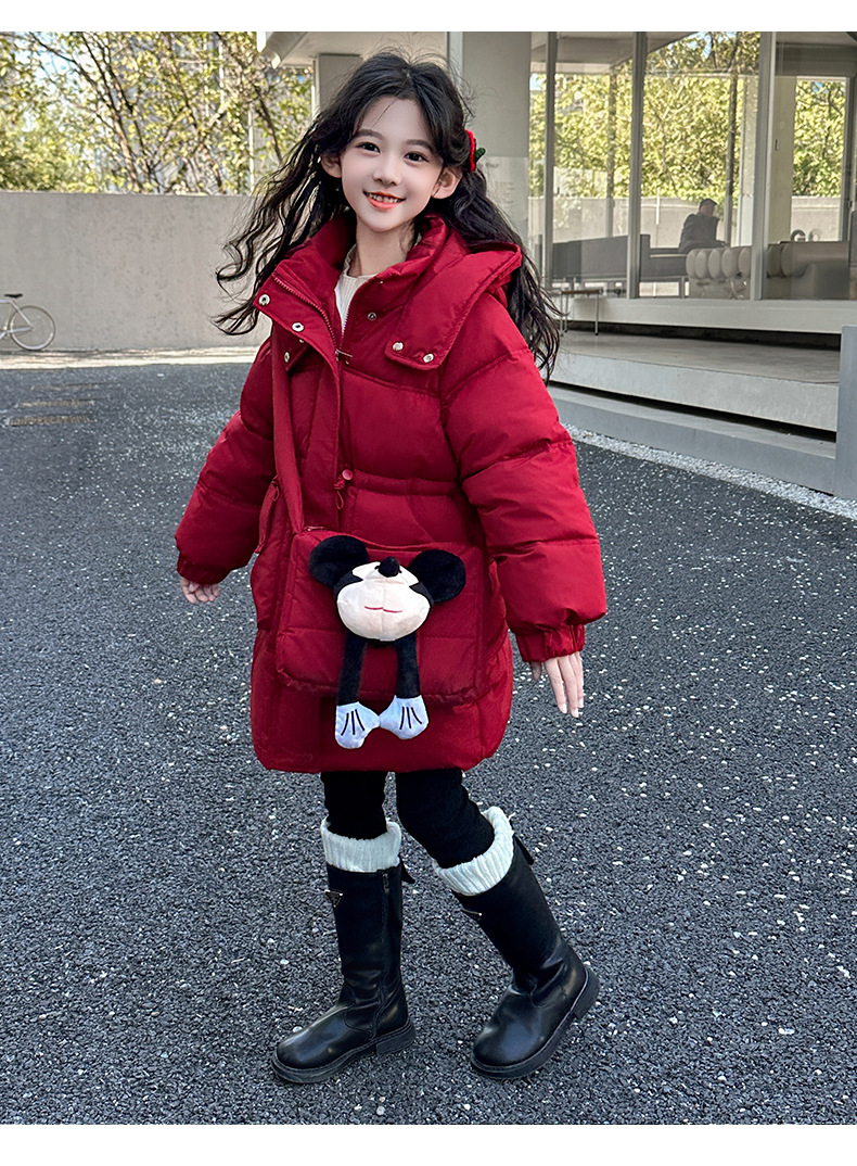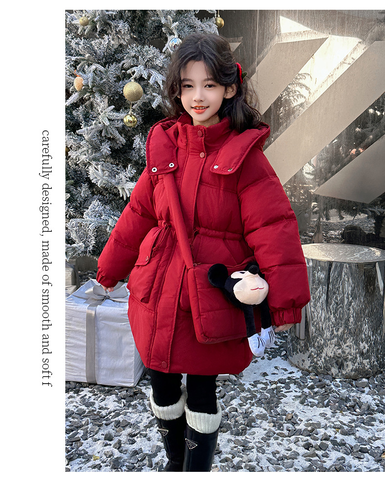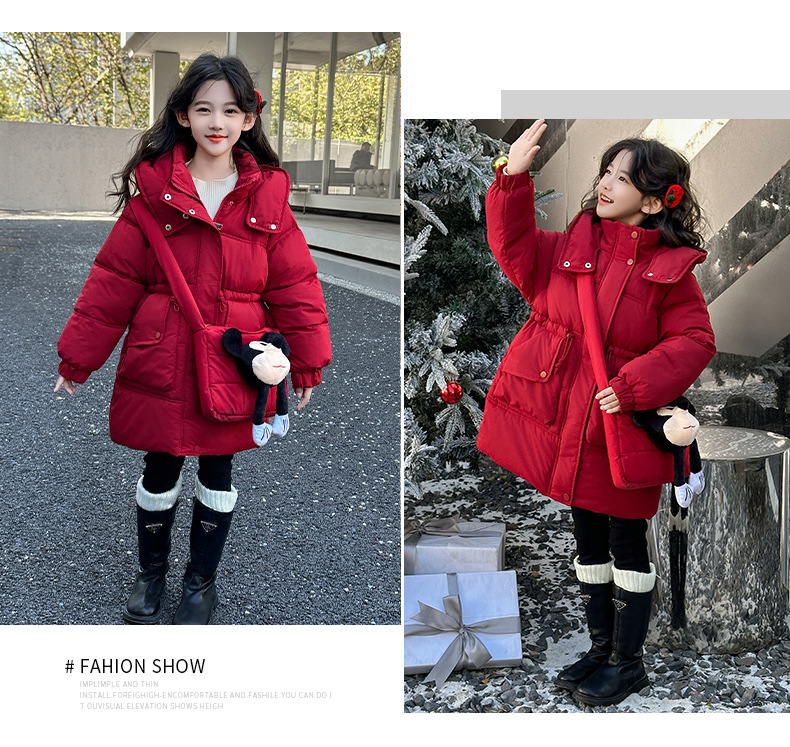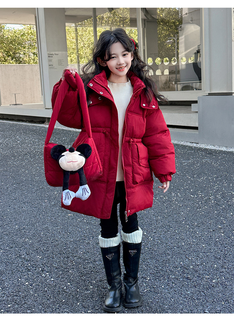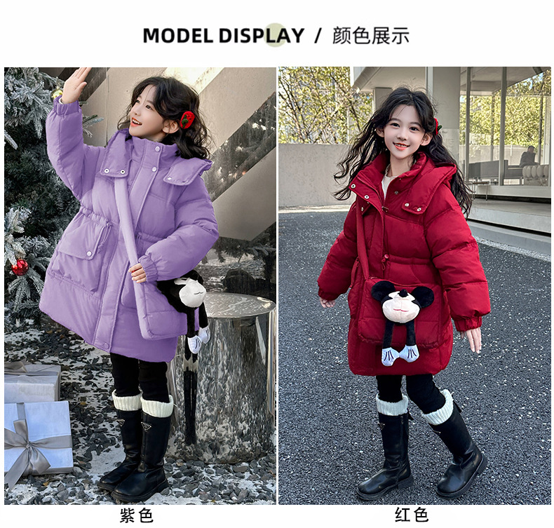 소녀의 면화 패딩 재킷 겨울 2024 새로운 중년 및 어린 소녀 서양식 겨울 코트는면 패딩 재킷 중간 길이 두껍게