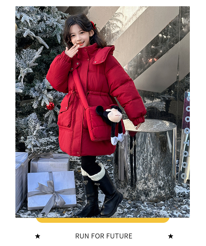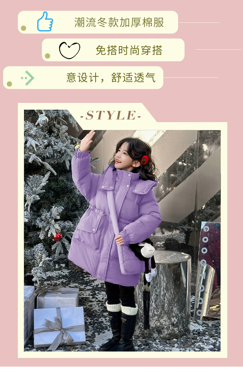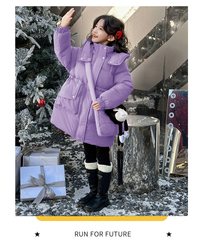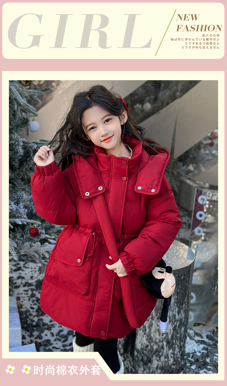 소녀의 면화 패딩 재킷 겨울 2024 새로운 중년 및 어린 소녀 서양식 겨울 코트는면 패딩 재킷 중간 길이 두껍게스토어 가기