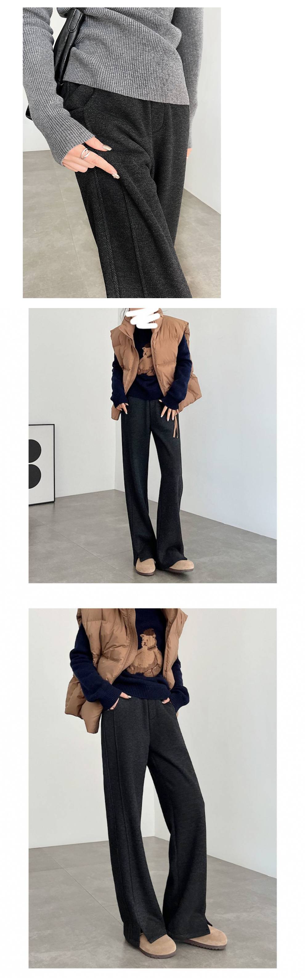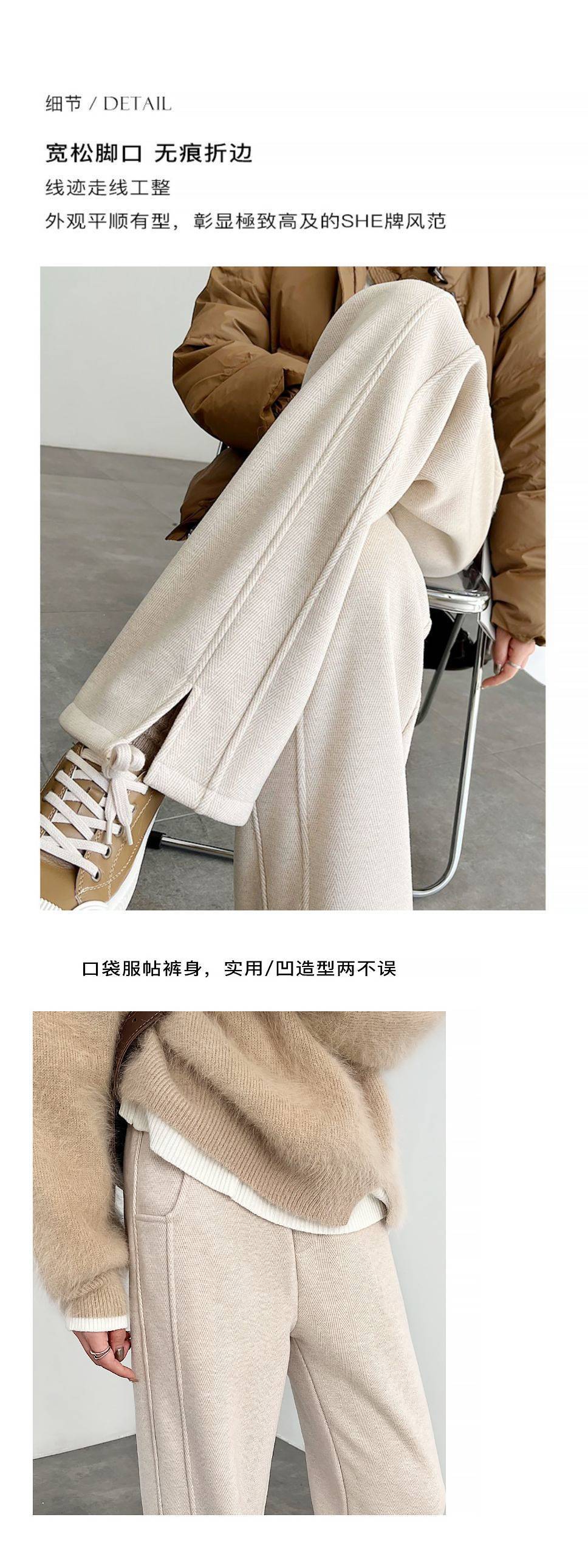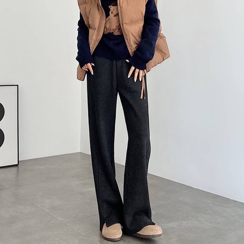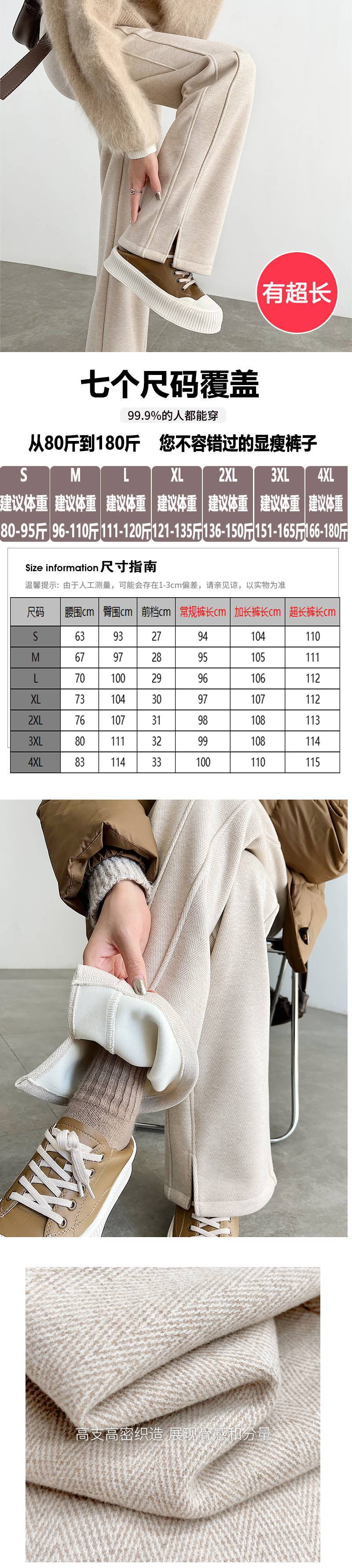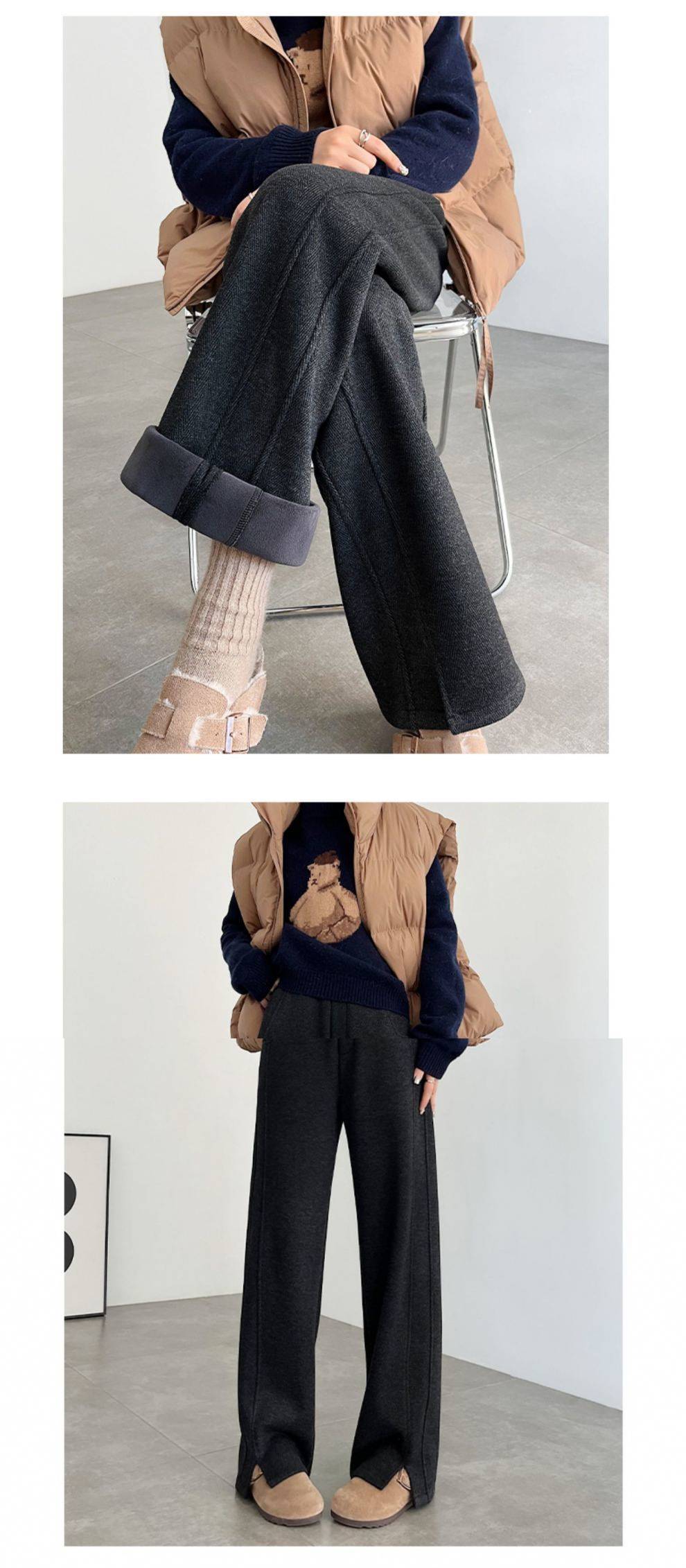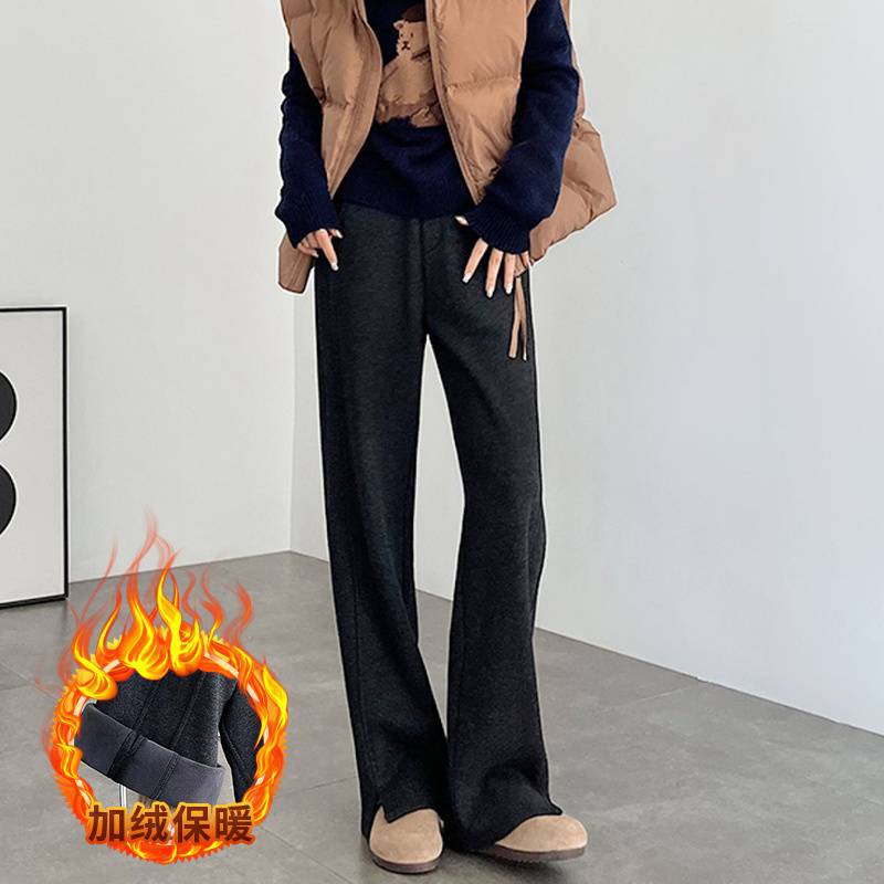 기모 좁은 넓은 다리 바지 여성용 가을 및 겨울 높은 허리 느슨한 키 분할 바나나 스트레이트 스포츠 바지스토어 가기