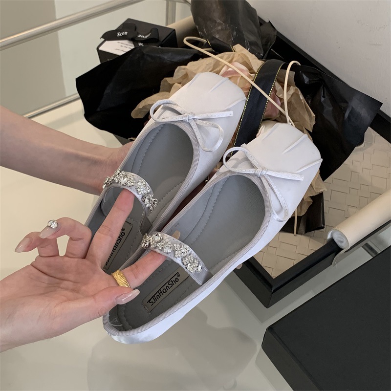 페어리 스타일 활 프랑스 발레 신발 2025 봄 새로운 도착 라인스톤 플랫 메리 제인 신발 여성 신발스토어 가기