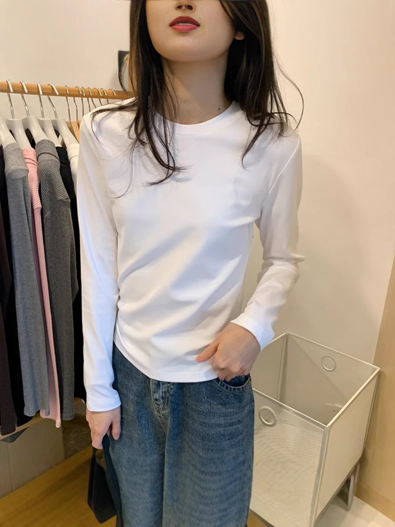 40 면 라운드 넥 솔리드 컬러베이스 셔츠 여성용 봄 가을과 겨울 새로운 스태킹 웨어 내부 슬림 긴 소매 티셔츠 탑 여성스토어 가기