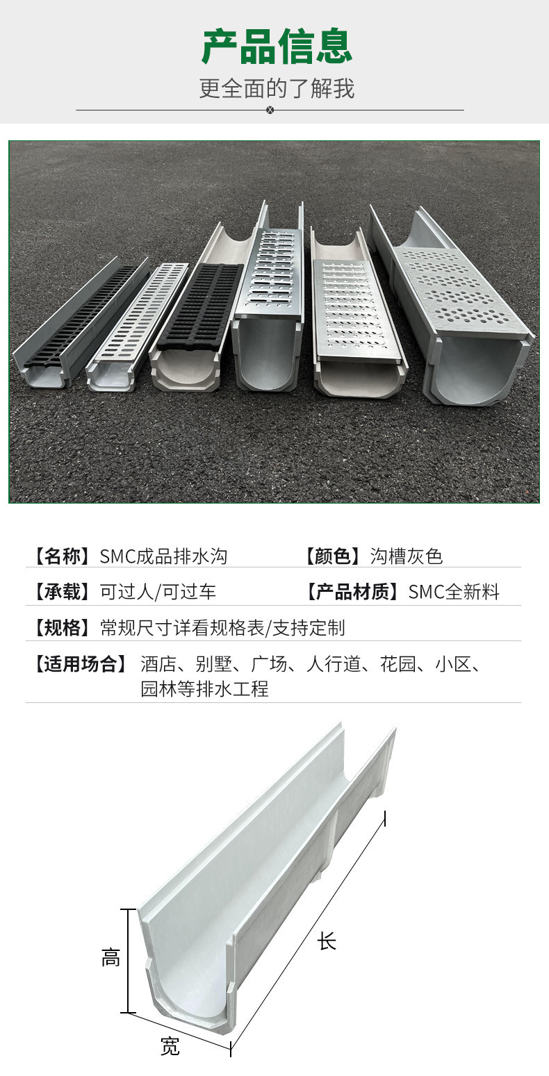 완성 된 배수 도랑 u 모양의 그루브 스테인레스 스틸 수지 주방 정원 안뜰 u 모양의 하수구 도랑 선형 커버 플레이트스토어 가기