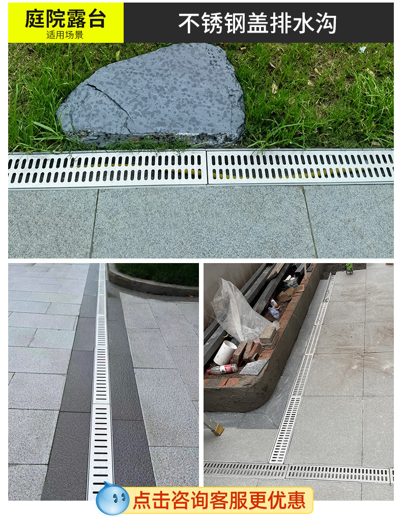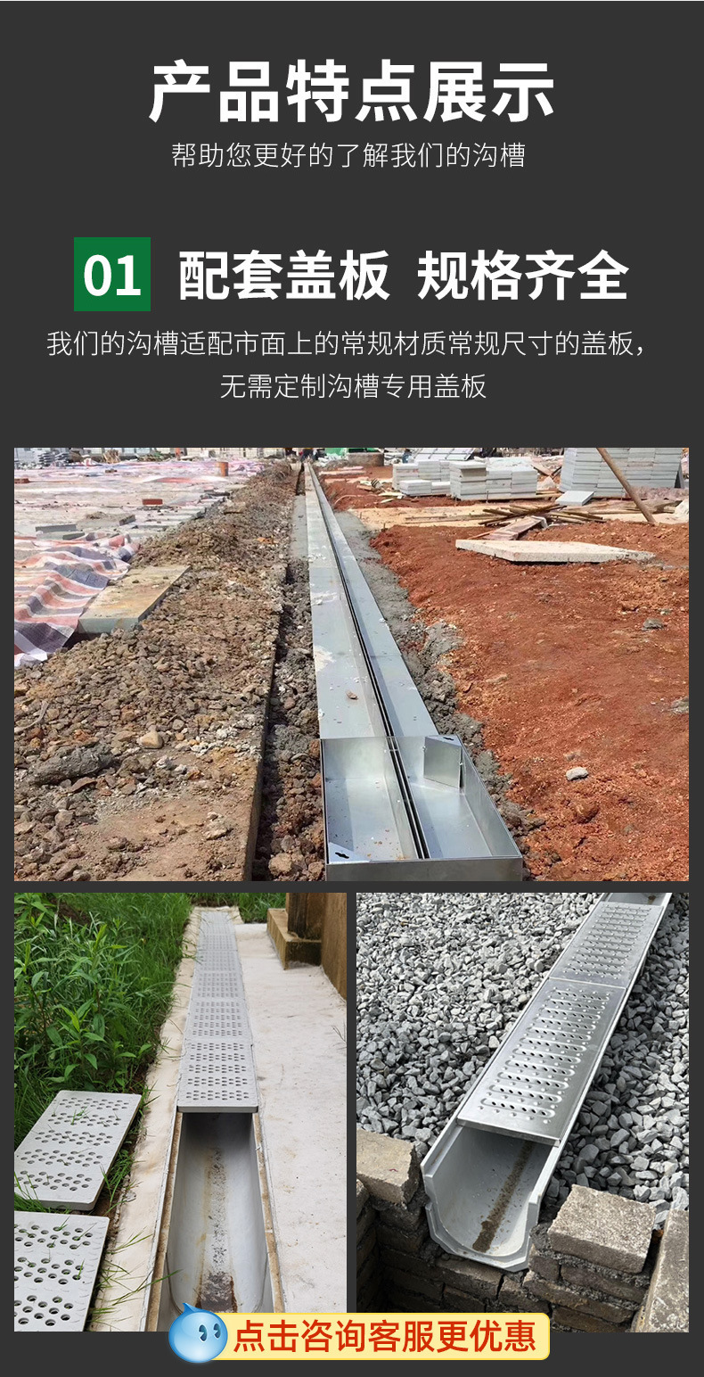 완성 된 배수 도랑 u 모양의 그루브 스테인레스 스틸 수지 주방 정원 안뜰 u 모양의 하수구 도랑 선형 커버 플레이트