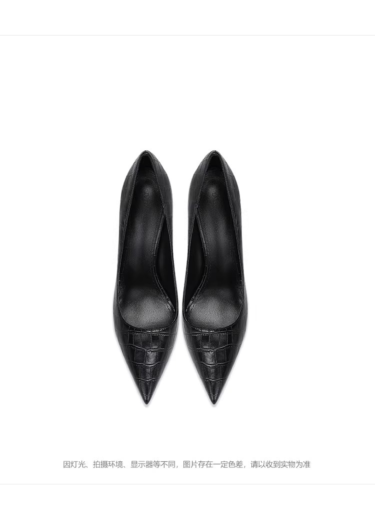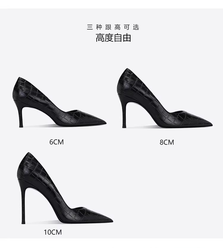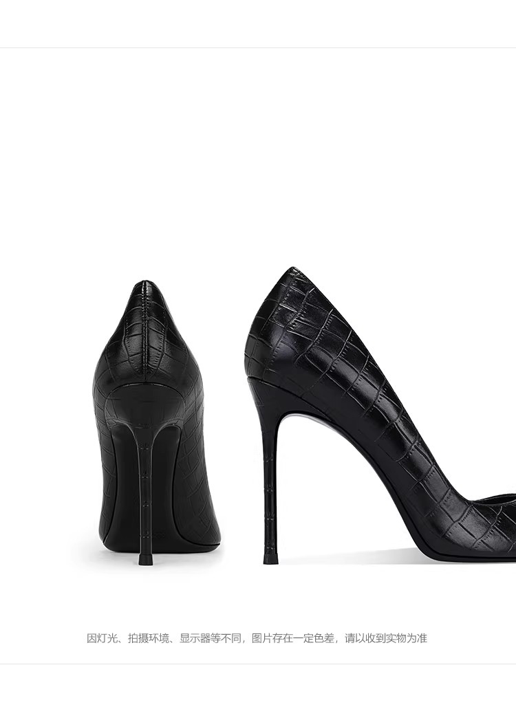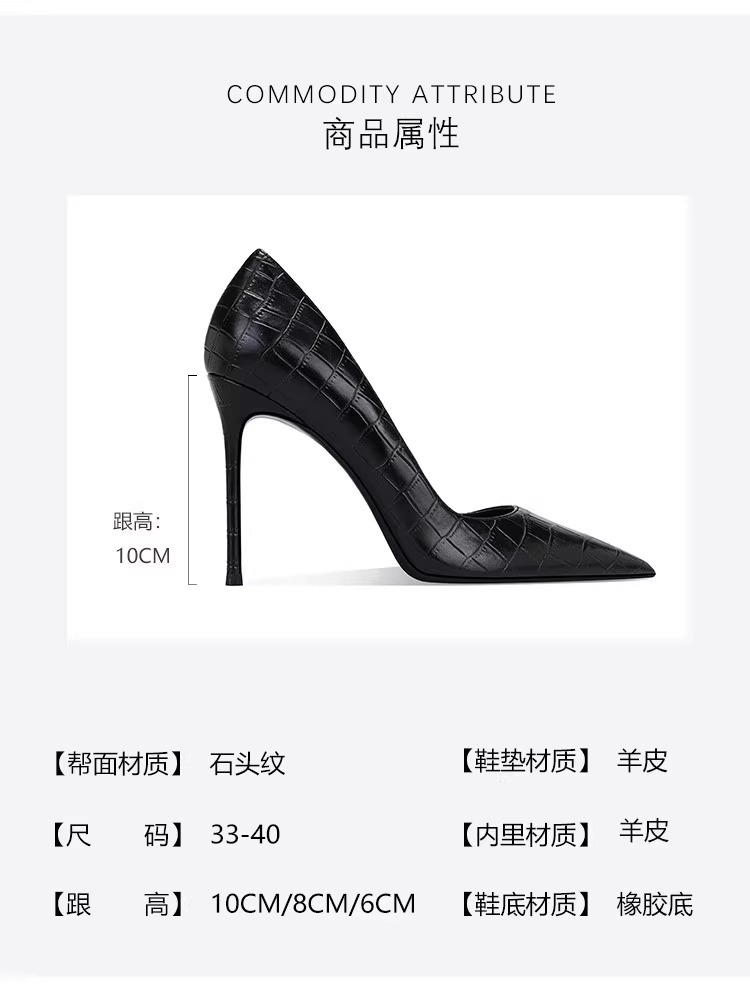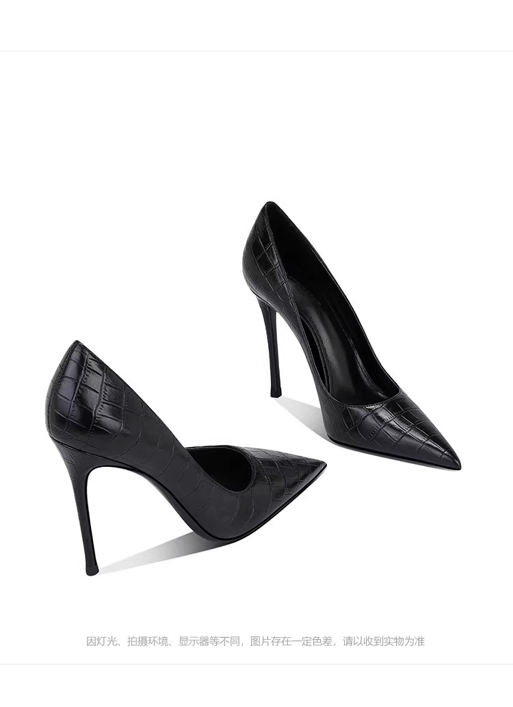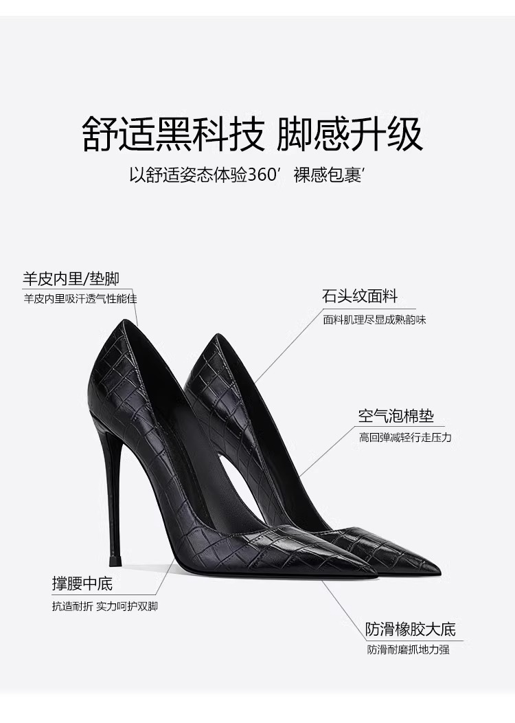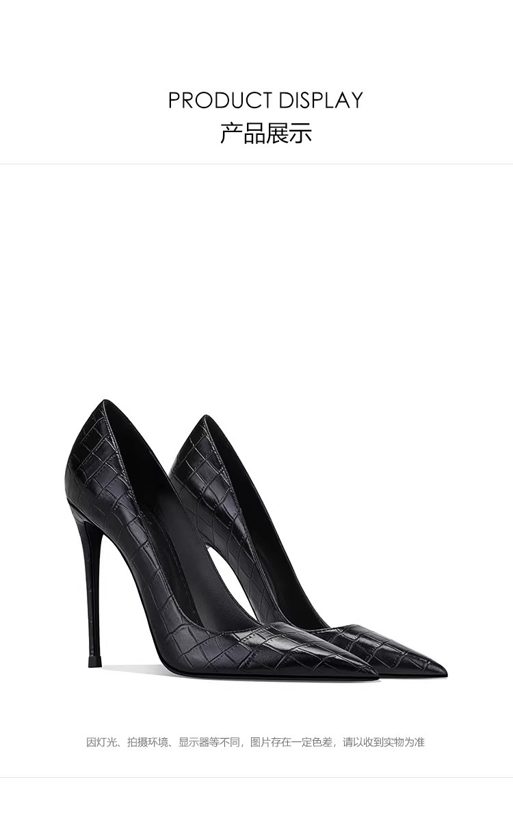 정품 악어 무늬 블랙 하이힐, 뾰족한 발가락, 얇은 굽, 섹시한 여성용 슈퍼 하이힐, 12CM44 높이 증가스토어 가기