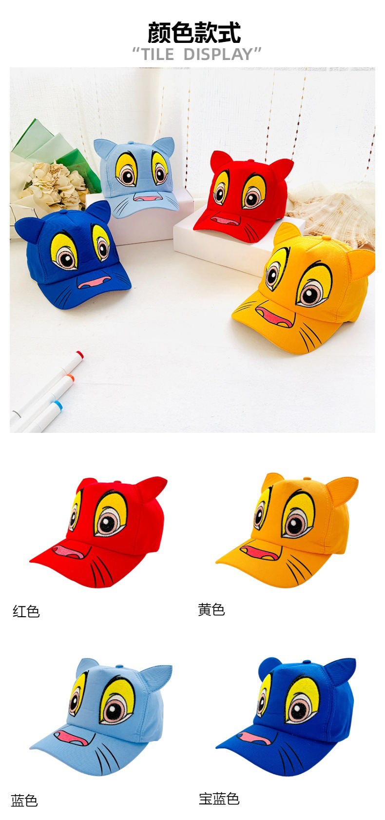 국경 간 어린이 모자 만화 사자 왕 야구 모자 어린이 차양 야구 모자 소년과 소녀 아기 모자 도매스토어 가기