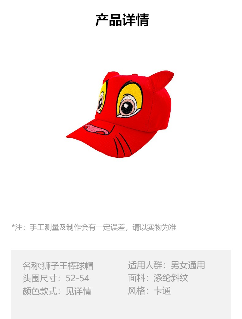 국경 간 어린이 모자 만화 사자 왕 야구 모자 어린이 차양 야구 모자 소년과 소녀 아기 모자 도매