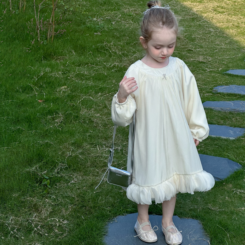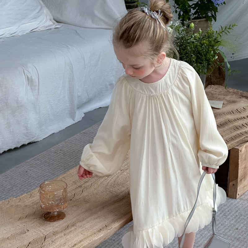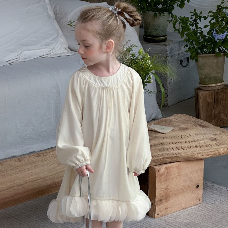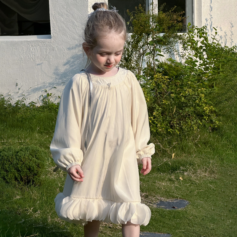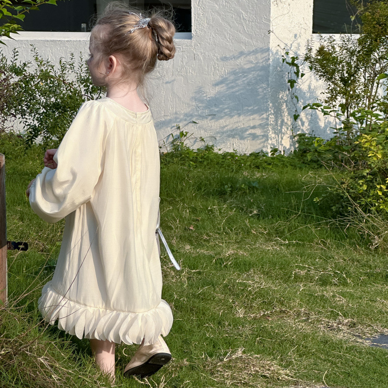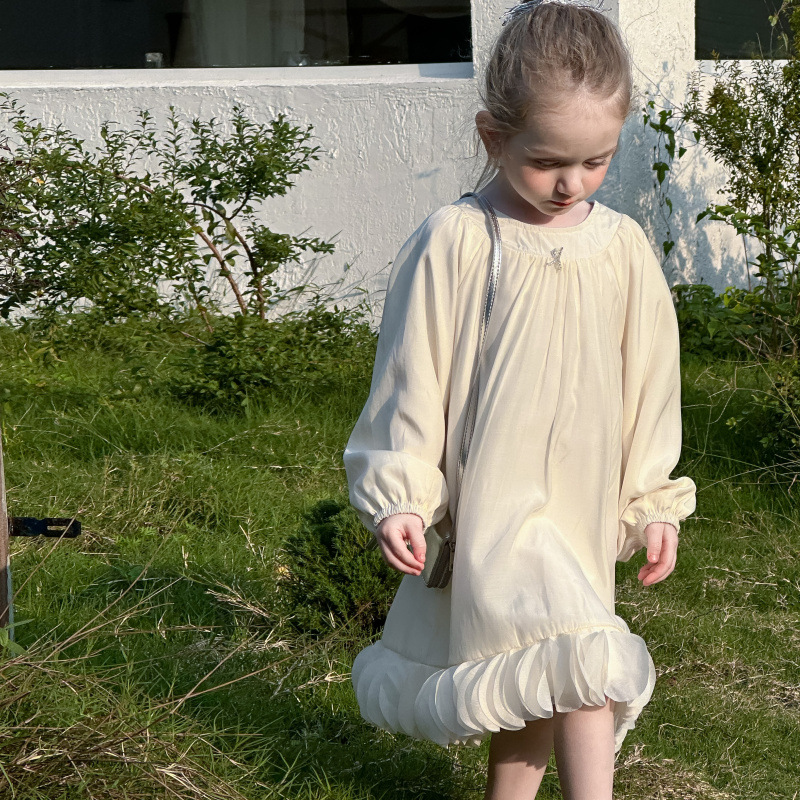 소녀 원피스 2024 봄 새로운 꽃잎 어린이 원피스 세련된 바느질 프랑스 긴 소매 공주 원피스스토어 가기