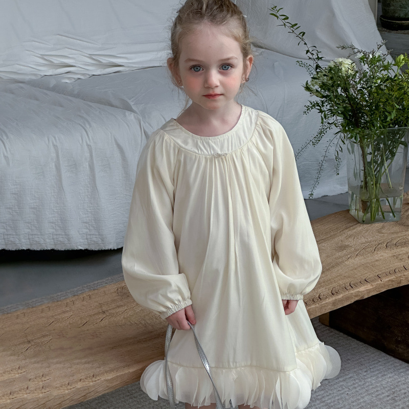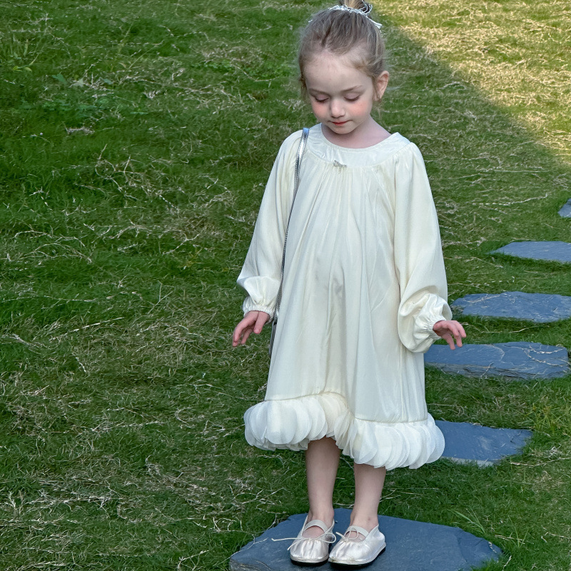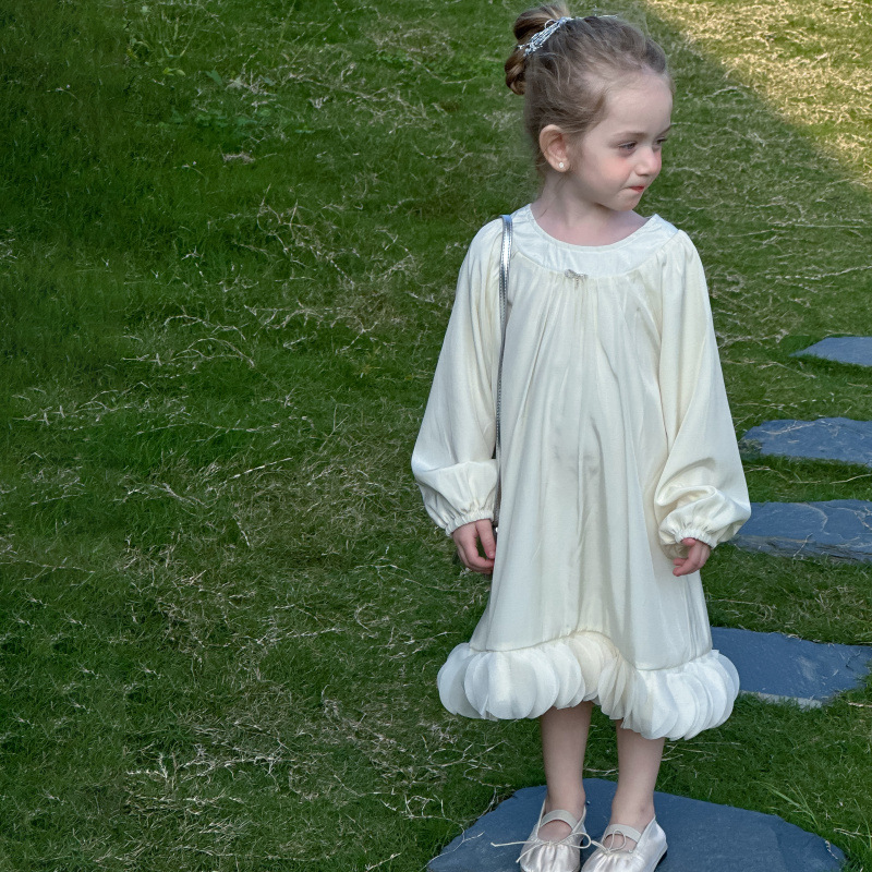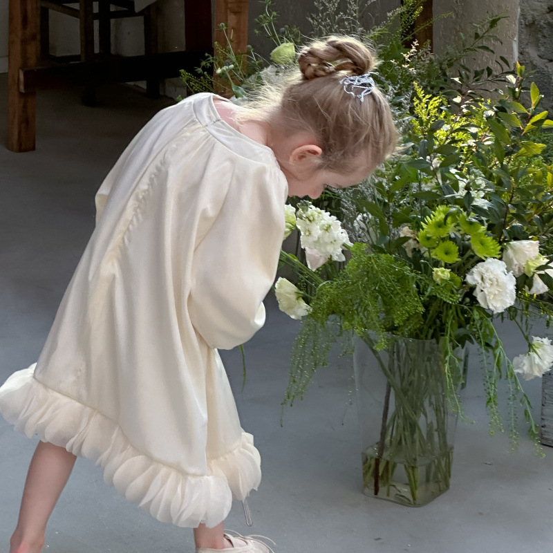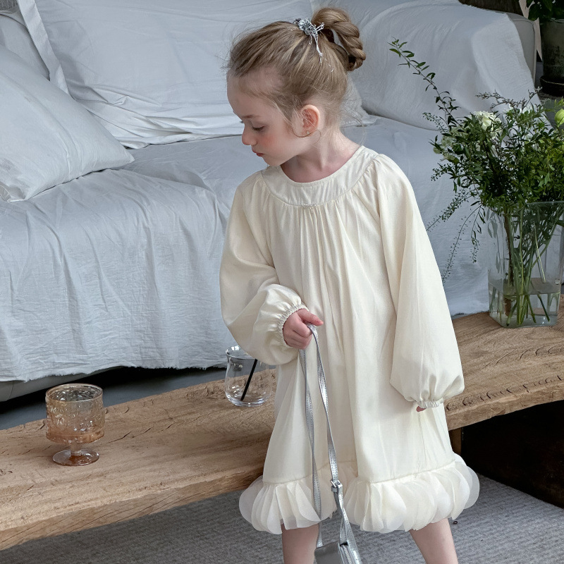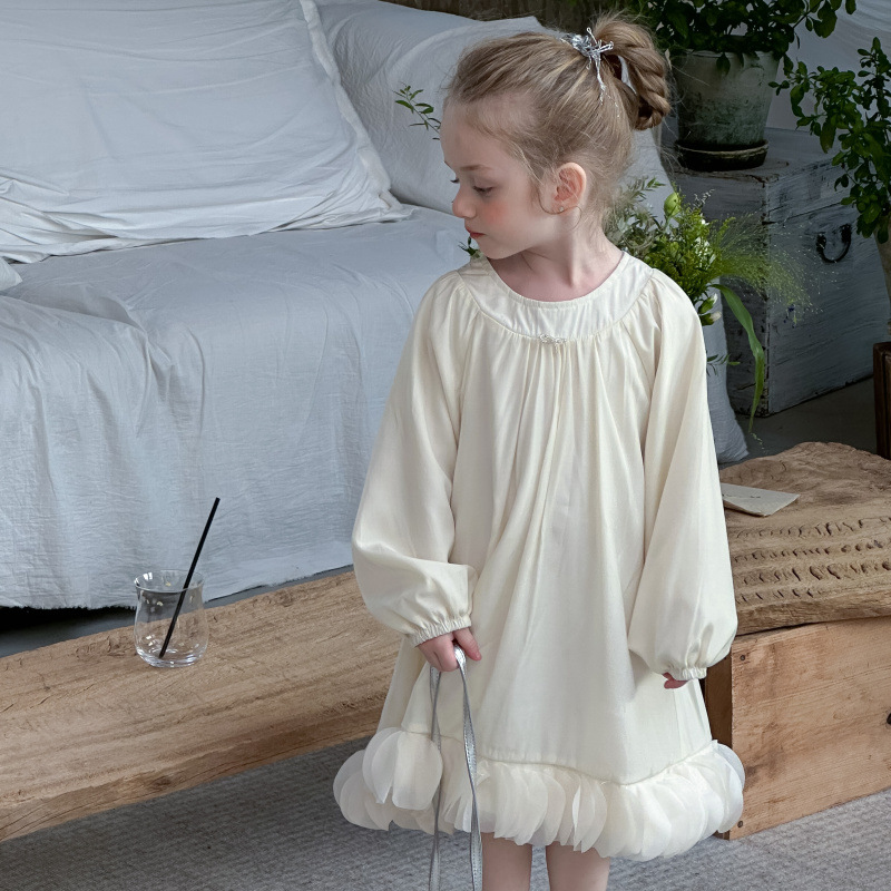 소녀 원피스 2024 봄 새로운 꽃잎 어린이 원피스 세련된 바느질 프랑스 긴 소매 공주 원피스스토어 가기