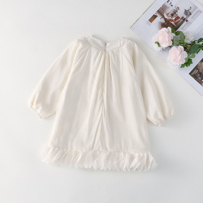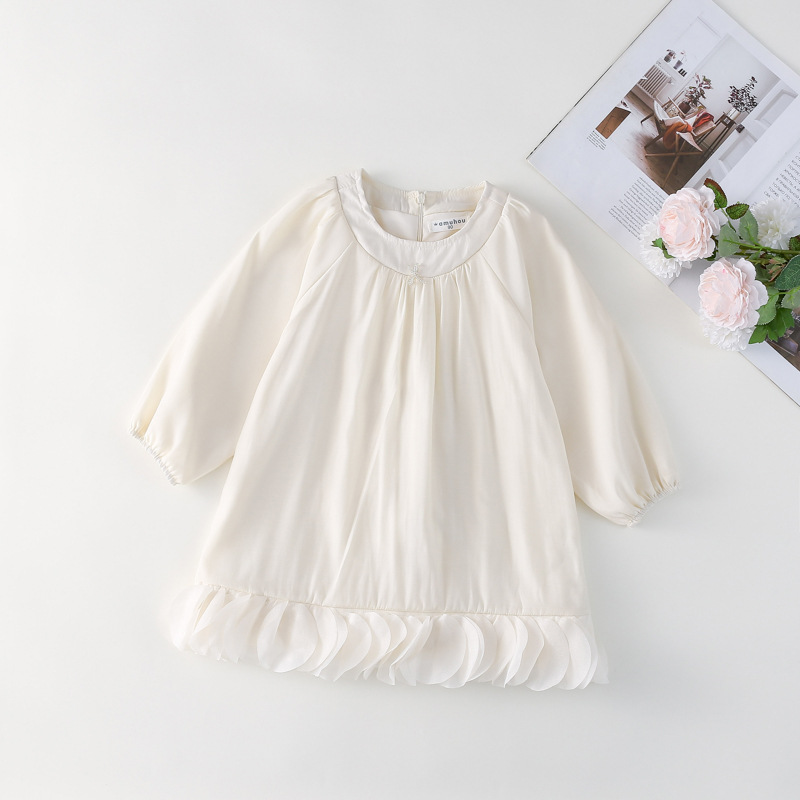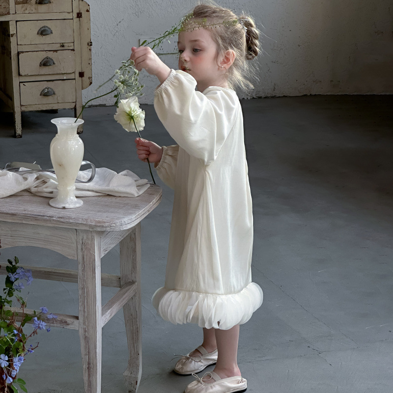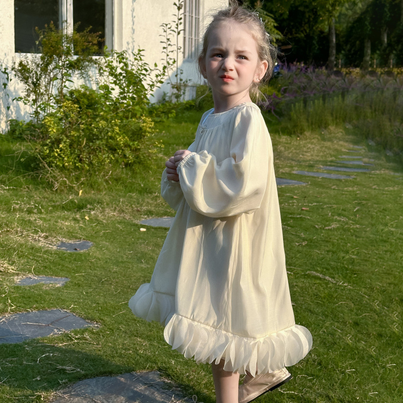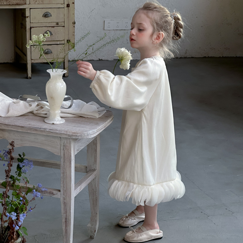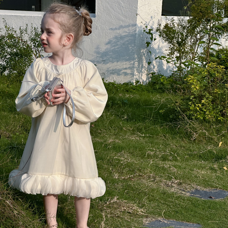 소녀 원피스 2024 봄 새로운 꽃잎 어린이 원피스 세련된 바느질 프랑스 긴 소매 공주 원피스
