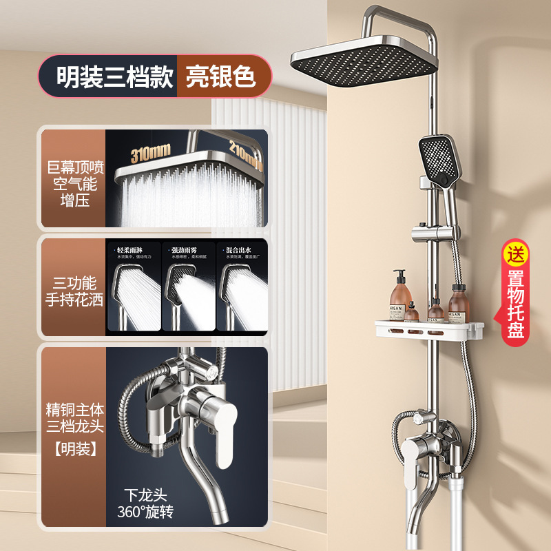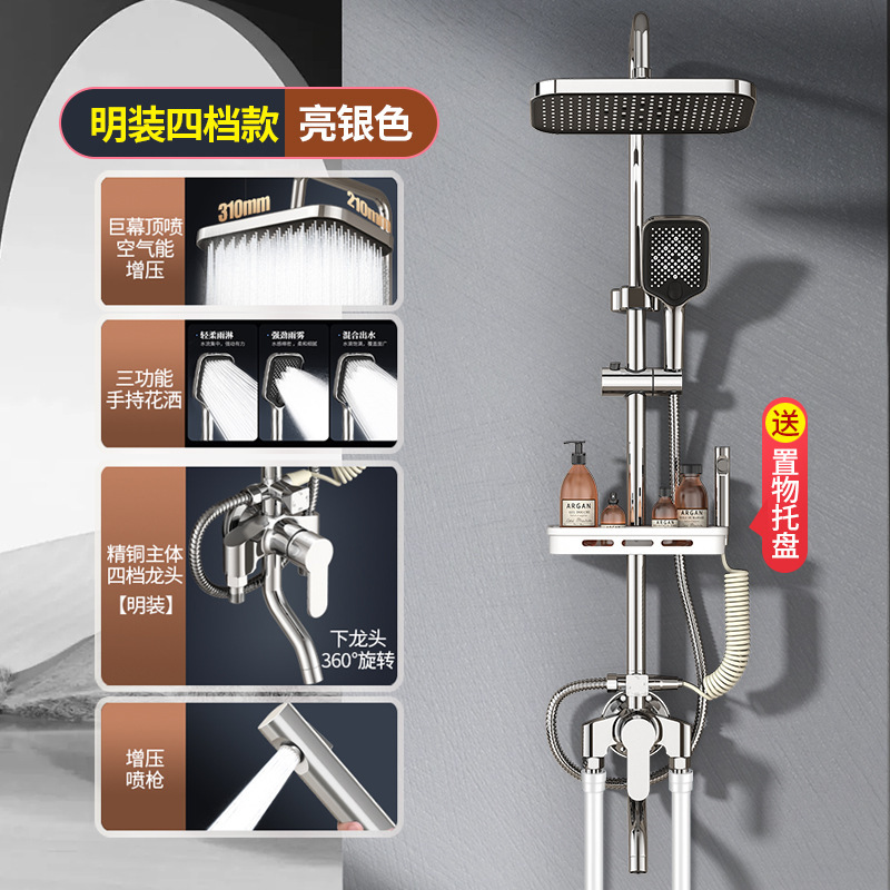 • 은색 ● 노출형 4단 슈퍼차저 샤워 세트 + 두꺼운 본체