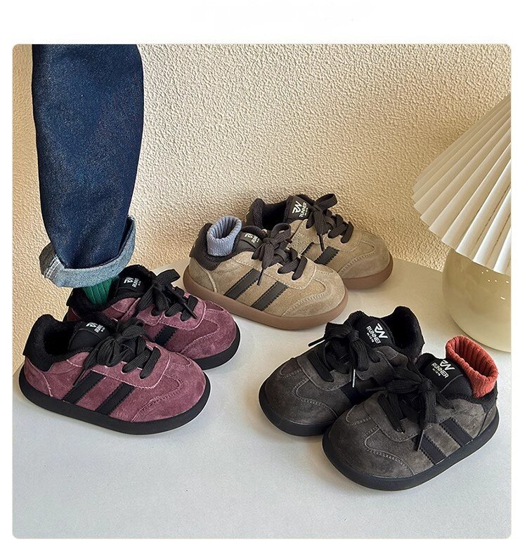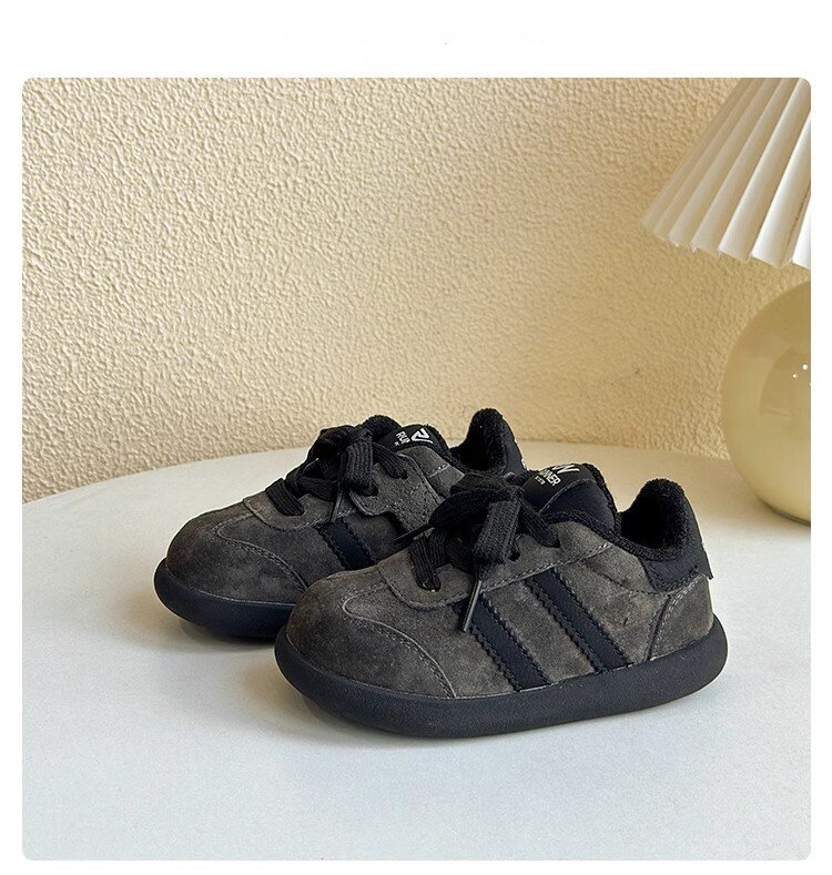 한국식 어린이 정품 가죽 레트로 독일 연수화 가을과 겨울 신예 소년 로우 탑 보드 신발 미운 귀여운 소녀 2 면 운동화