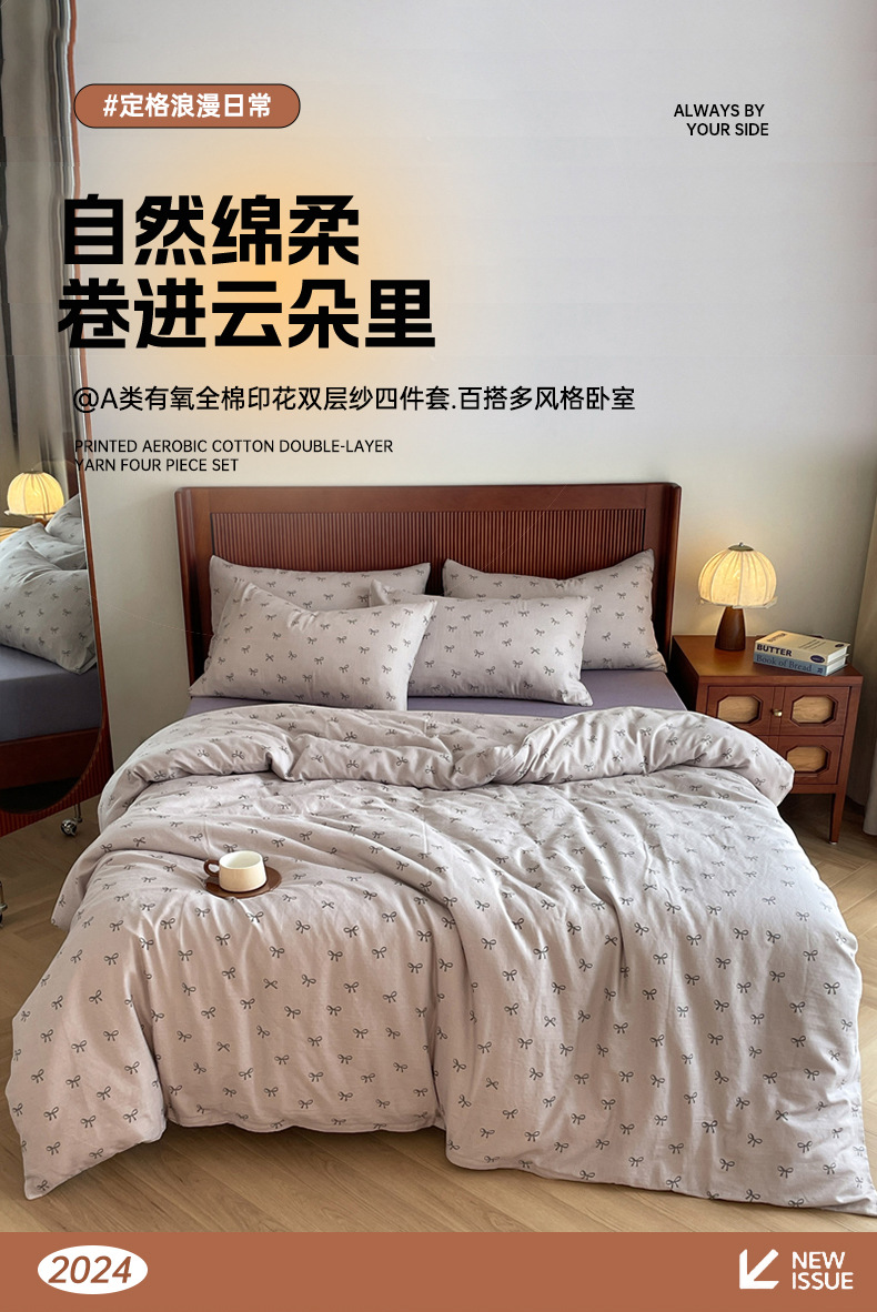 새로운 면 클래스 모성 및 유아 등급 에어로빅 면 더블 레이어 원사 피부 친화적 인 면 인쇄 3 피스 퀼트 커버 4 피스 세트